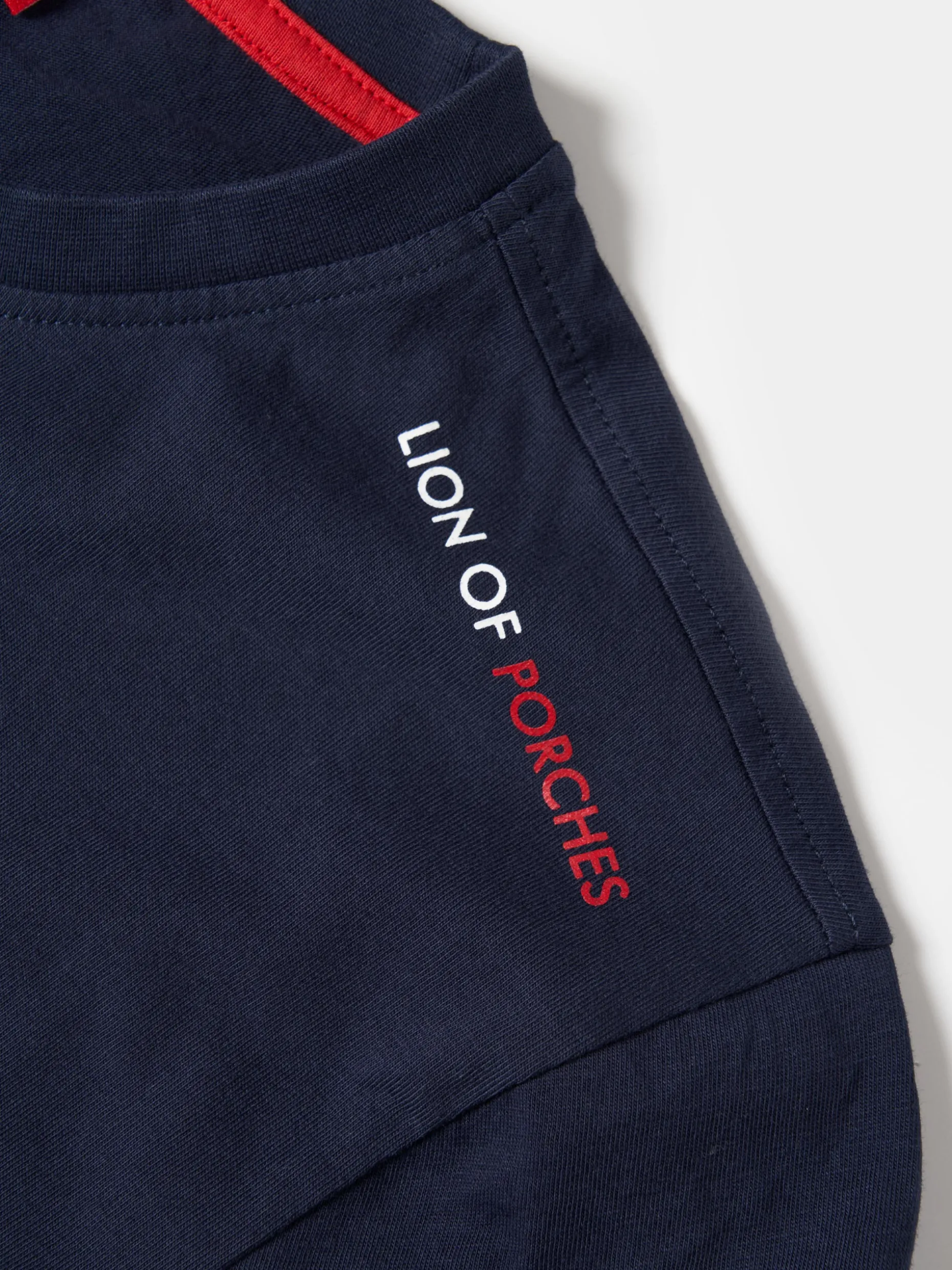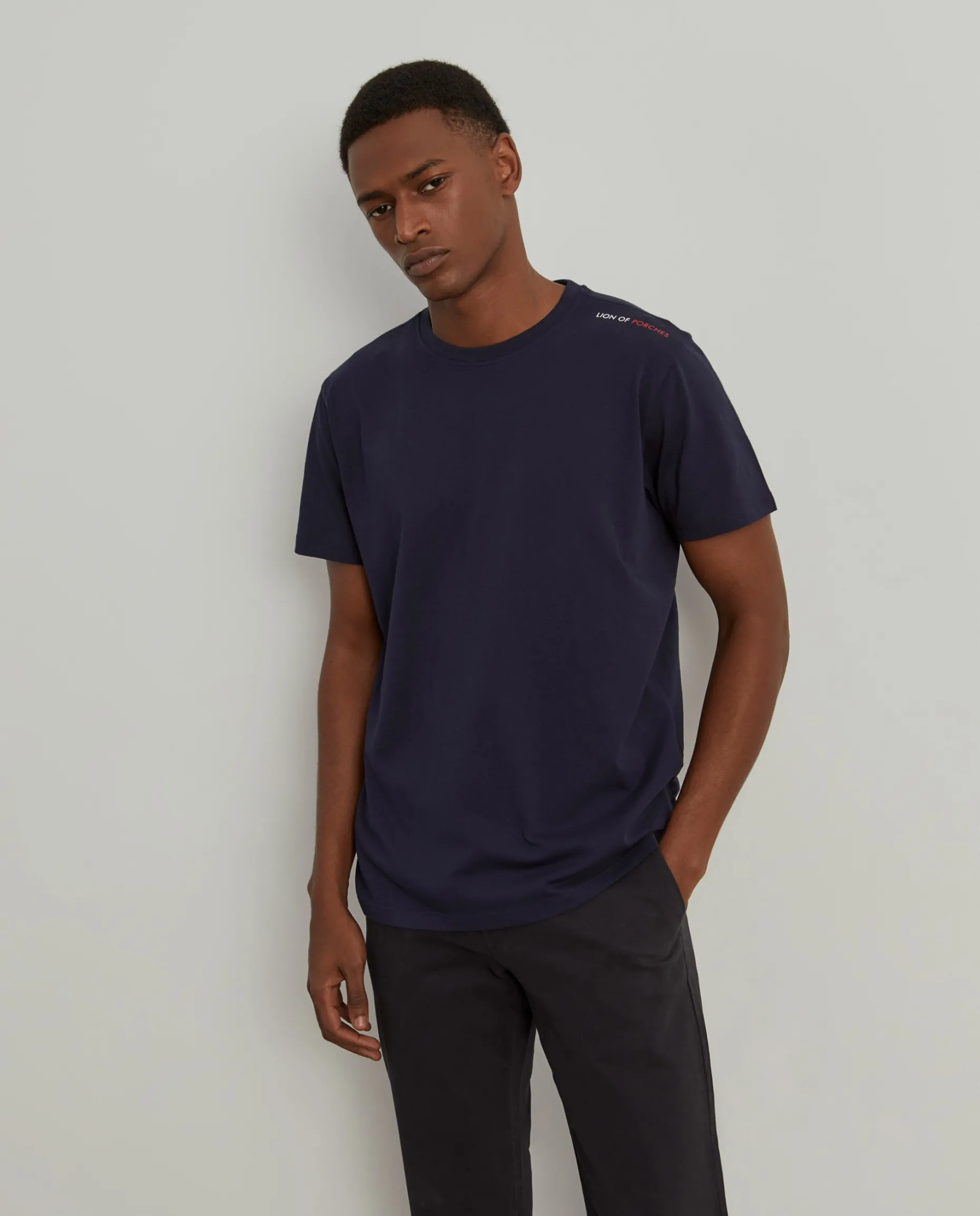 T-shirt básica, de manga curta, com estampado Lion of Porches em contraste no ombro. É confecionada em algodão para maior conforto e suavidade. Disponível em várias cores.