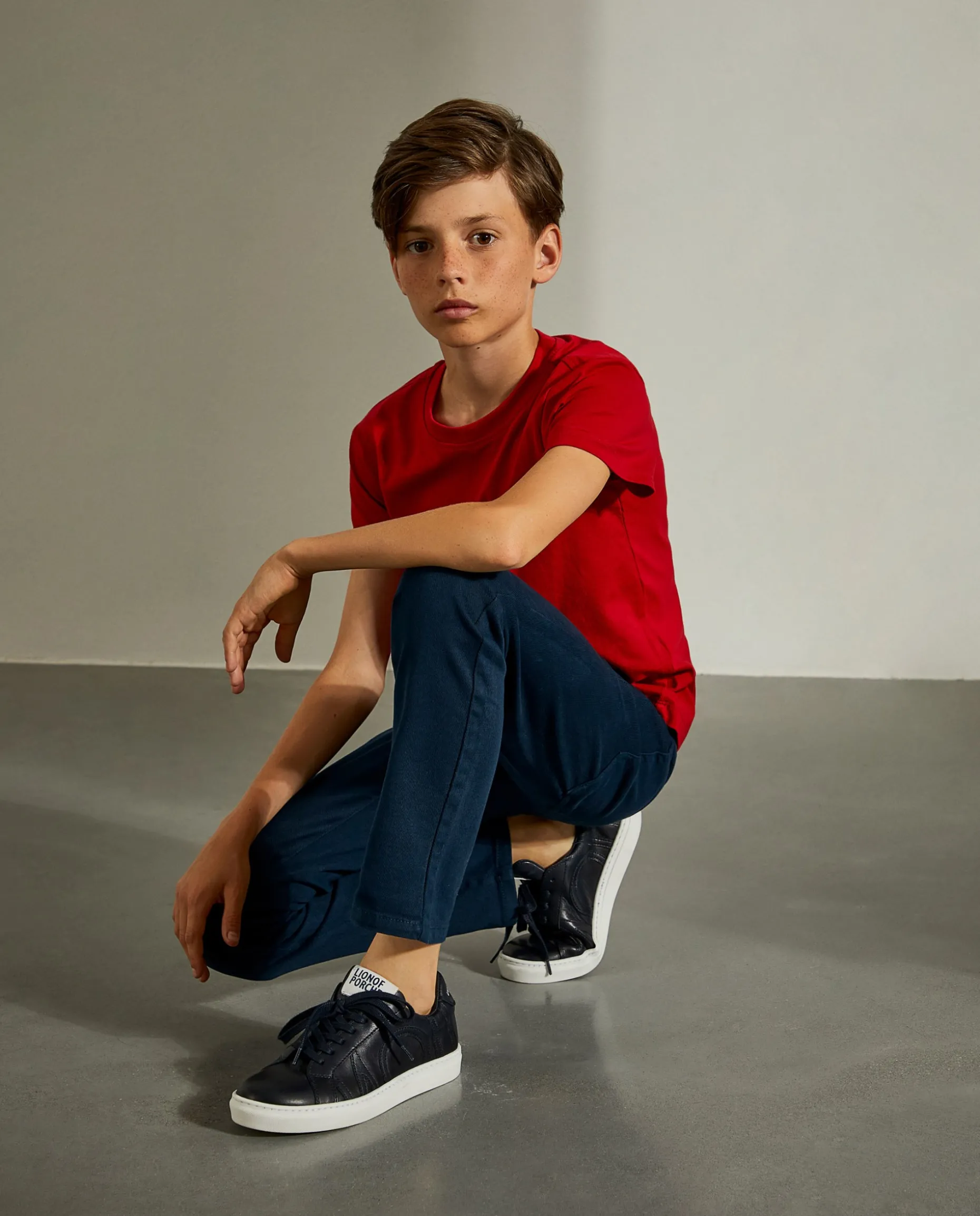 Um indispensável no guarda-roupa dos miúdos para o dia-a-dia ou brincadeiras sem fim. Esta t-shirt básica é confecionada, na totalidade, em algodão para maior conforto. De manga curta e gola redonda canelada, finaliza com pequeno leão da marca em contraste no peito. Está disponível em várias cores.