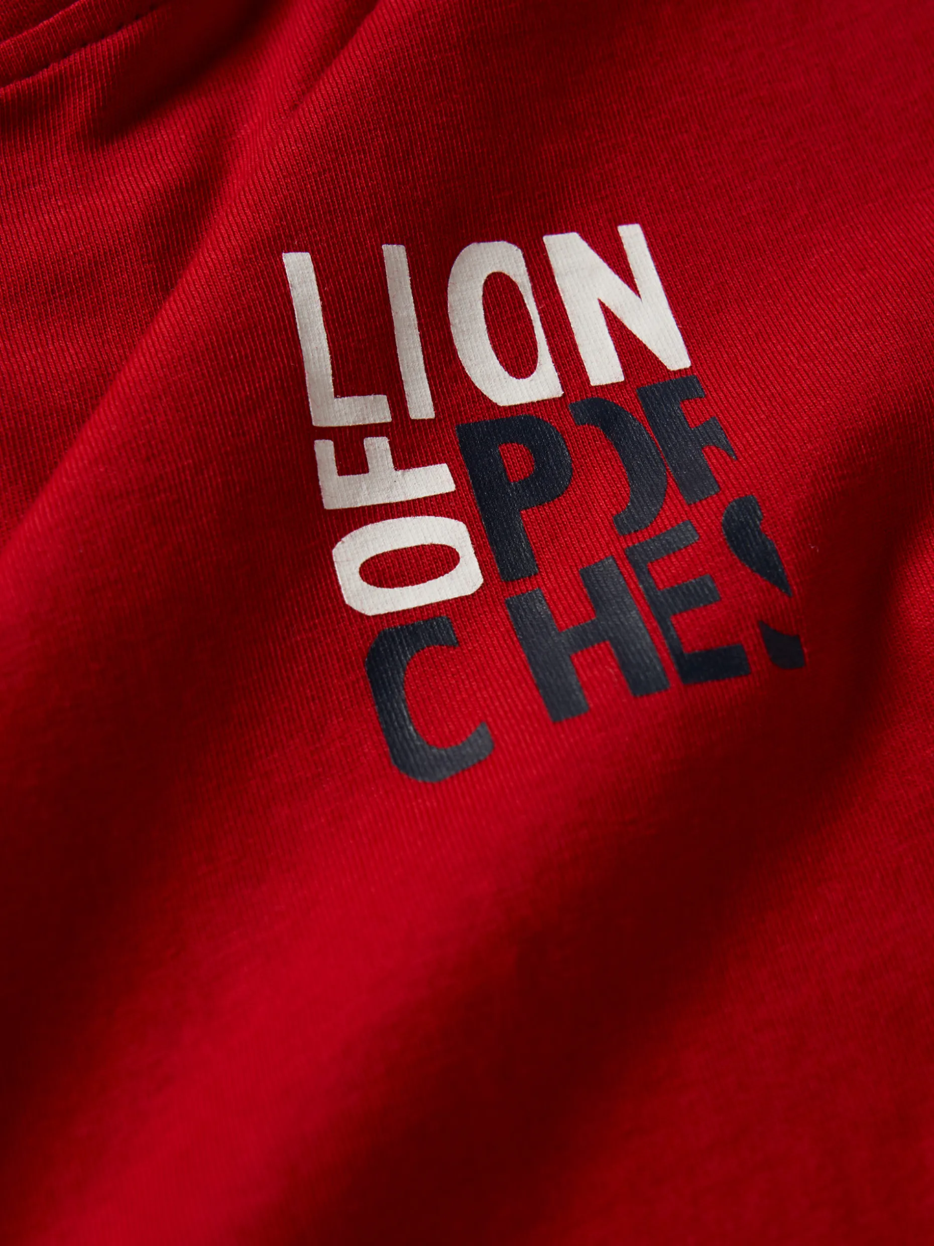T-shirt básica, de manga curta, com estampado da marca em contraste no peito. Confecionada, na totalidade, em algodão para maior conforto e suavidade.