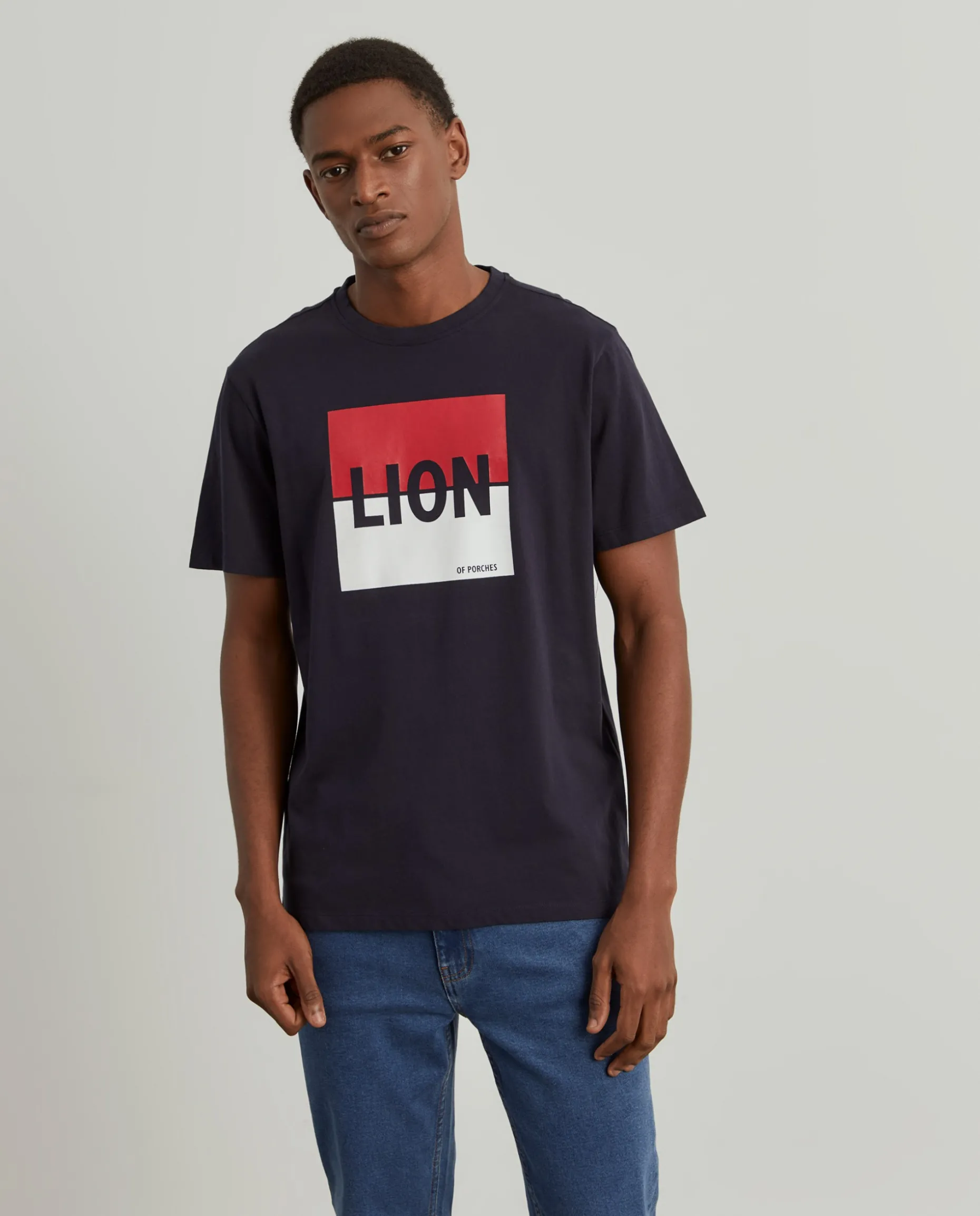 T-shirt de manga curta com estampado Lion na frente, em contraste de cor. De gola redonda. É confecionada, na totalidade, em algodão para maior conforto e suavidade. Disponível em várias cores.