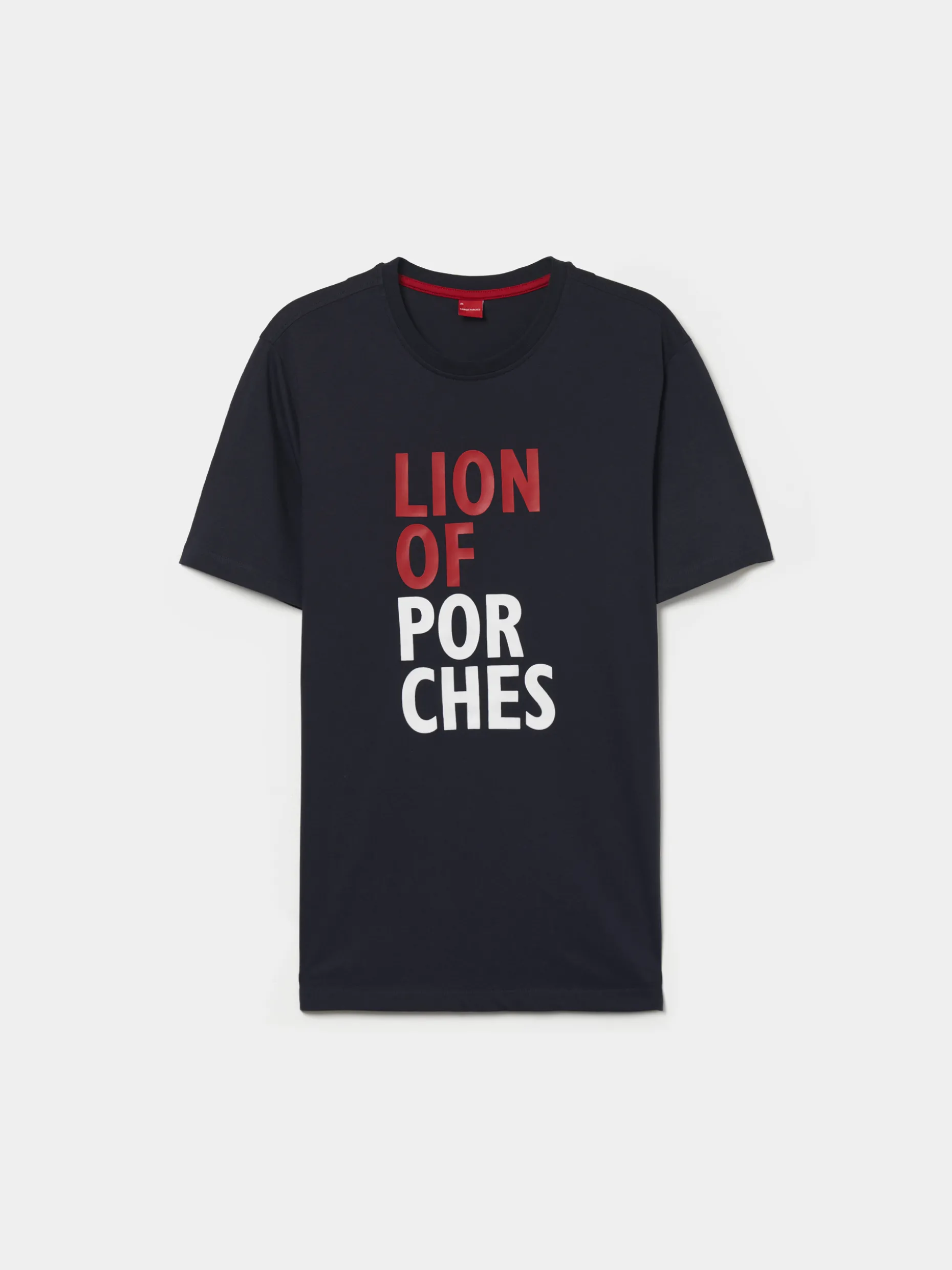 T-shirt de manga curta, em algodão, com estampado Lion of Porches em contraste na frente. De decote redondo. Disponível em várias cores e confecionada em algodão para maior conforto e suavidade.