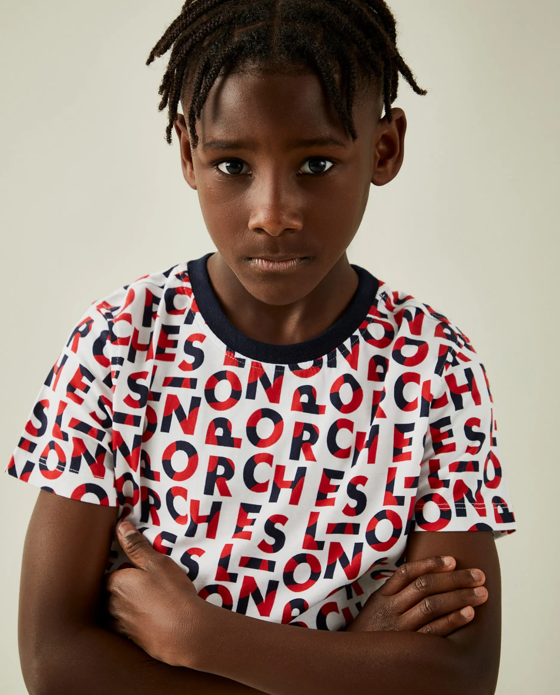 T-shirt de manga curta com logotipo Lion of Porches all over, para um look leve, descontraído e colorido. De manga curta e gola redonda em contraste de cor. É confecionada, na totalidade, em algodão para maior conforto e suavidade.