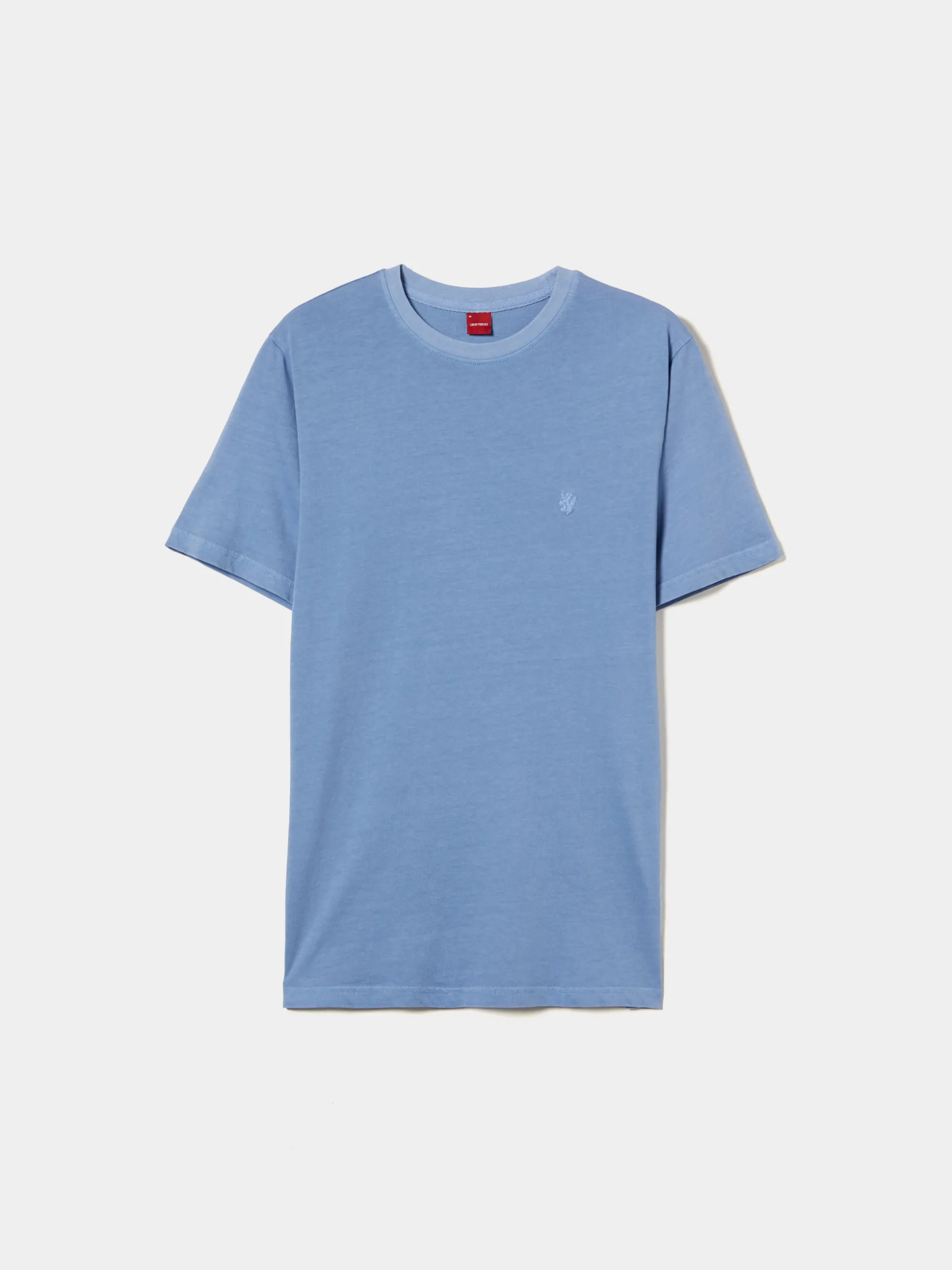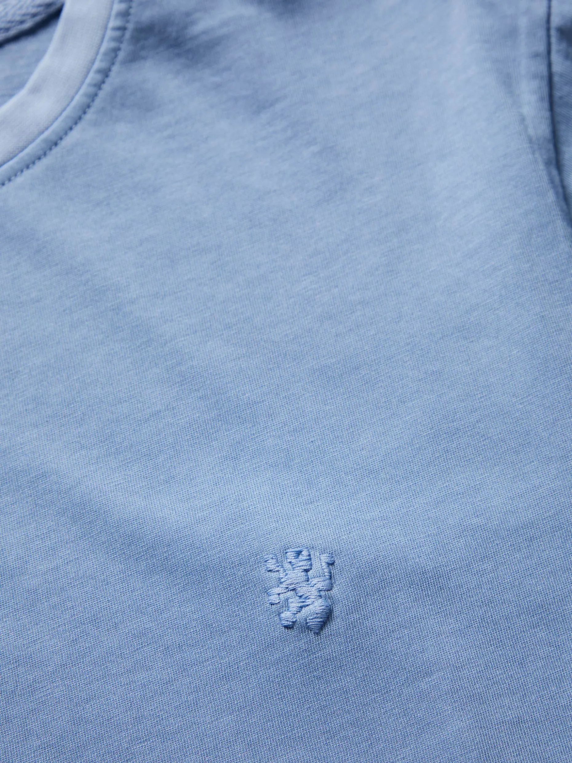 T-shirt de manga curta, de cor lisa, com pequeno leão da marca ao tom no peito. Disponível em várias cores, todas de tons pastel, perfeitas para as estações mais quentes. Confecionada com recurso à técnica garment dye, que consiste no tingimento após a confeção, resultando numa cor única, um toque mais suave e um visual casualmente sofisticado.