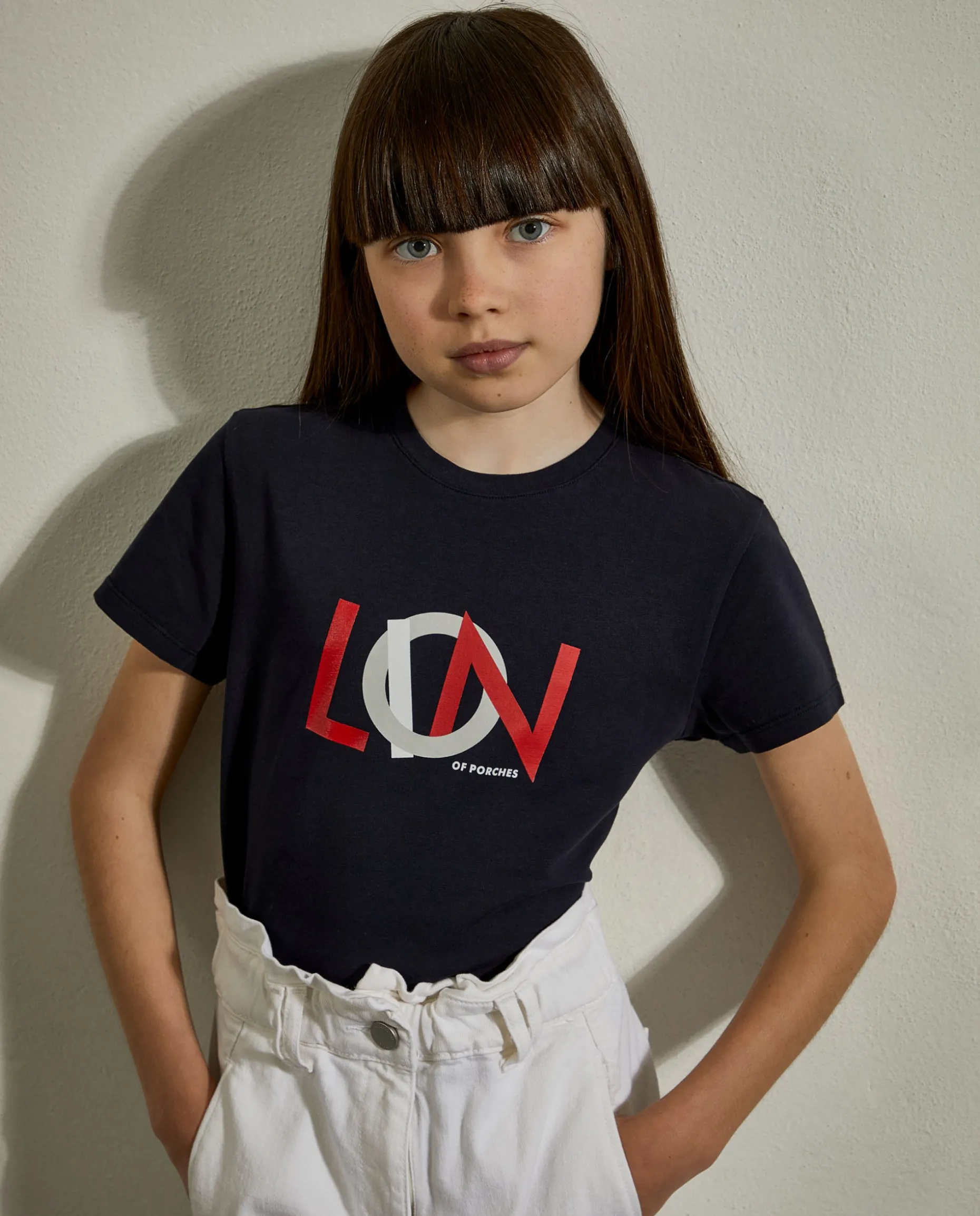 T-shirt de manga curta com estampado Lion of Porches na frente em contraste. Detalhe da fita de riscas tricolor na parte de trás da gola.