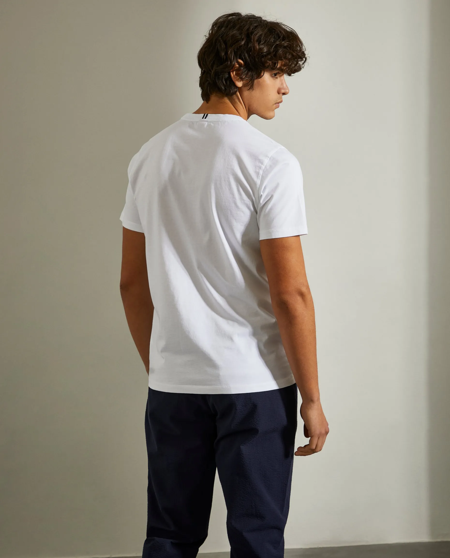 T-shirt de manga curta com estampado Lion of Porches na frente em contraste. Detalhe da fita de riscas bicolor atrás na gola.
