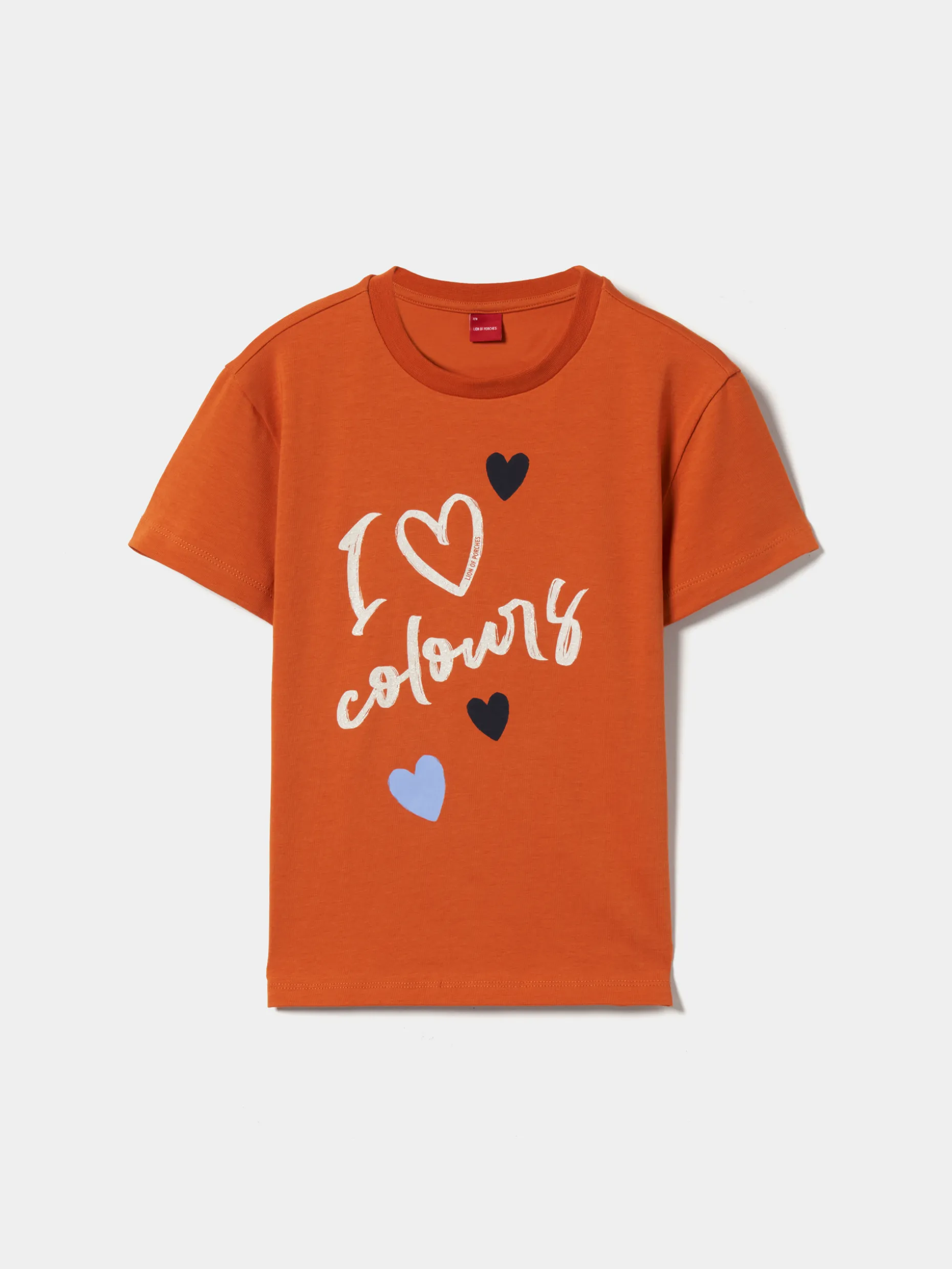 T-shirt de manga curta, em algodão, com estampado em contraste na frente. De gola redonda. Confecionada em algodão com uma percentagem de elastano para maior liberdade de movimentos.