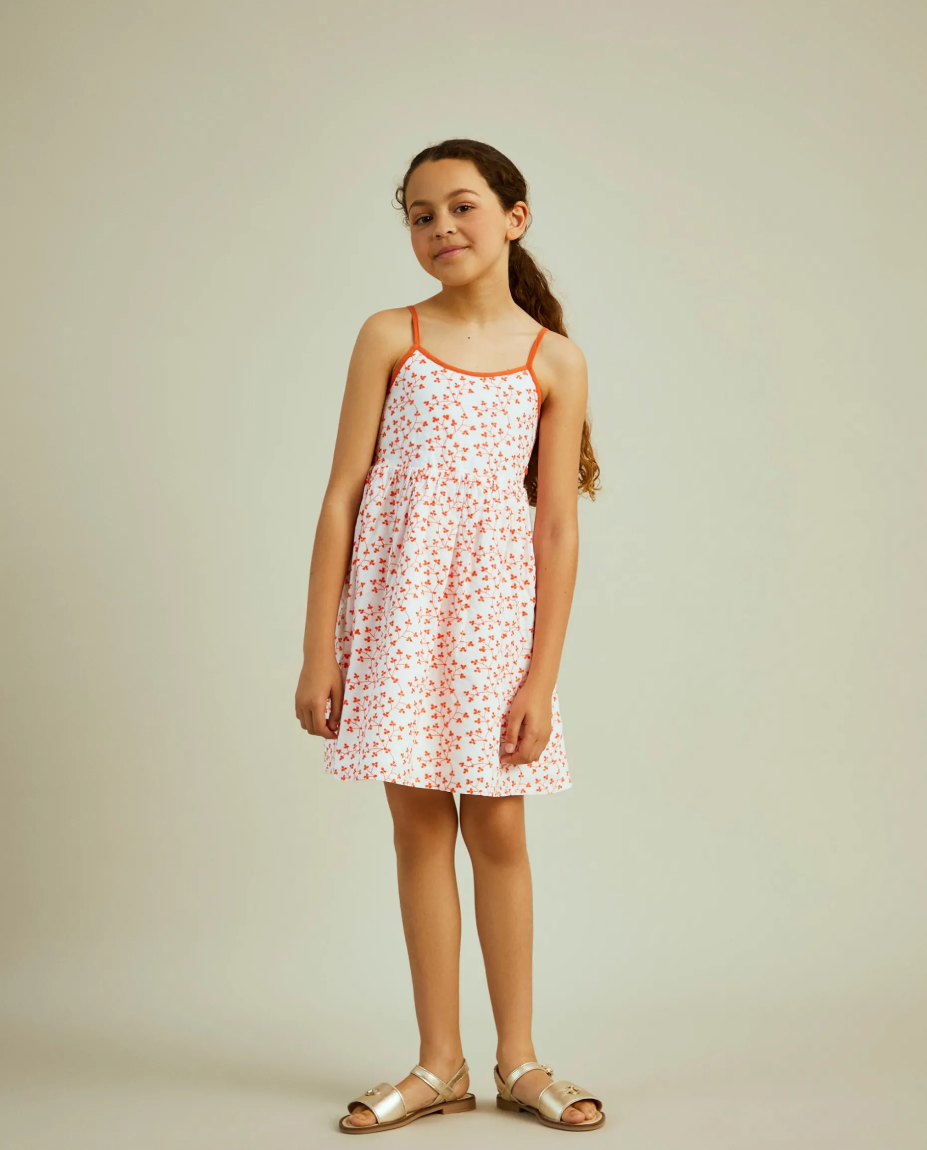 Para as meninas mais vaidosas, propomos este colorido vestido de alças com bordado de flores em contraste de cor por toda a peça. As alças finas são reguláveis. É confecionado, na totalidade, em algodão para maior conforto e suavidade.