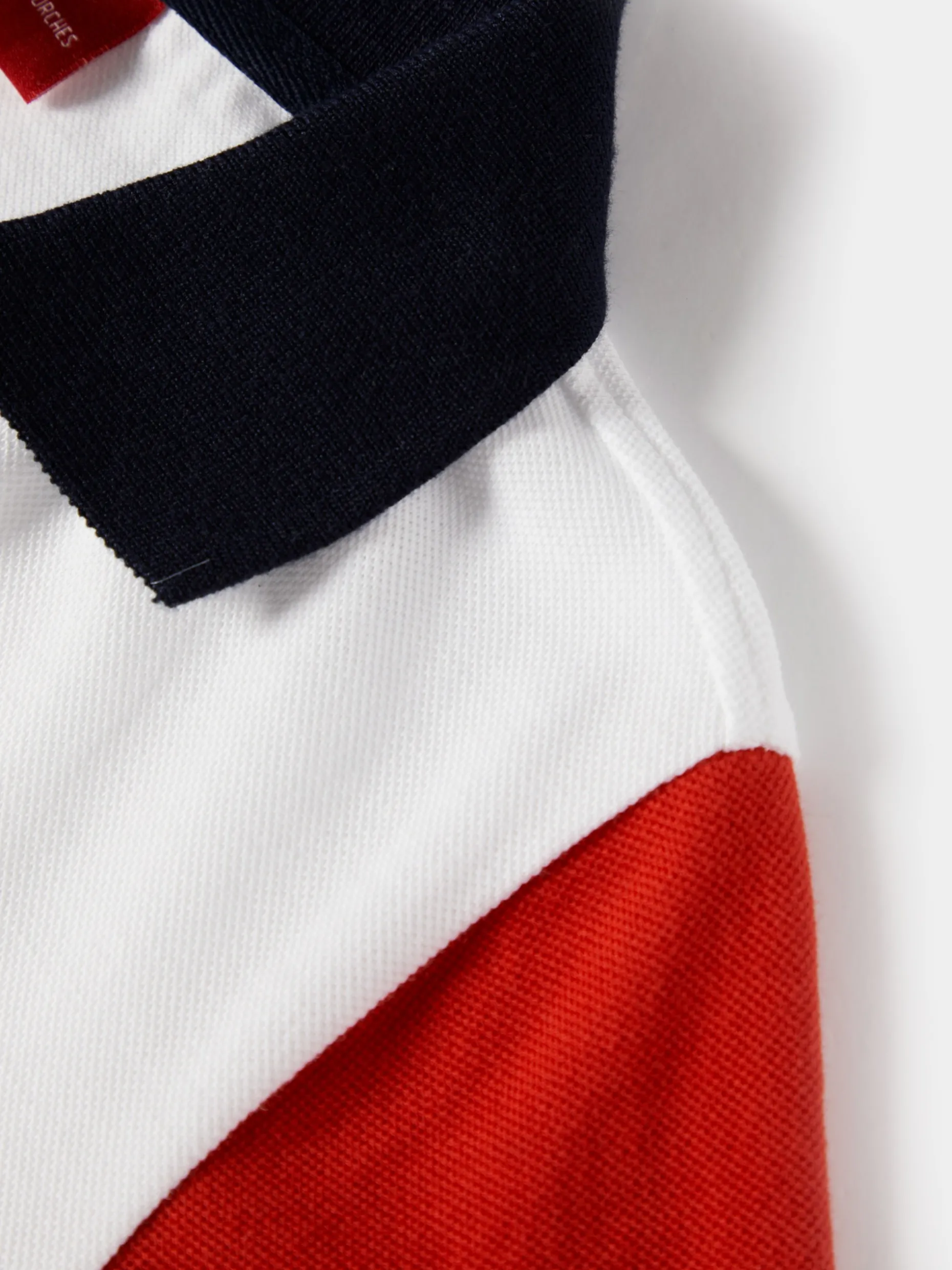 Vestido, estilo polo, de malha, com manga curta, uma de cada cor. Uma escolha leve e confortável para brincadeiras sem limites já que é confecionado, na totalidade, em algodão. Com branding Lion of Porches na frente, a gola tem também outra cor.
