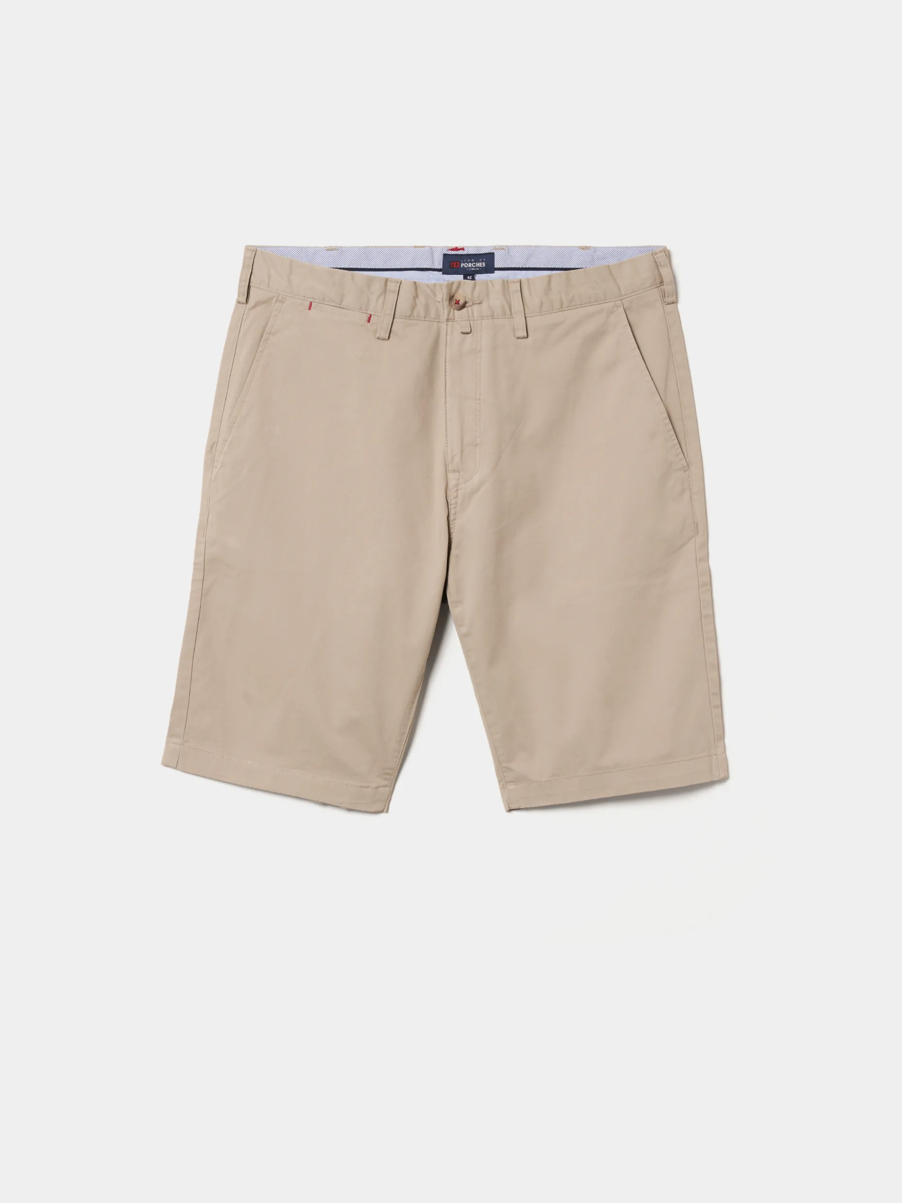 Bermudas chino confecionadas em algodão stretch. Dois bolsos laterais. Dois bolsos posteriores. Apertam na frente com fecho oculto por carcela e botão.
