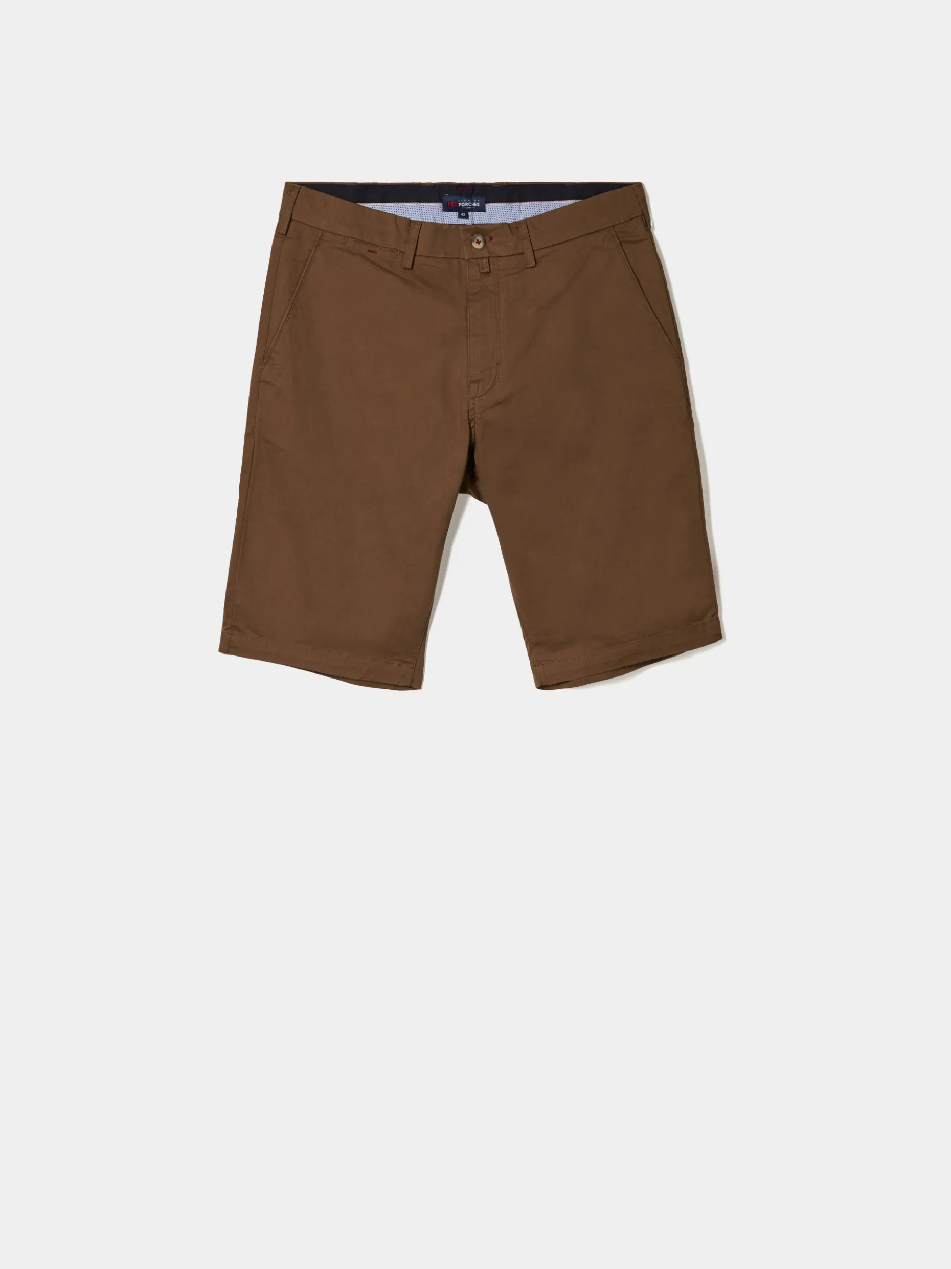 Bermudas chino confecionadas em algodão stretch. Dois bolsos laterais. Dois bolsos posteriores. Apertam na frente com fecho oculto por carcela e botão.