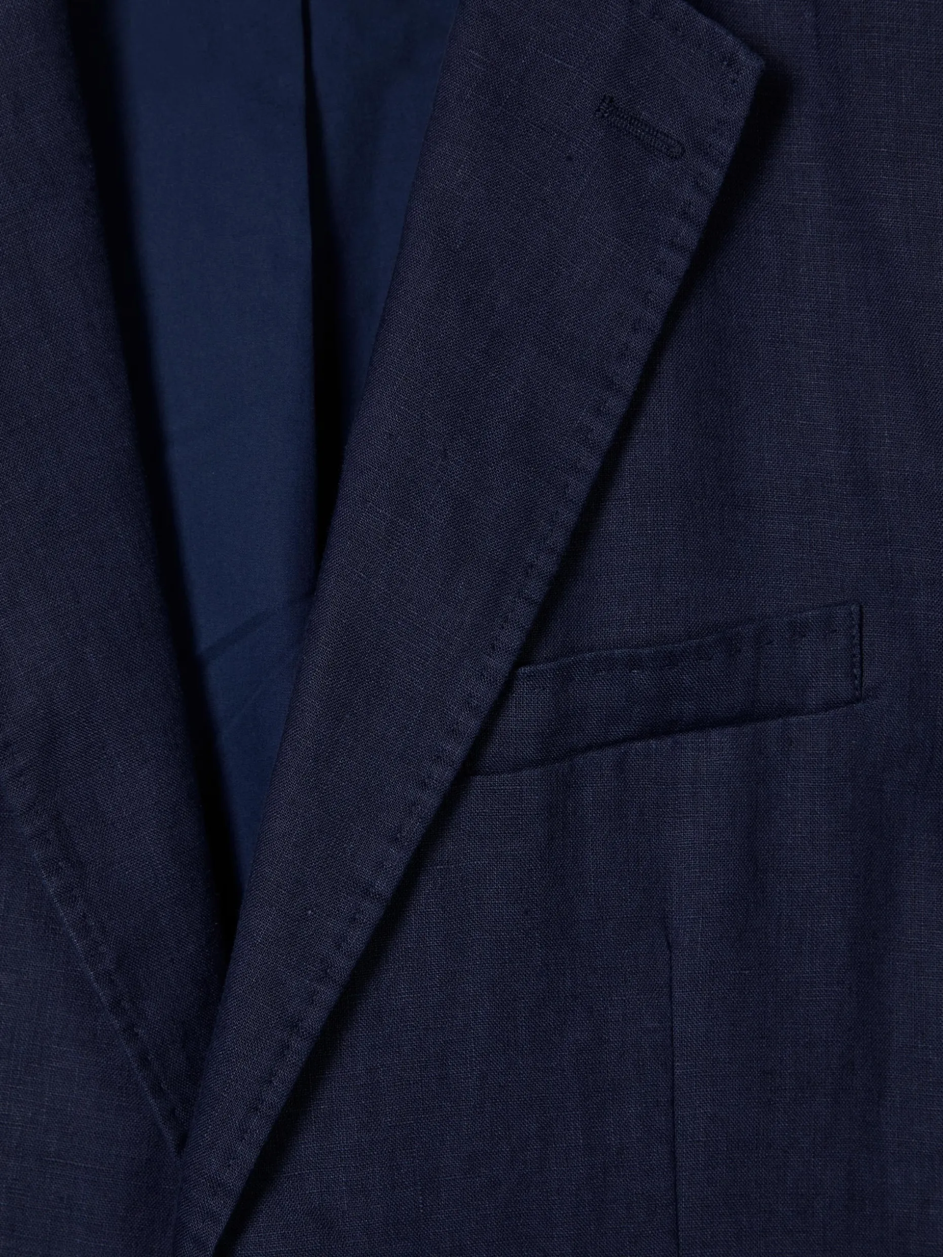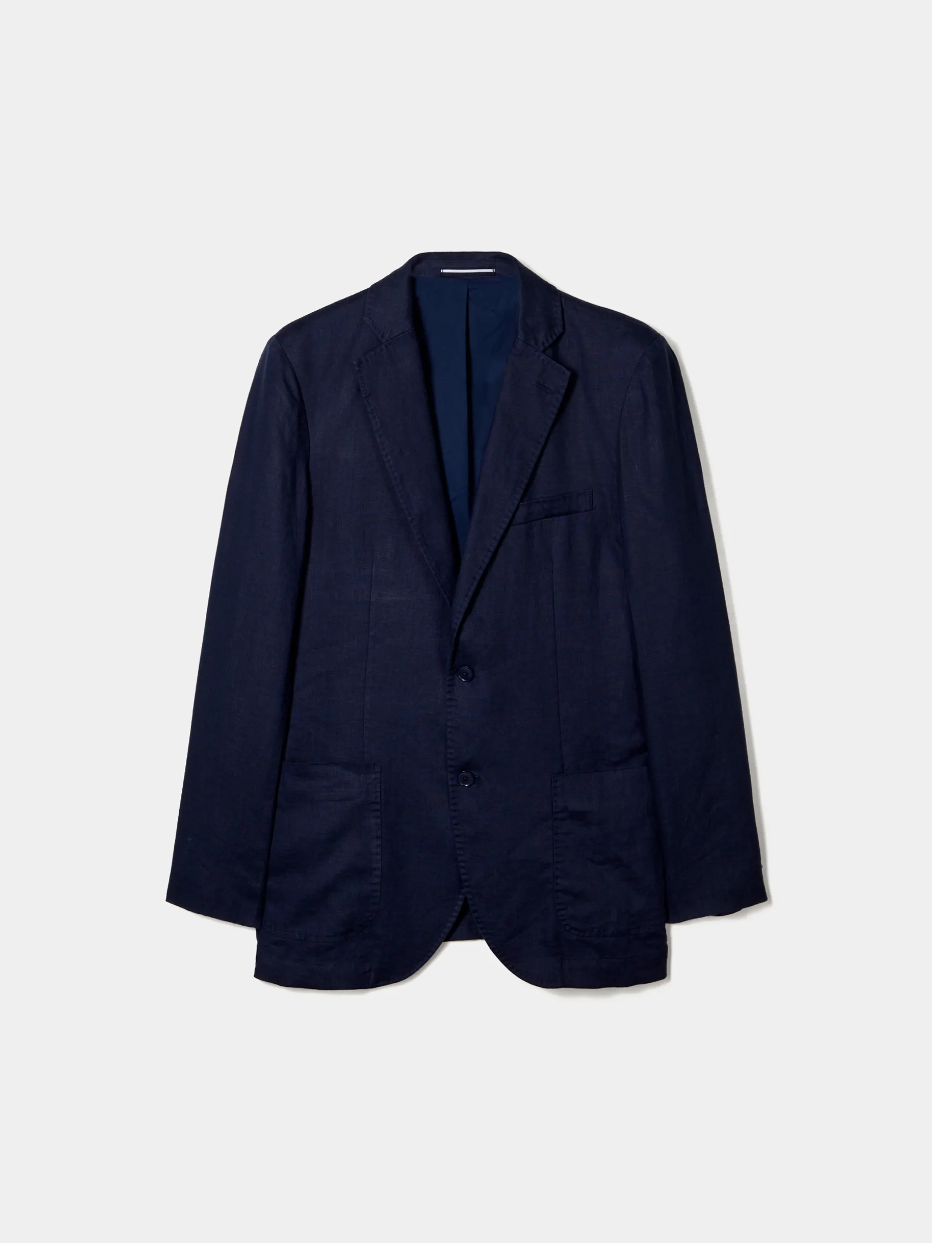 Blazer slim fit em linho. A escolha perfeita para um look elegante nas estações mais quentes. Aperta na frente com dois botões e finaliza com dois bolsos de chapa na frente e outro ao nível do peito. Na parte de trás, conta com duas aberturas. No interior, meio forro e três bolsos em contraste de cor.