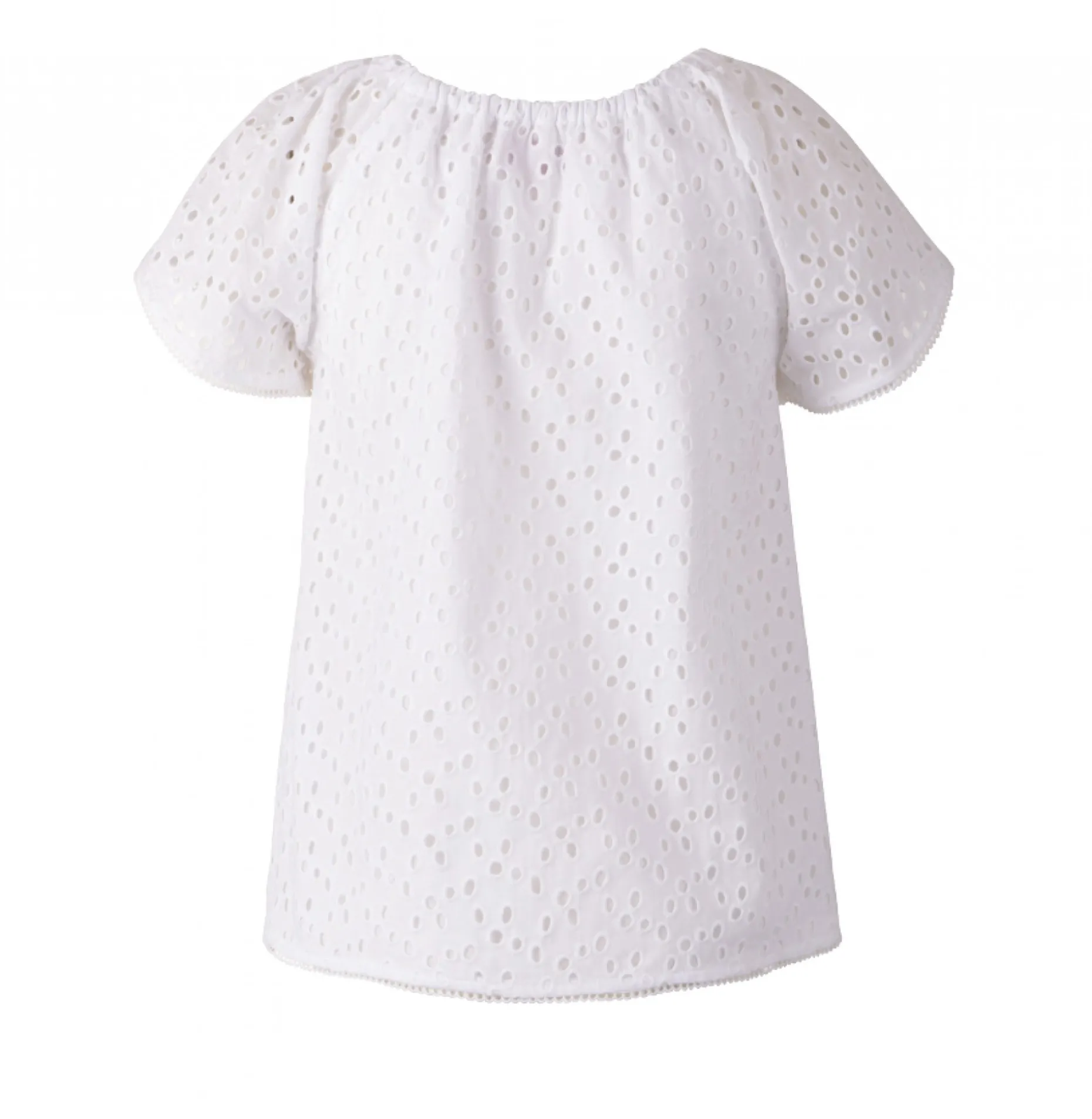 Esta blusa em bordado inglês alia na perfeição a modernidade e o passado. Emblema da marca aplicado na extremidade. Decote em elástico ligeiramente descoberto.