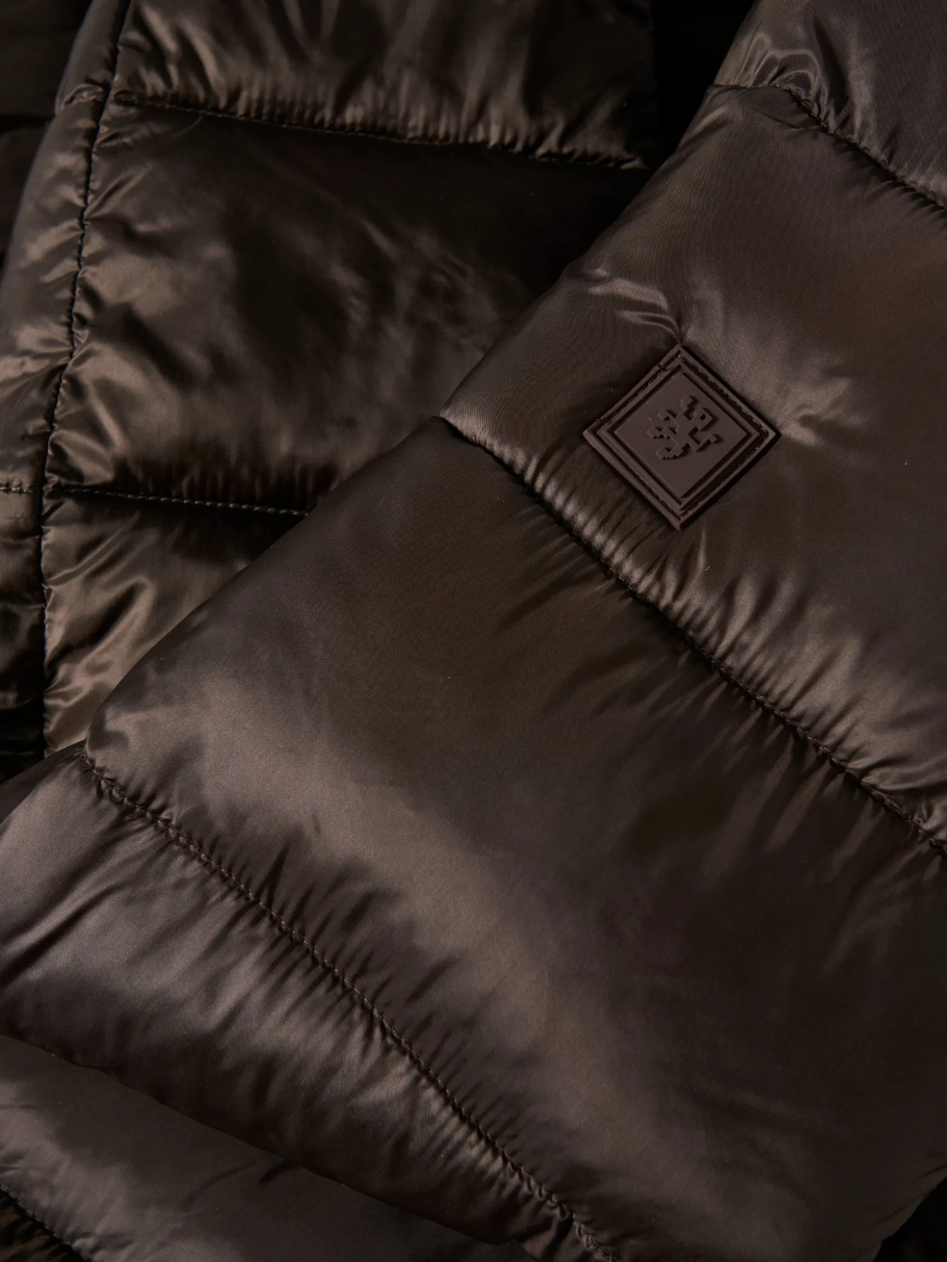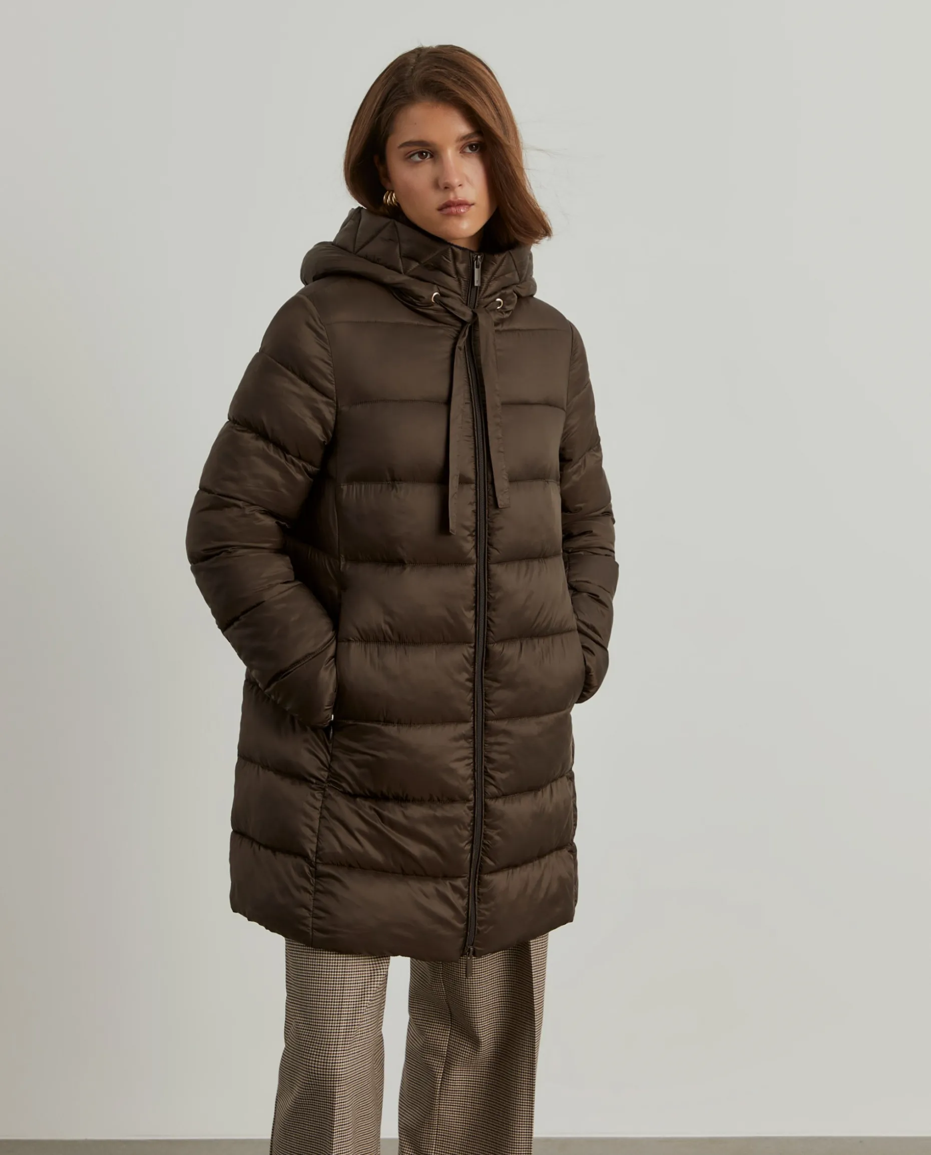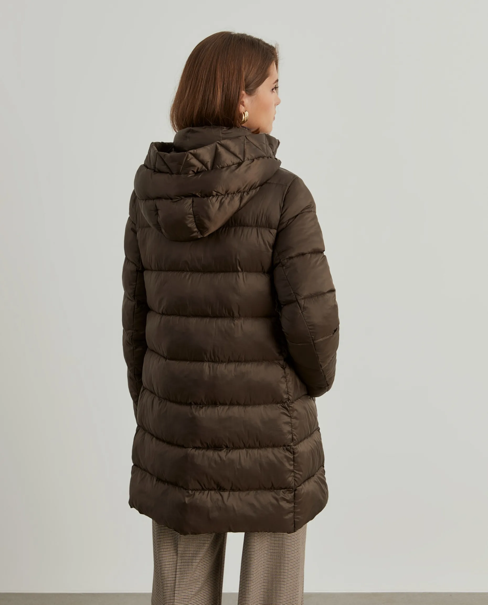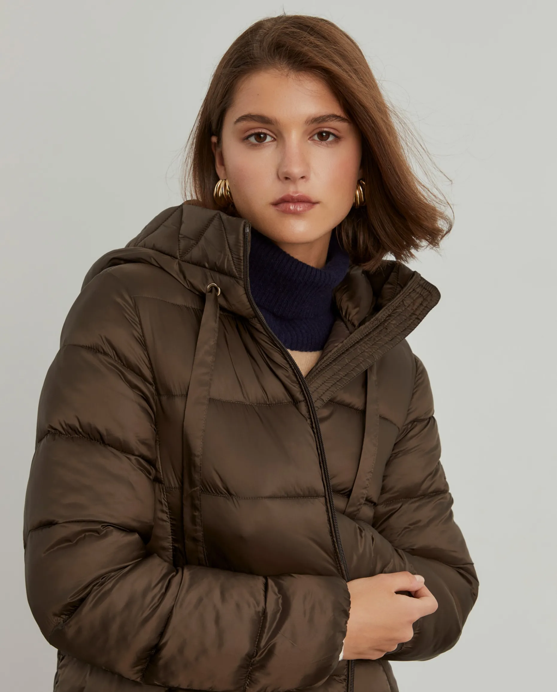 Proteja-se da chuva e do vento com este blusão acolchoado comprido. Com capuz ajustável e aperto através de fecho zíper com duplo cursor. Finaliza com bolsos laterais com fecho invisível. O punho é ligeiramente elástico para maior conforto.