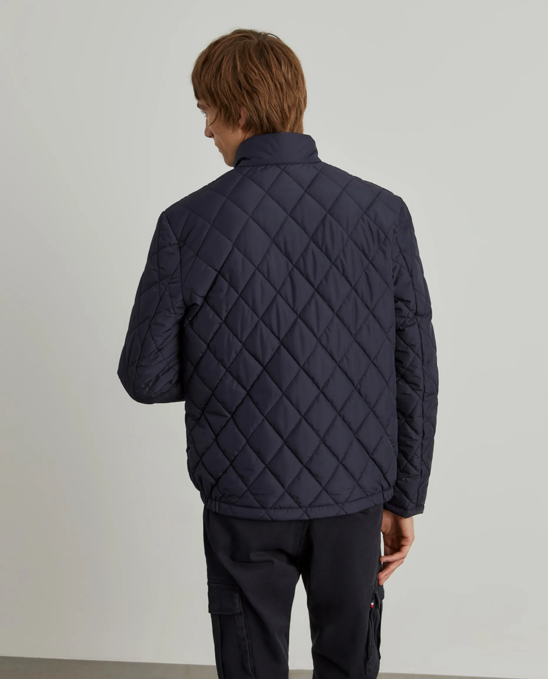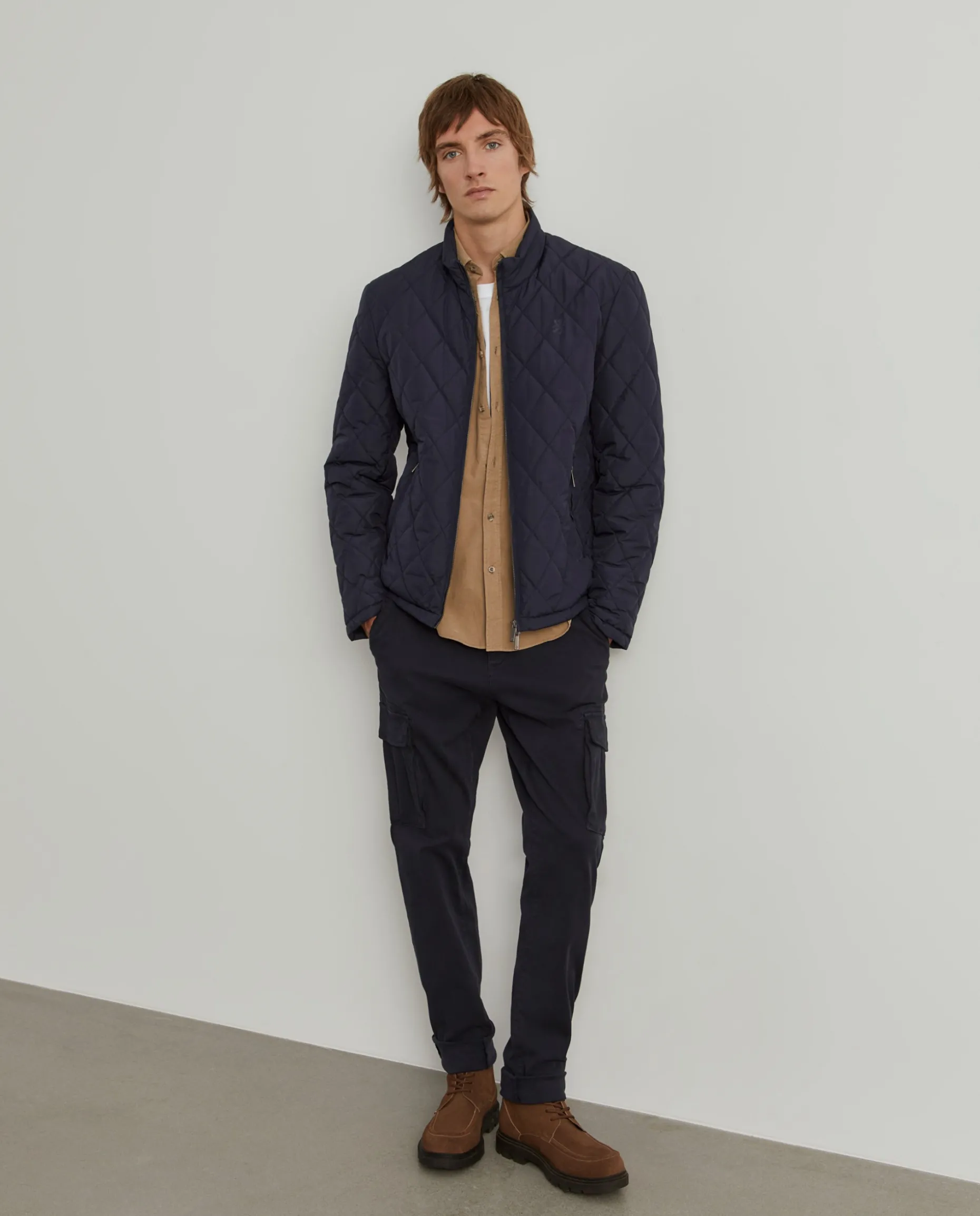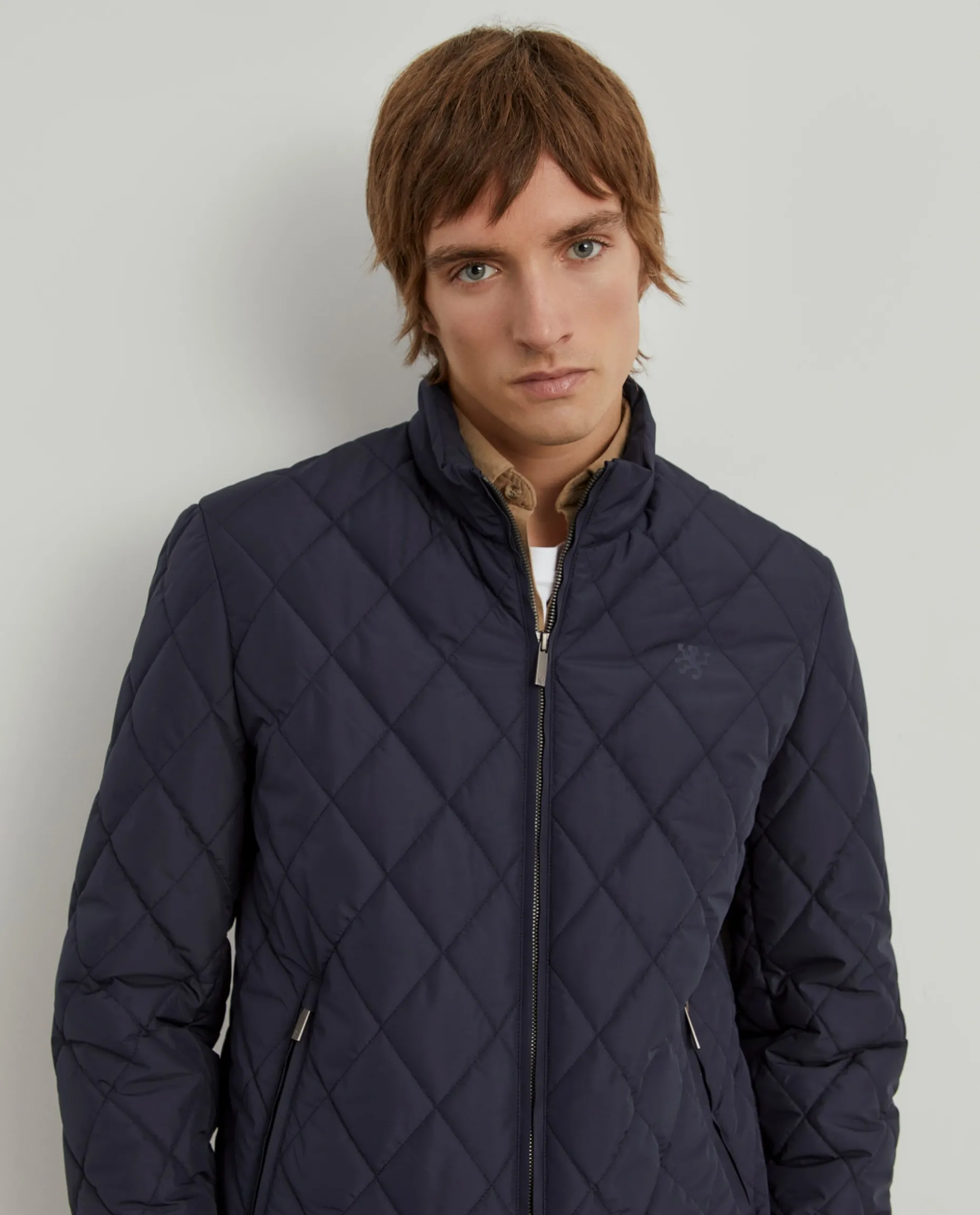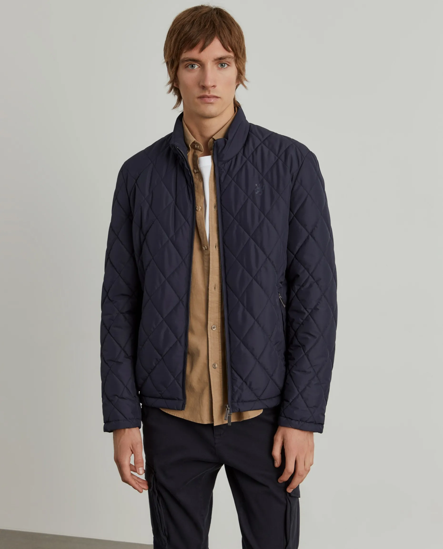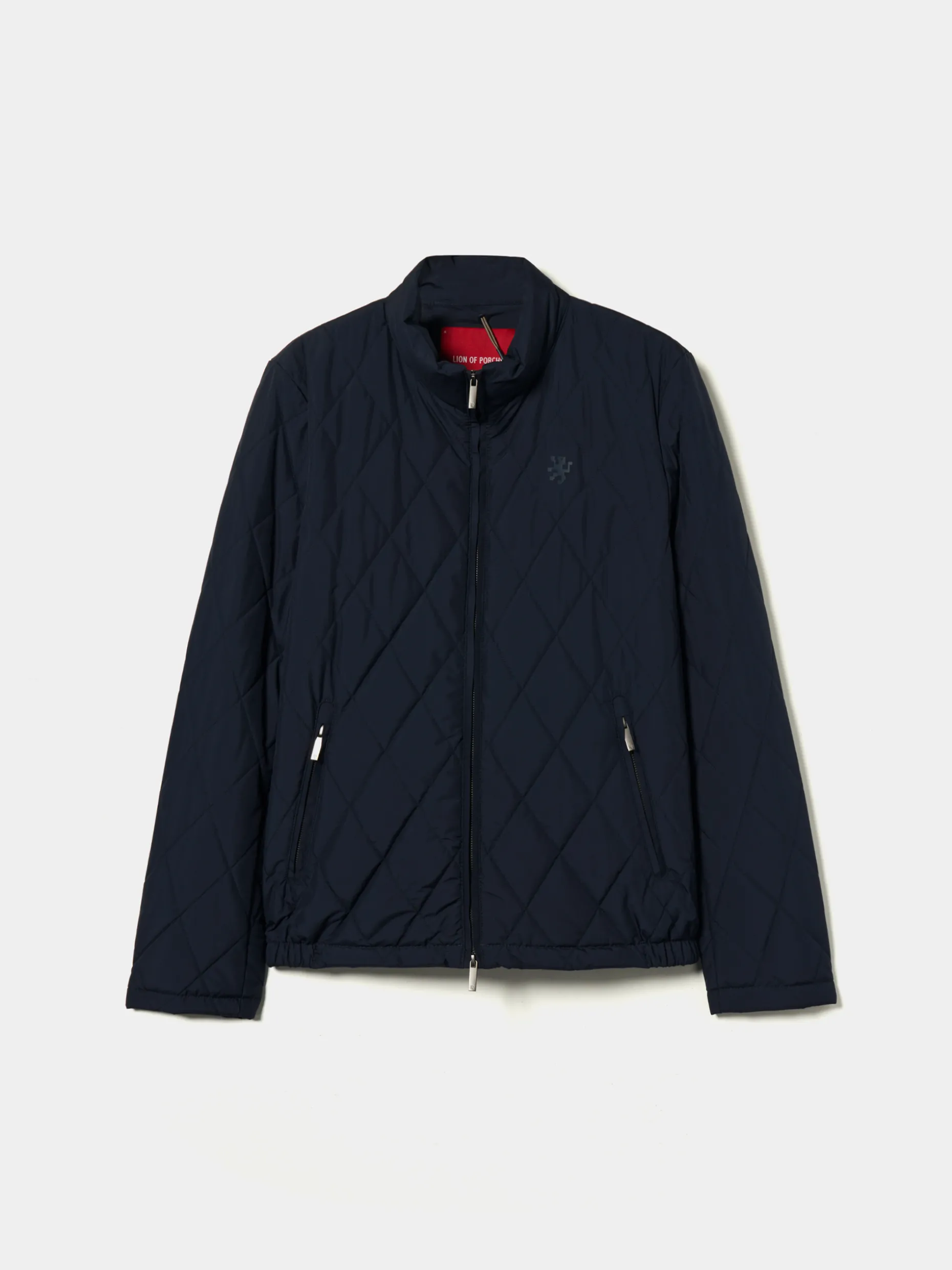 Blusão acolchoado com gola subida repelente à água protegendo-o, não só do frio, mas também da chuva. Aperta com fecho de duplo cursor e tem dois bolsos na frente com fecho. Finaliza com emblema Lion of Porches no peito. No interior tem um bolso de fecho.
