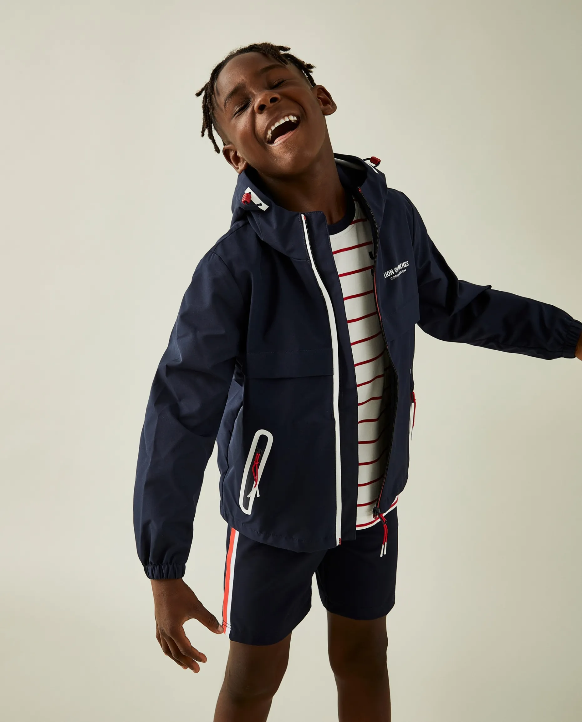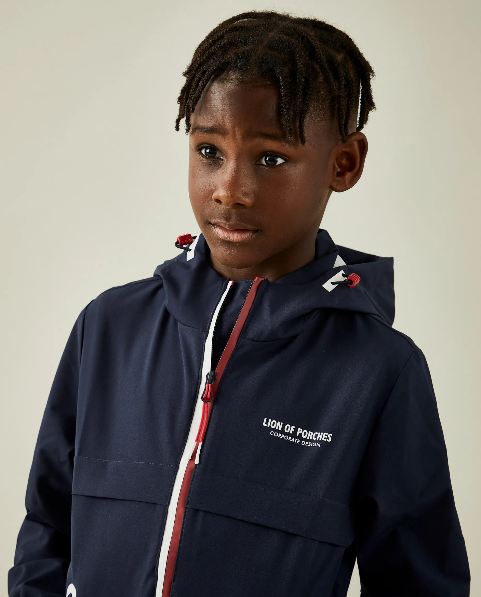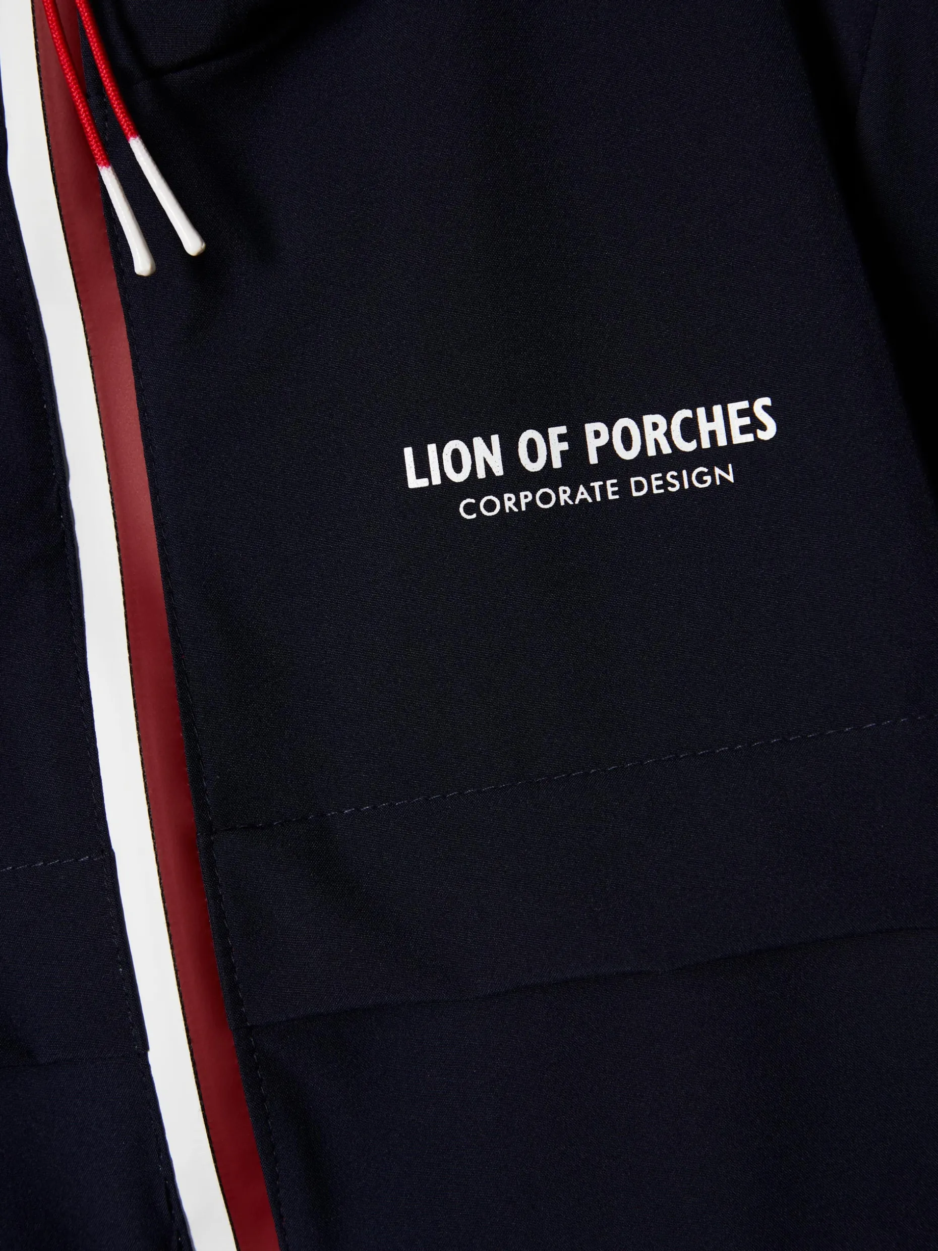 Um indispensável no guarda-roupa dos miúdos é este blusão com capuz ajustável. Aperta com fecho de correr de duplo cursor vulcanizado em duas cores. O mesmo acontece nos bolsos frontais. Finaliza com estampado Lion of Porches no peito, em contraste de cor.
