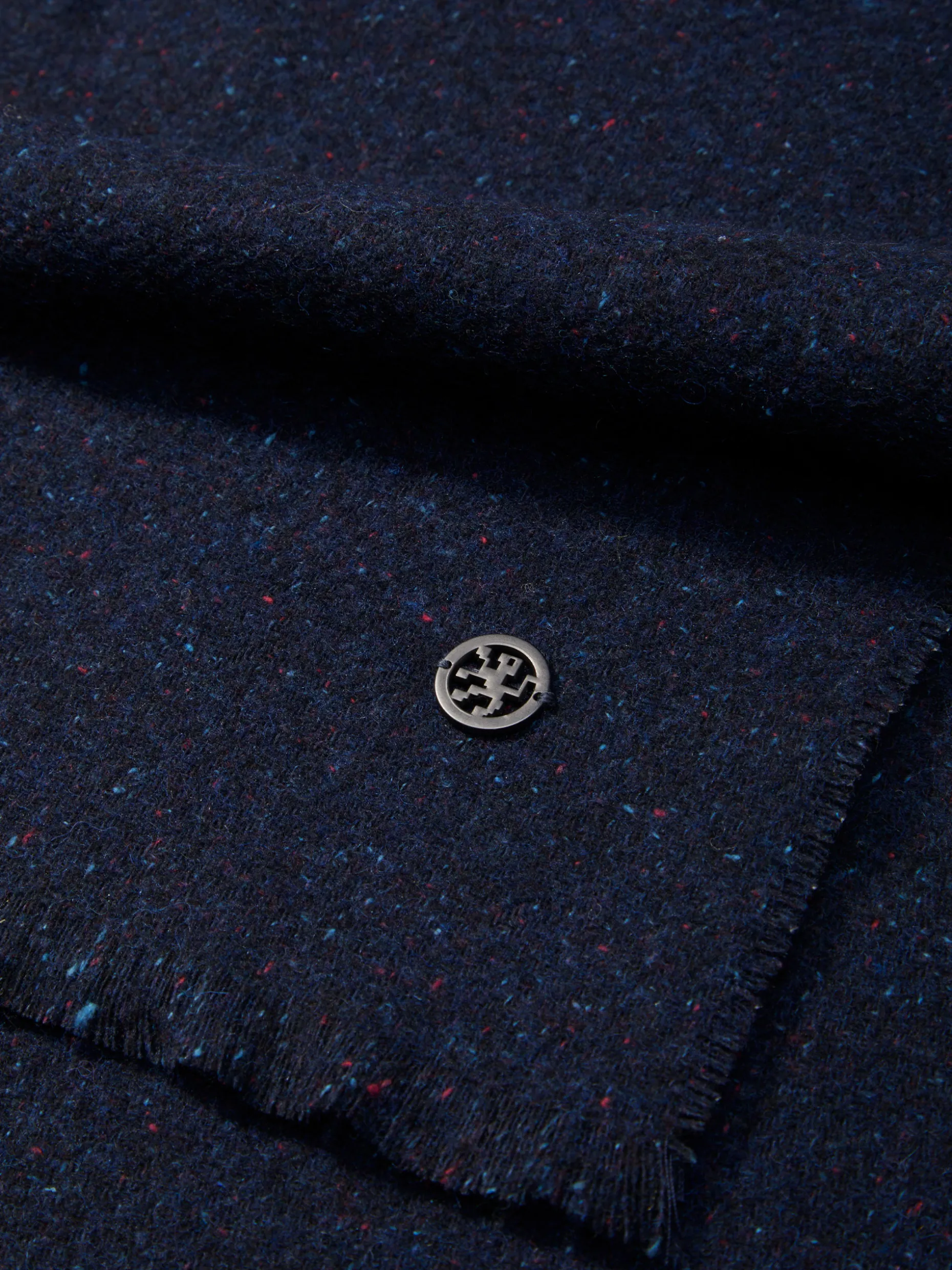 Cachecol mescla com aplicação gun metálica costurada numa das extremidades. (Medidas:36cmX200cm)