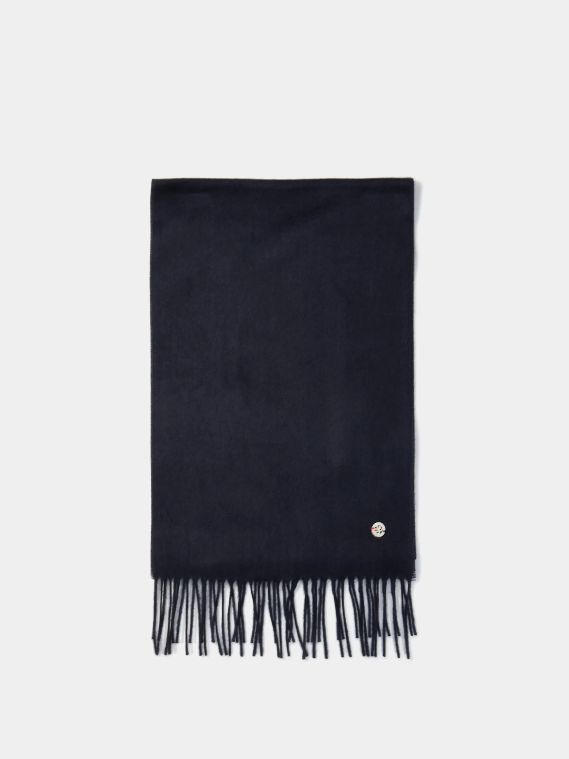 Mantenha as miúdas quentes e confortáveis com este cachecol liso com franjas e placa redonda de leão nas extremidades. Disponível em várias cores.