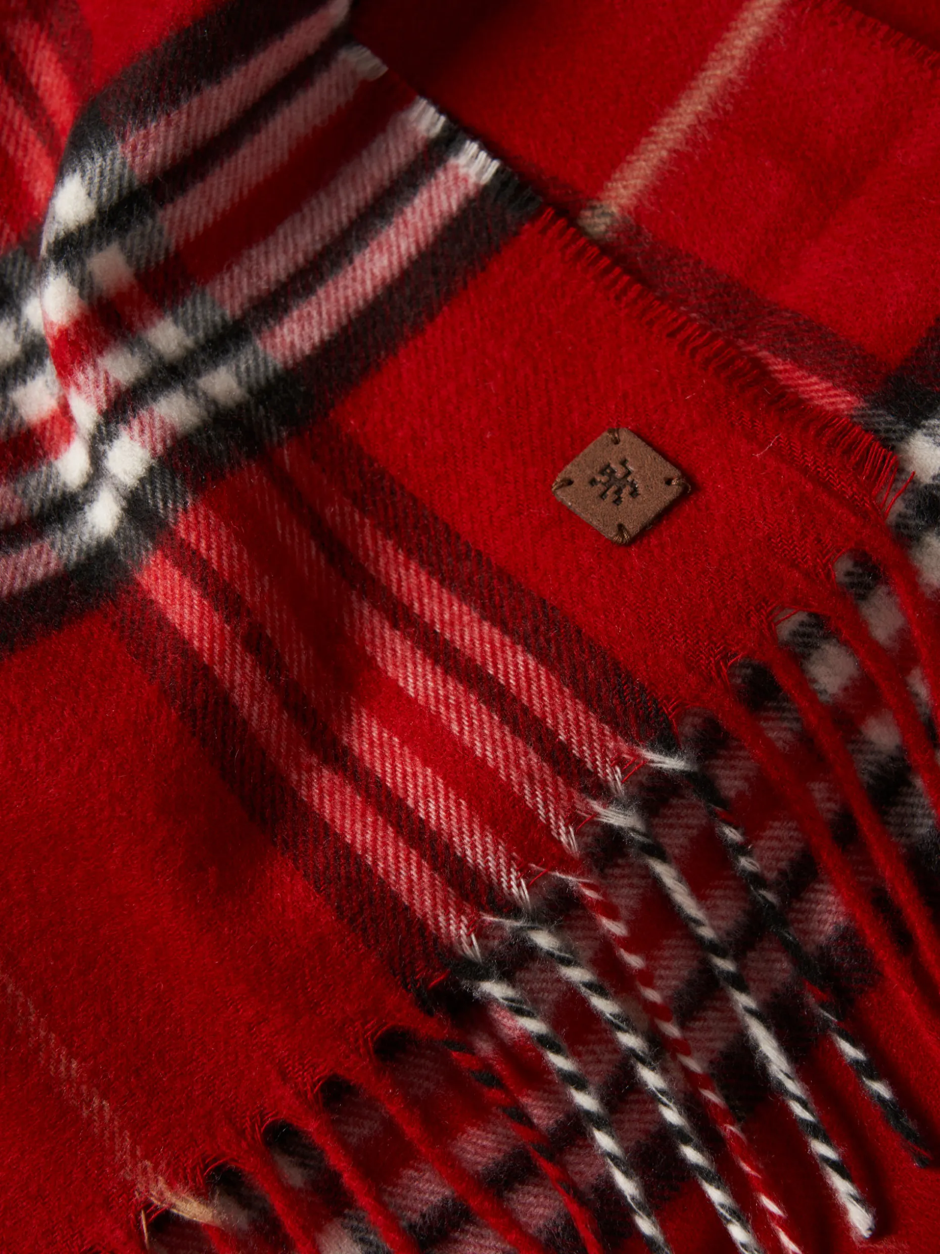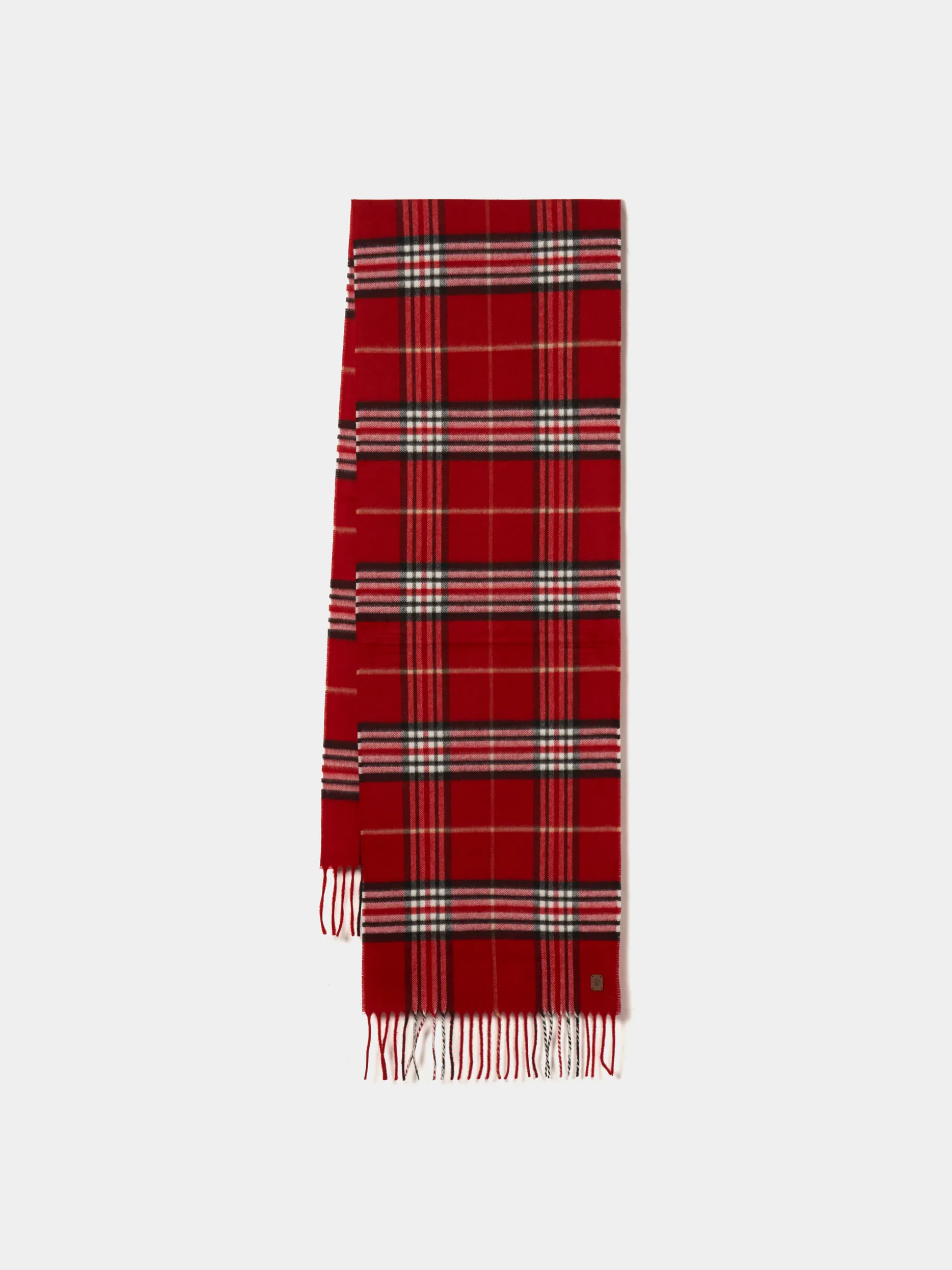 Um must-have no guarda-roupa de inverno, este cachecol tem padrão xadrez e finaliza com franjas nas extremidades. Pequena etiqueta de camurça na ponta.