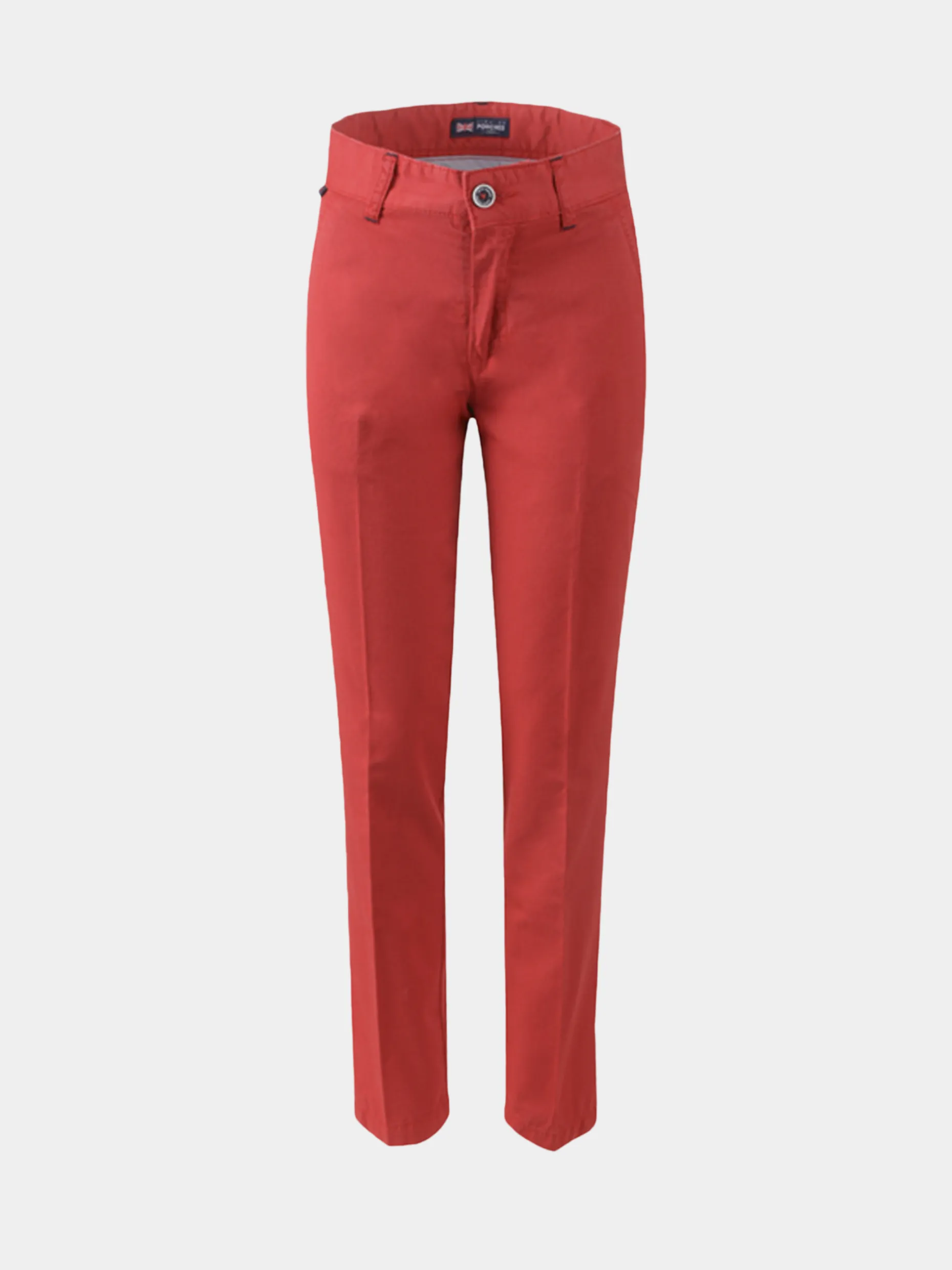 Um toque de classe no estilo dos mais pequenos. Calças chino com bolsos laterais à frente e dois bolsos retos com botão ao centro. Detalhe de etiqueta sobre o bolso com a designação da marca.