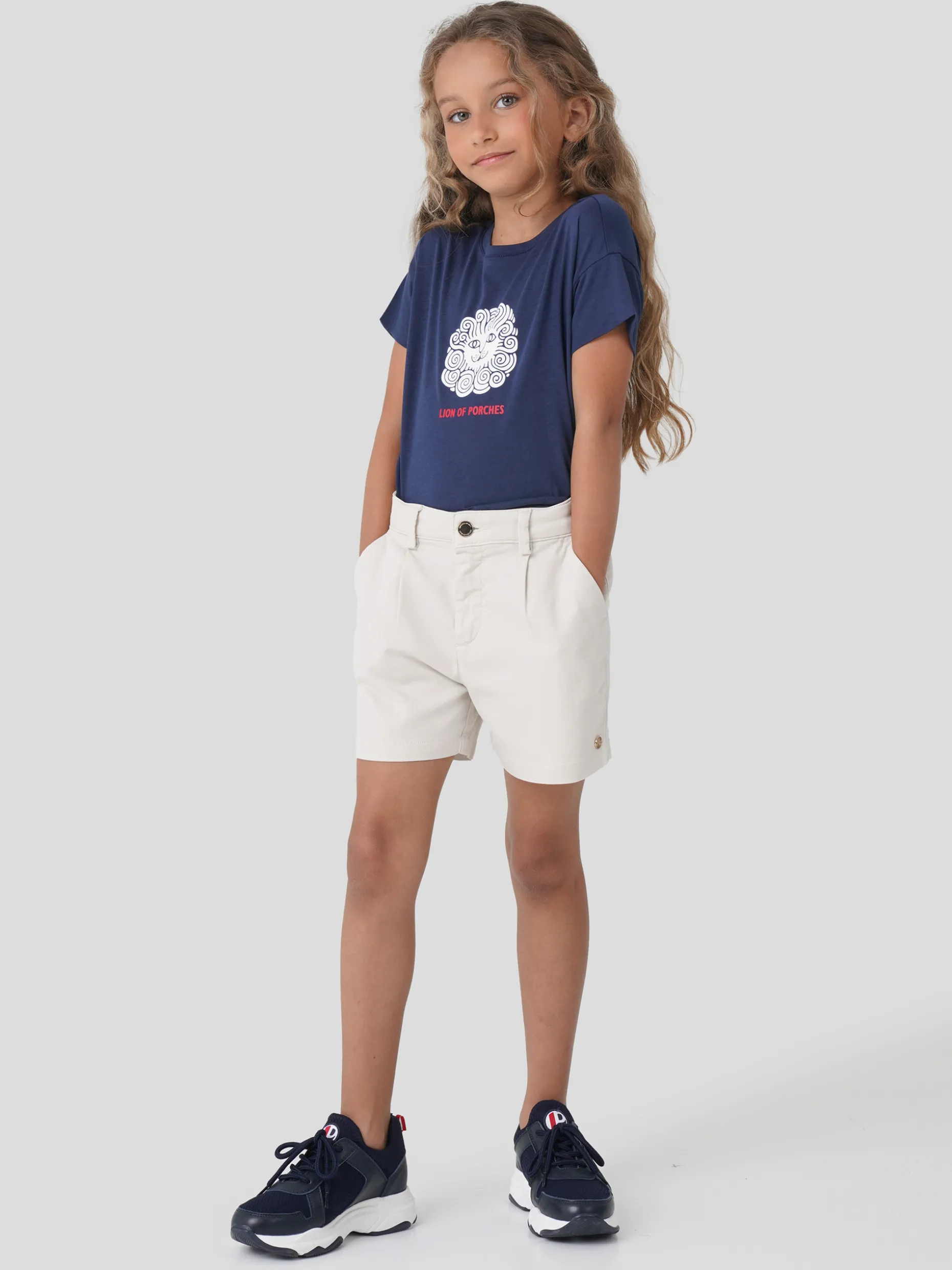 Muito confortáveis, por serem ligeiramente elásticos, estes calções em sarja apresentam bolsos laterais, pregas na frente, braguilha com fecho éclair e botão. Cintura ajustável. Personalizados com pequena chapa metálica «LP» na frente.