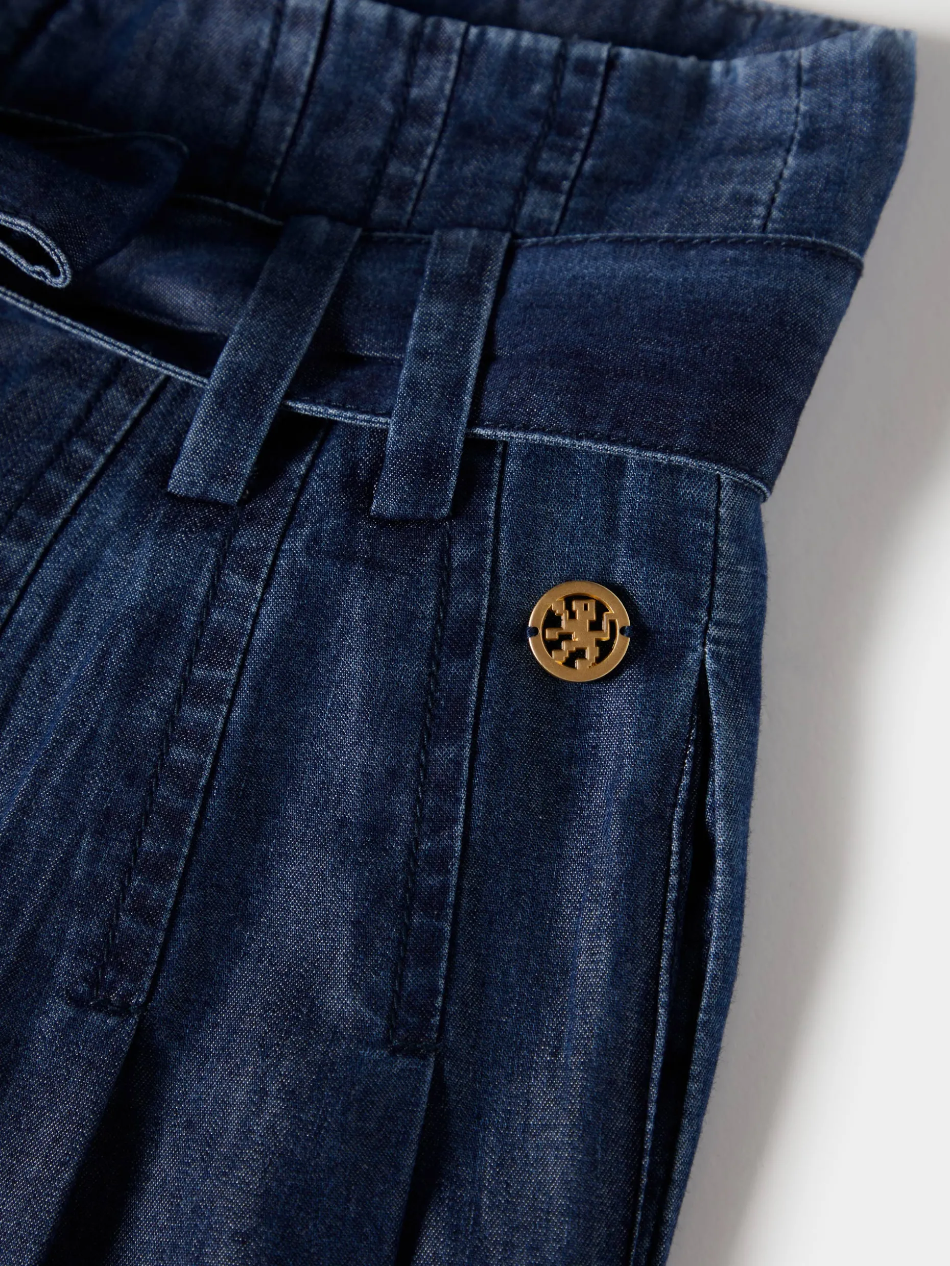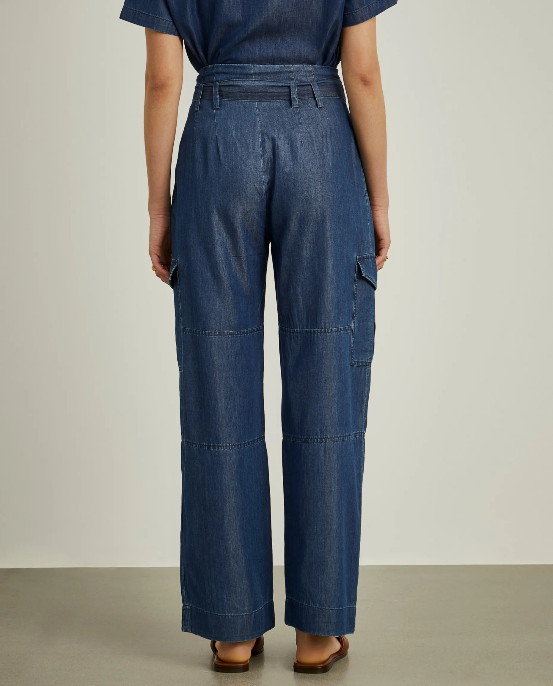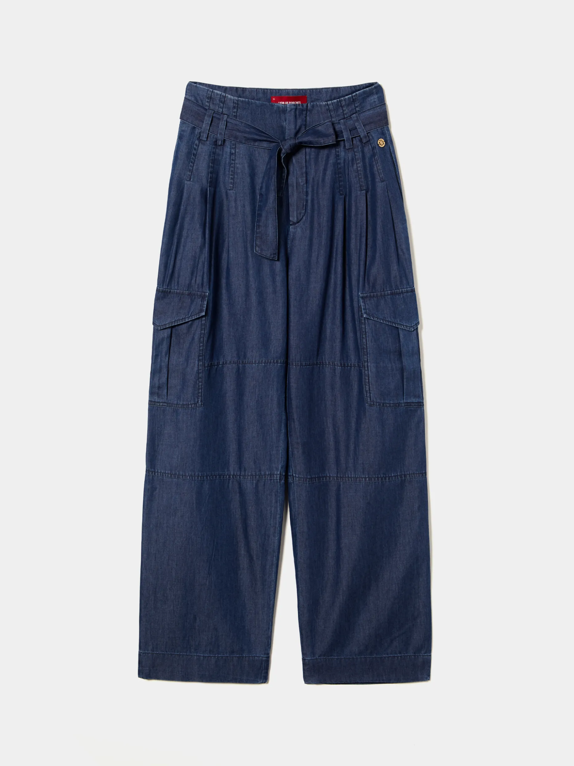 Calças cargo, de cintura subida, e com pregas na frente. Perfeitas para um look leve e descontraído, com cinto no mesmo tecido e tom para dar laçada. Para um total look, veja também a camisa de manga curta, da mesma coleção.