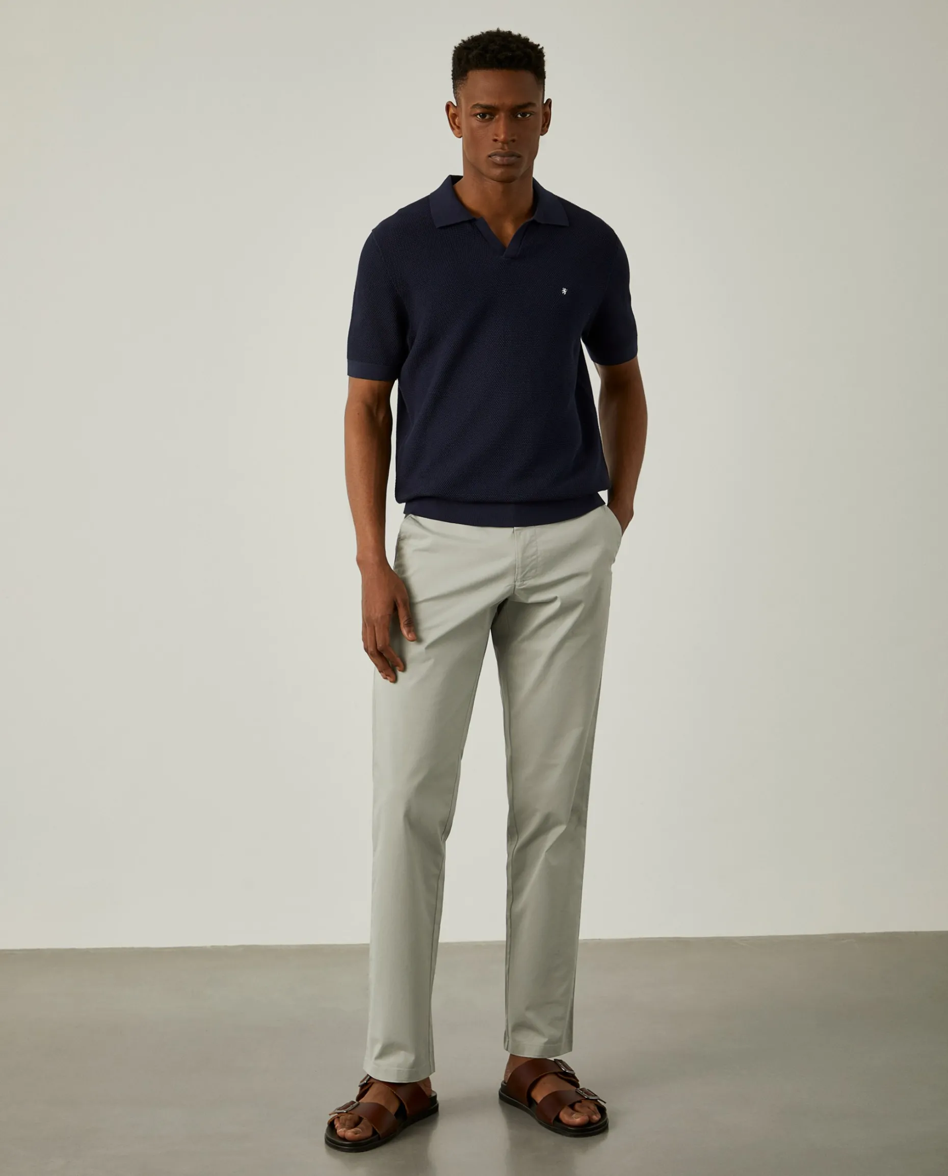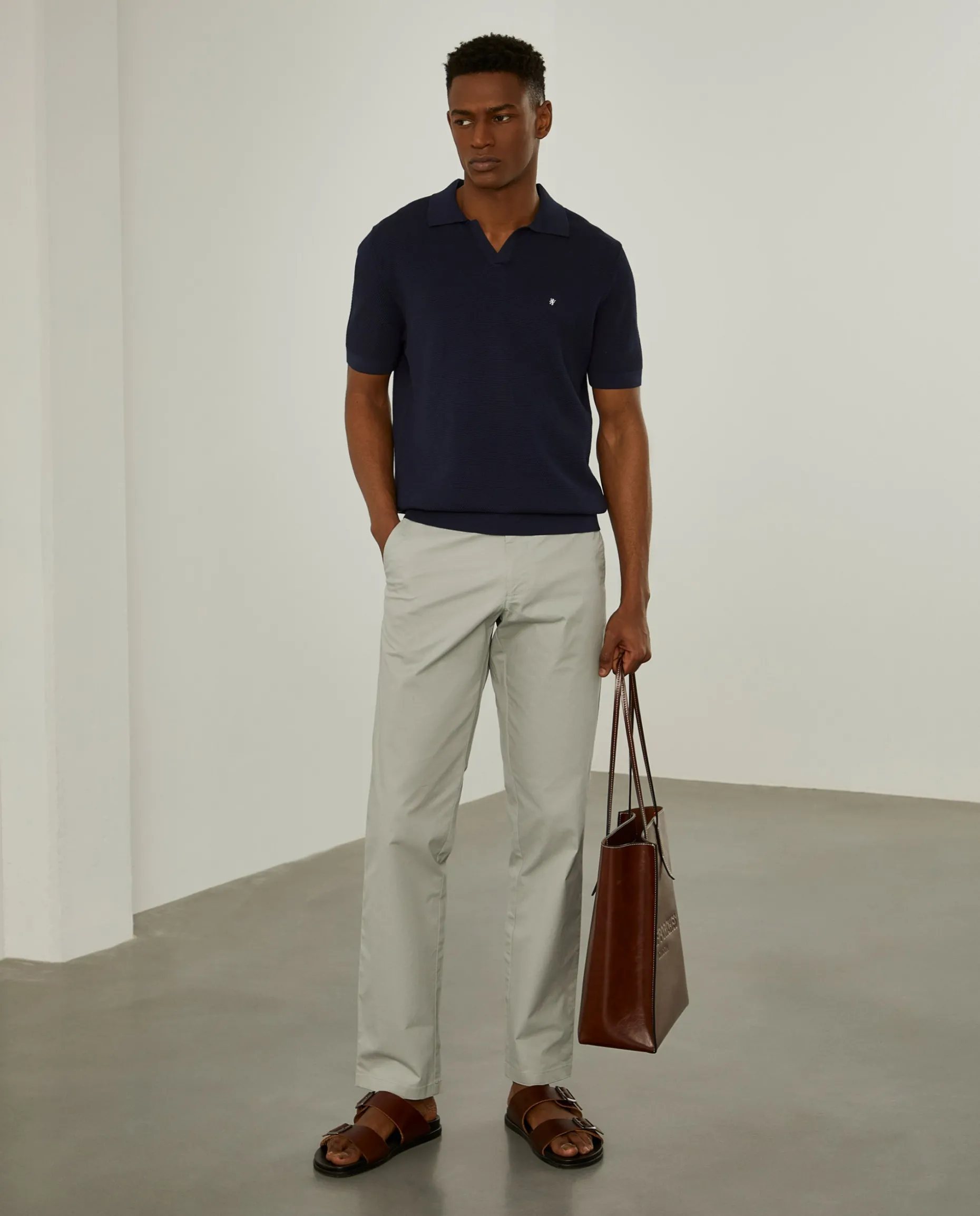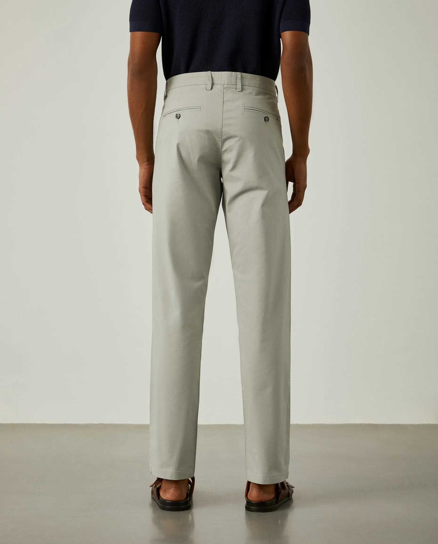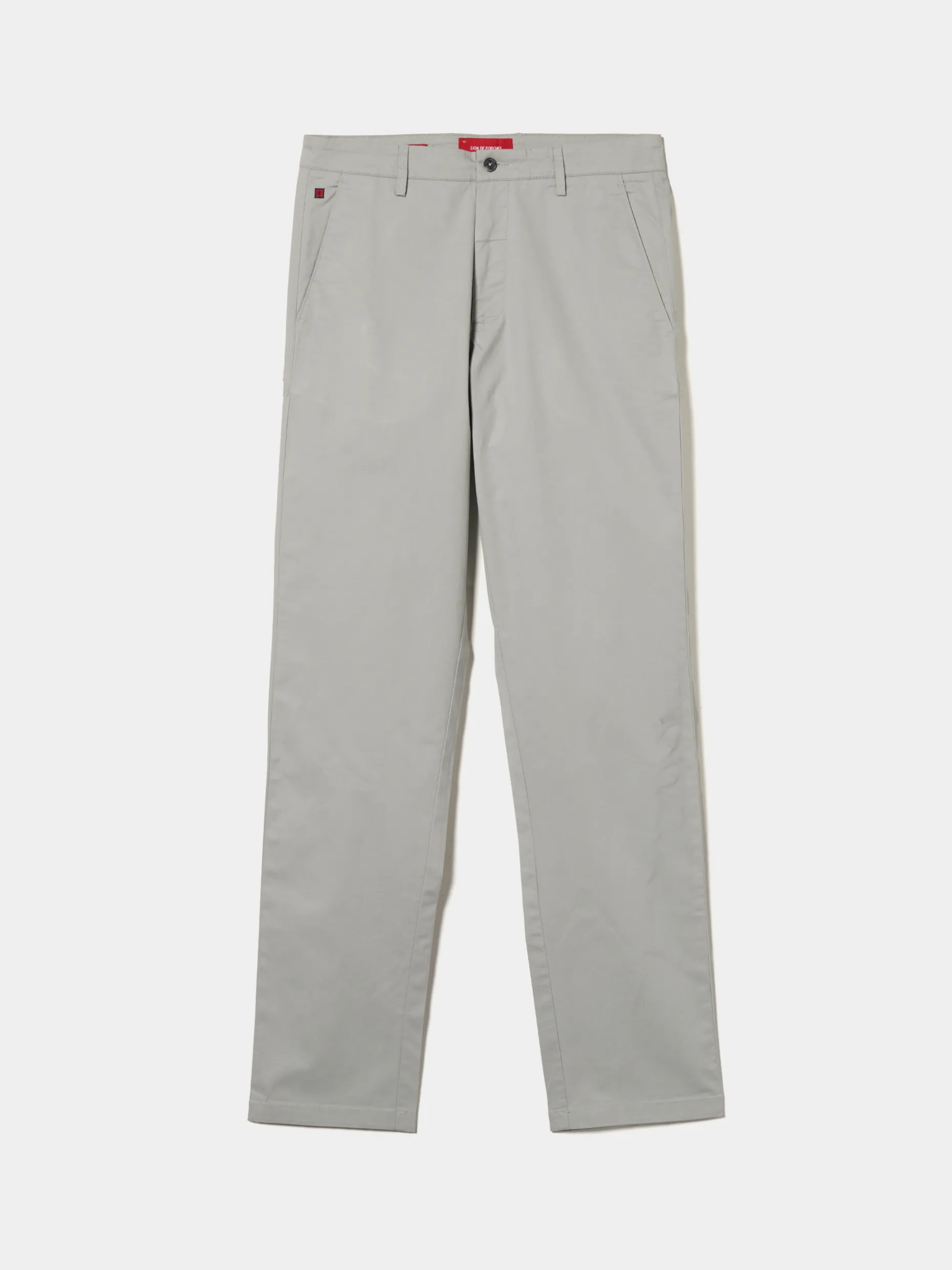 Calças chino regular fit, um must-have para um look casual masculino. Apertam com botão e fecho de correr oculto por carcela. Com bolsos laterais e bolsos traseiros. Confecionadas em algodão com uma pequena percentagem de elastano para maior conforto e durabilidade.