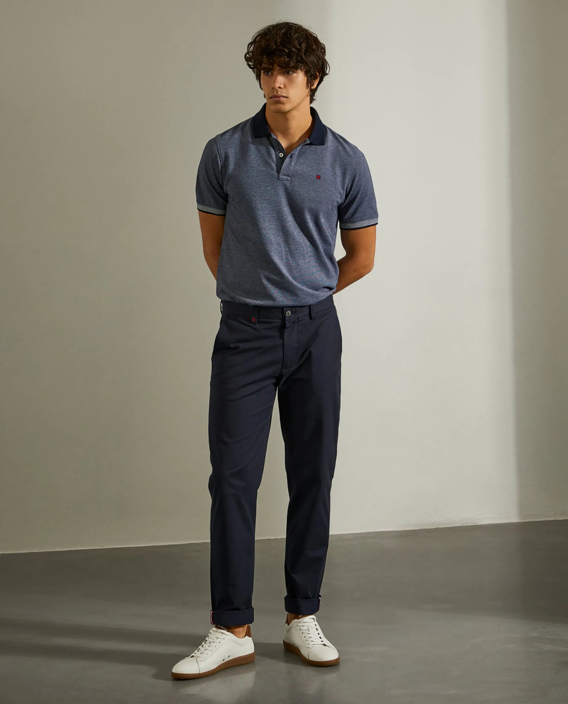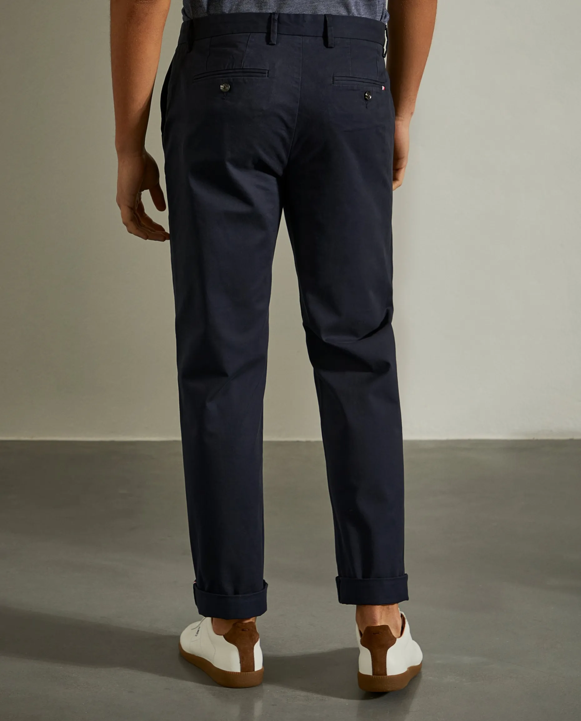 Garanta que está no seu melhor com estas calças chino regular fit. Apertam com fecho e botão e contam com bolsos laterais e posteriores.
