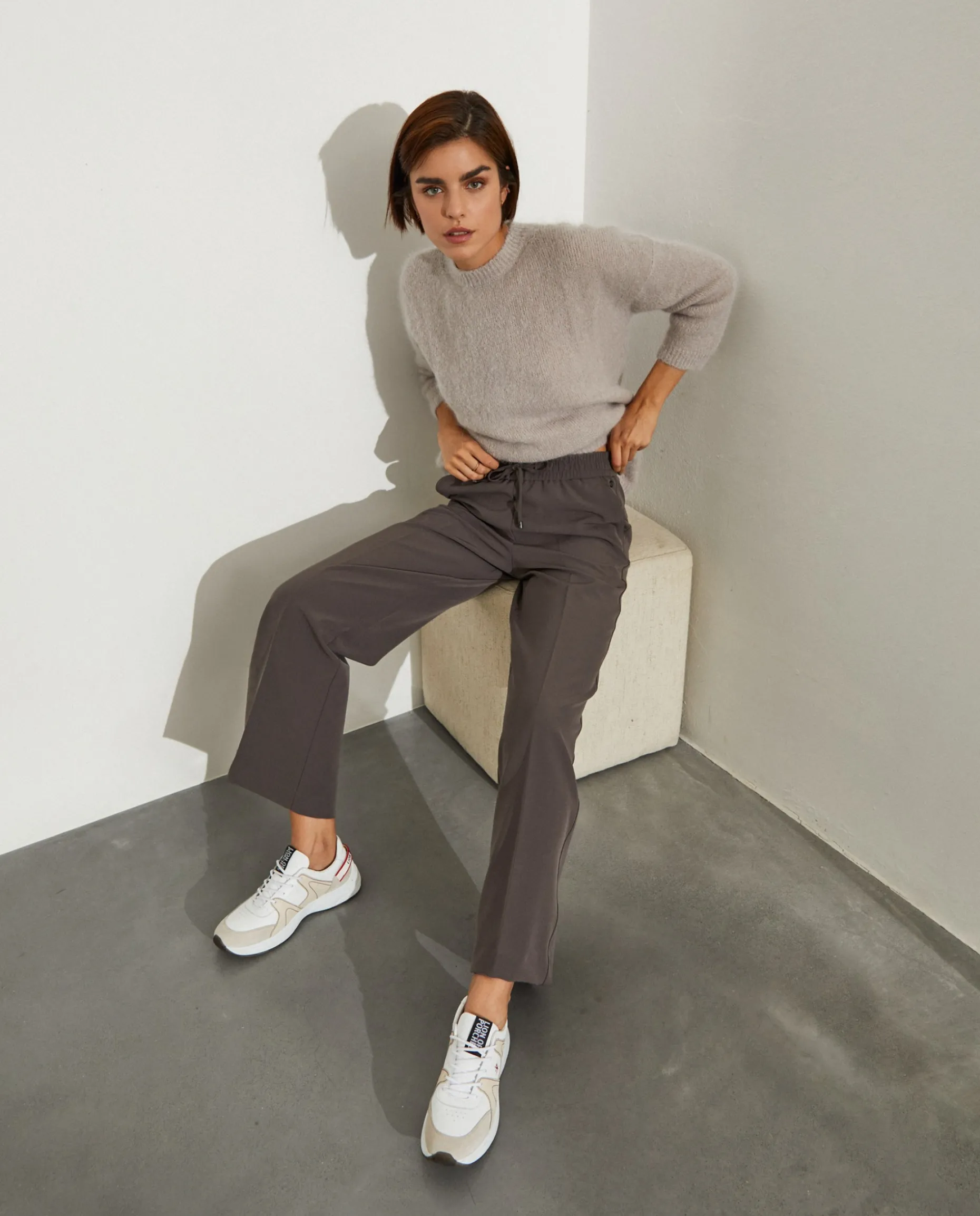 Faça parte das tendências com estas calças culotte. A cintura elástica é ajustável com cordão, garantindo que lhe assentam na perfeição. São finalizadas com bolsos na frente e e na parte de trás.