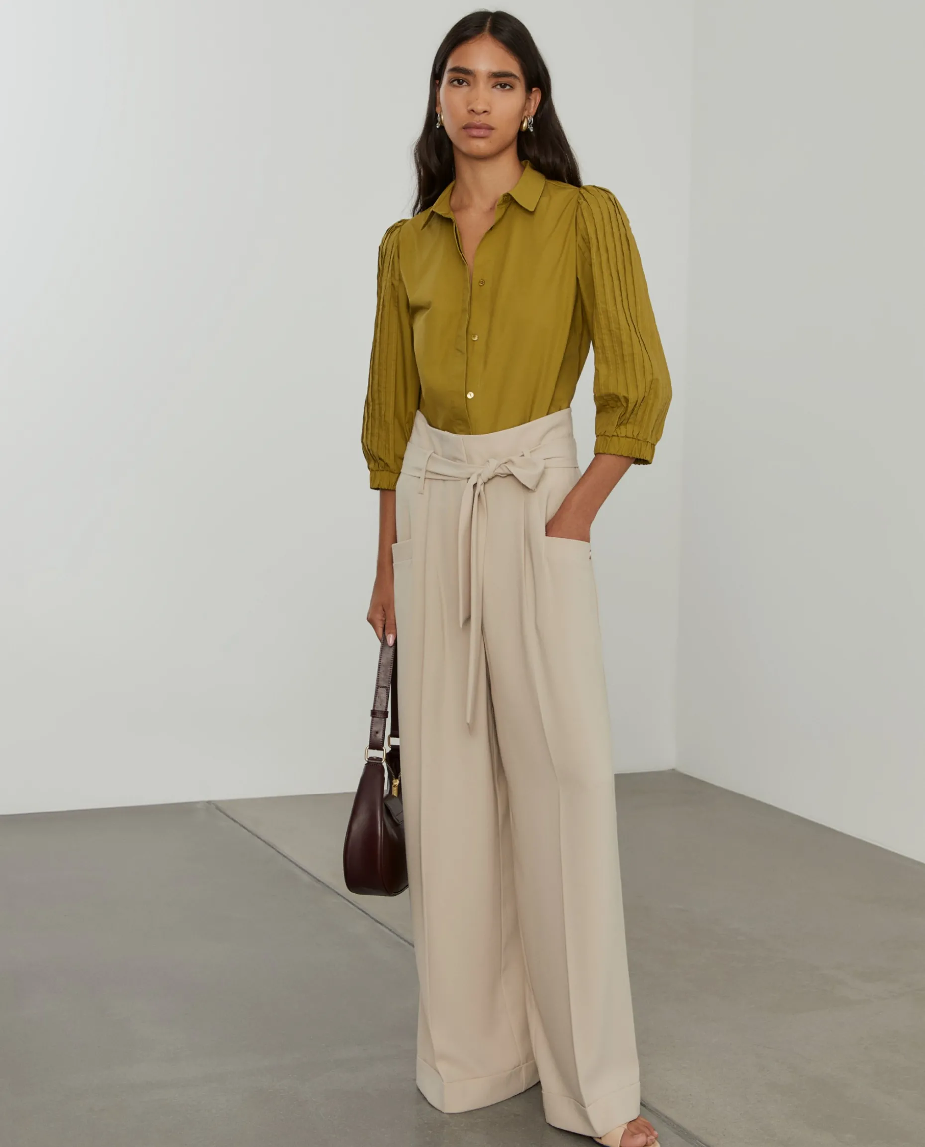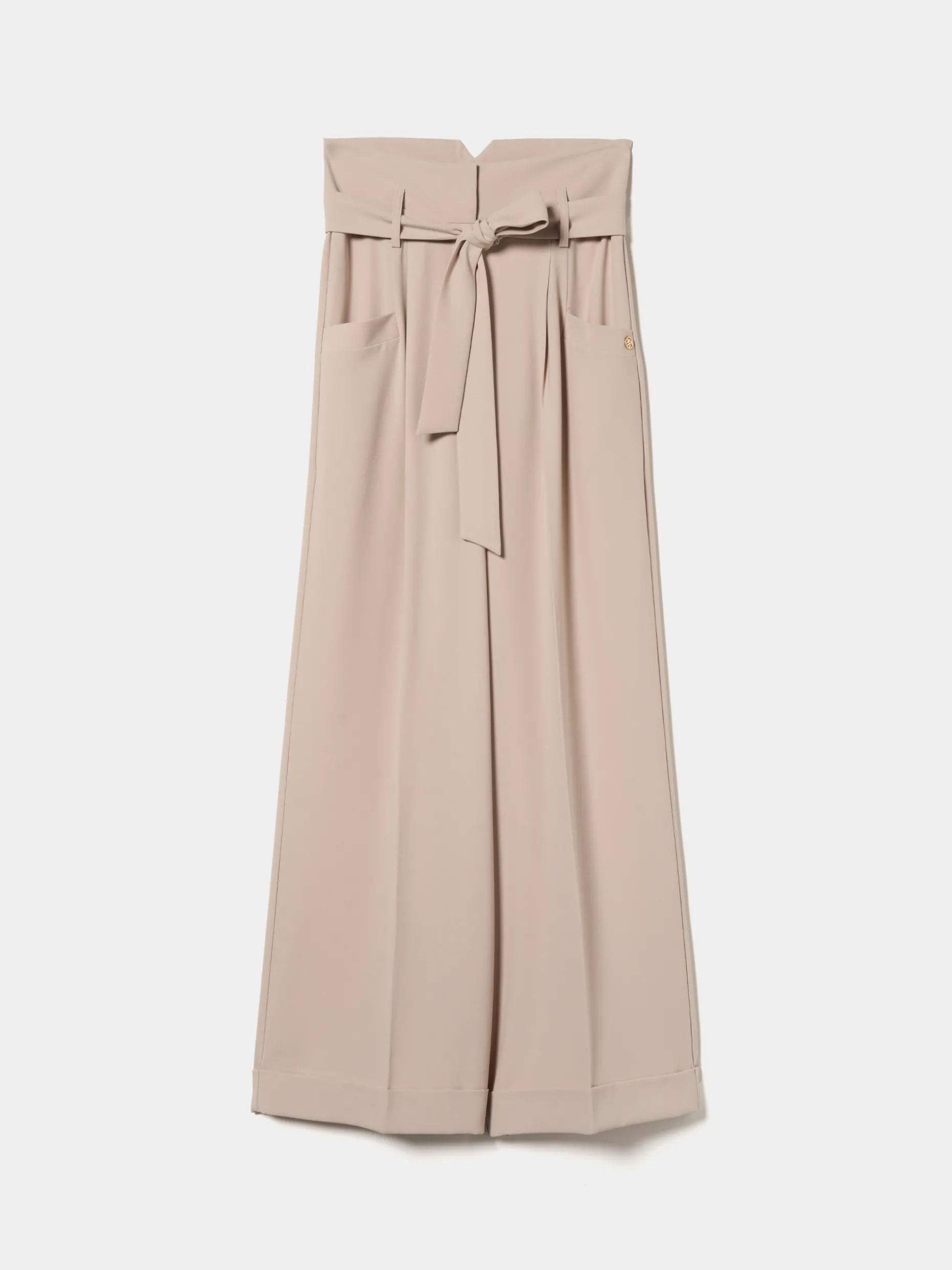 Elegantes e confortáveis, estas calças pantalona são a escolha perfeita para um look versátil já que facilmente se adaptam a várias ocasiões. Com bolsos na frente e cinto no mesmo tom e tecido para dar laçada.