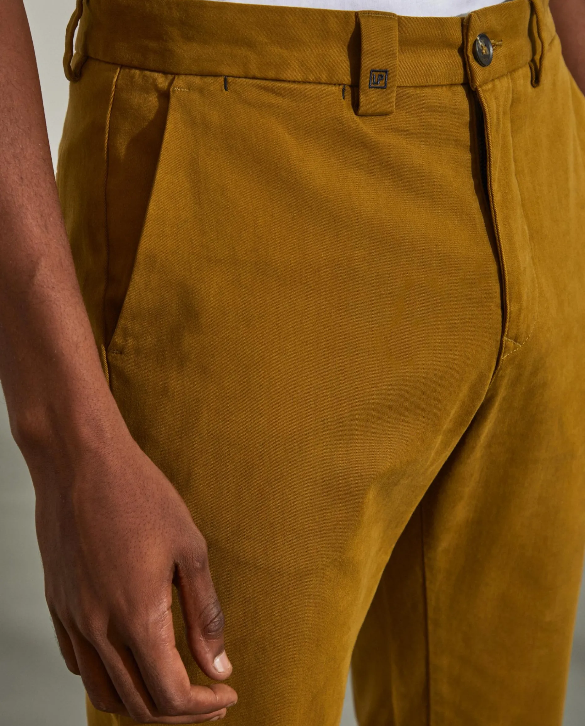Calças chino slim fit. Confecionadas em tecido de algodão stretch. Apertam com fecho e botões personalizados. Bolsos laterais, bolso de moedas e bolsos traseiros. Presilha personalizada com bordado na frente.