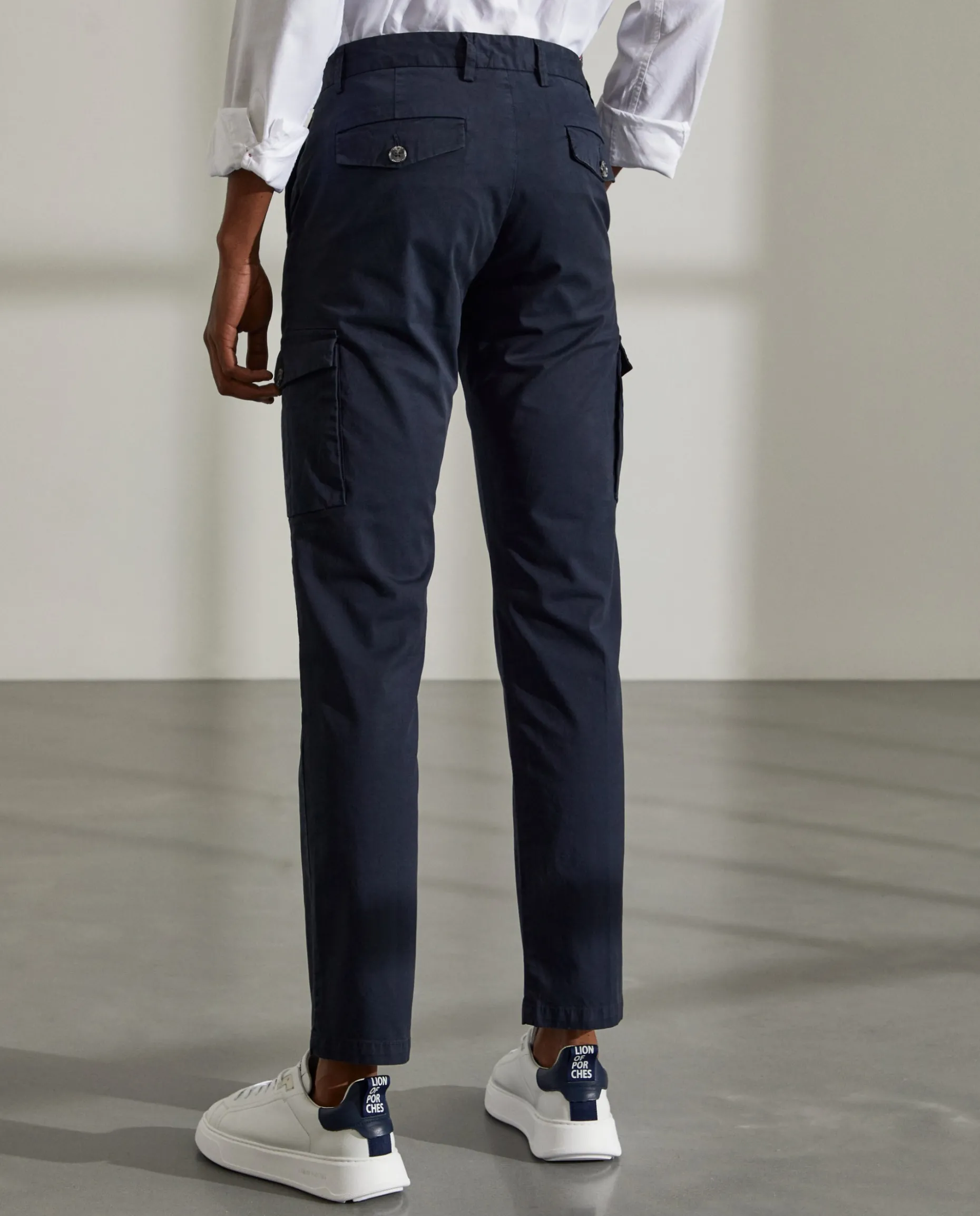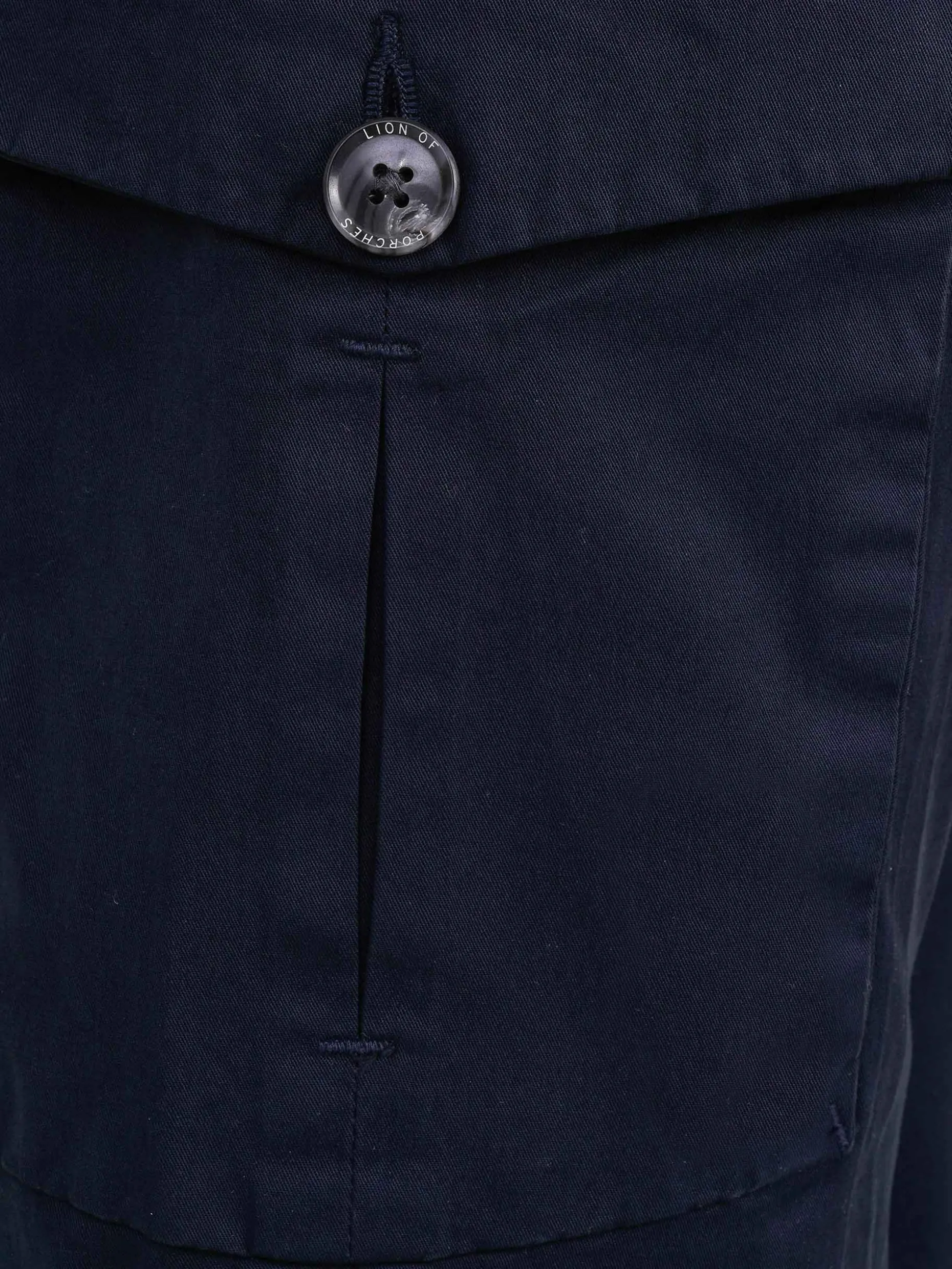 Calças Chino Regular Fit. Confecionadas com algodão stretch. Apertam com fecho e botão personalizado. Bolsos laterais, bolsos cargo com estampado personalizado “Lion Of Porches” e dois bolsos posteriores.