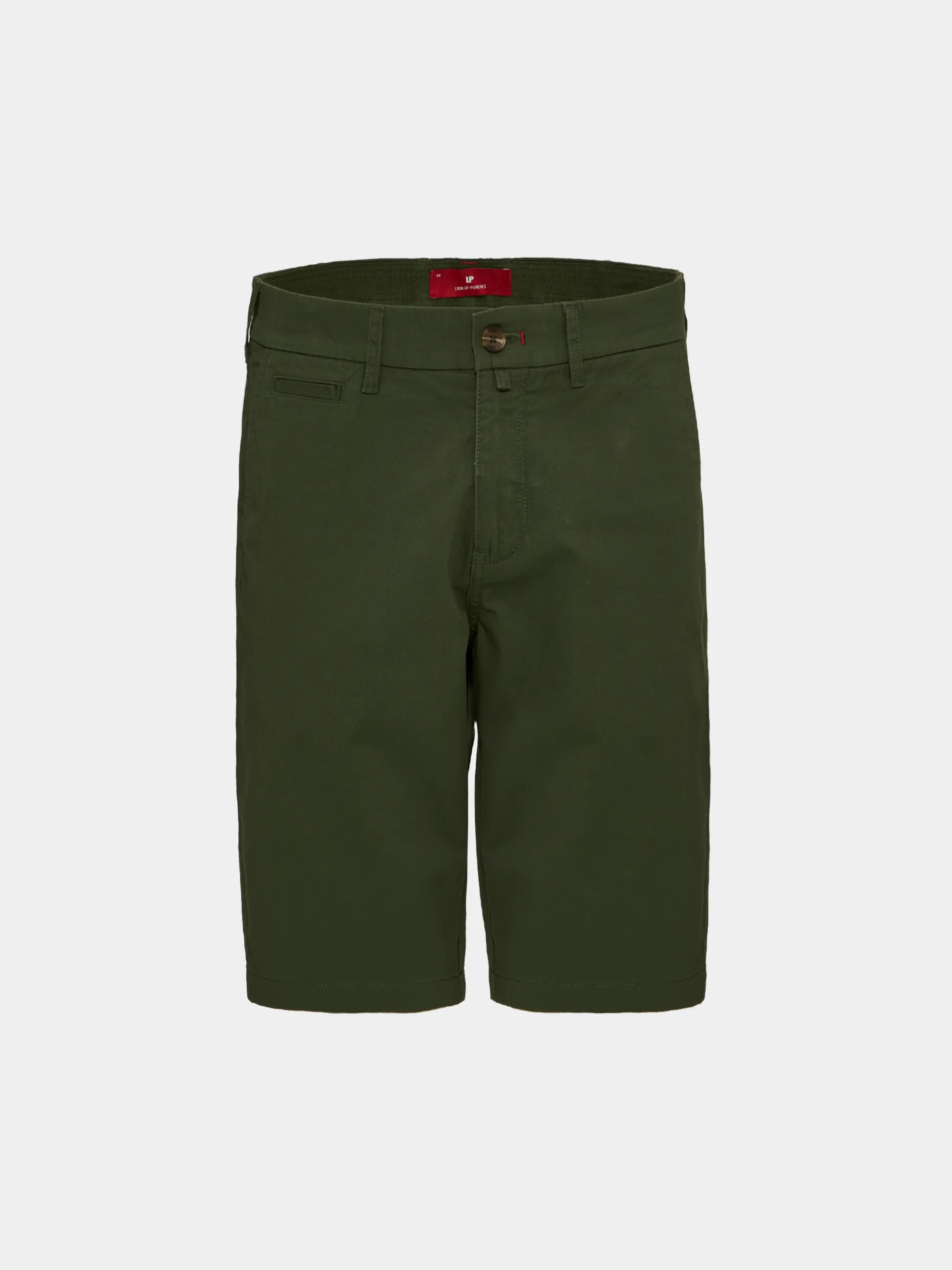 Bermudas. Apertam com fecho e botões personalizados. Bolsos laterais. Dois bolsos de vivo com botões atrás.