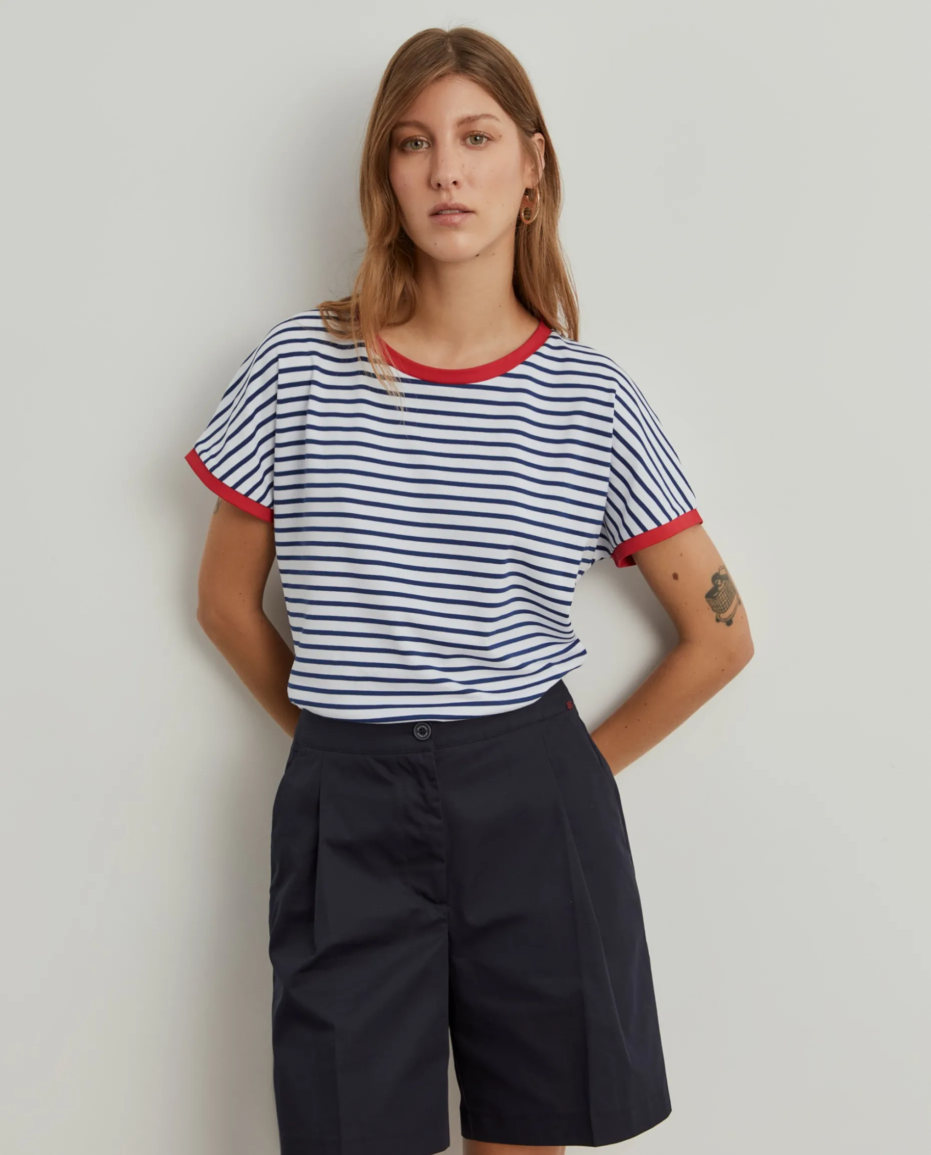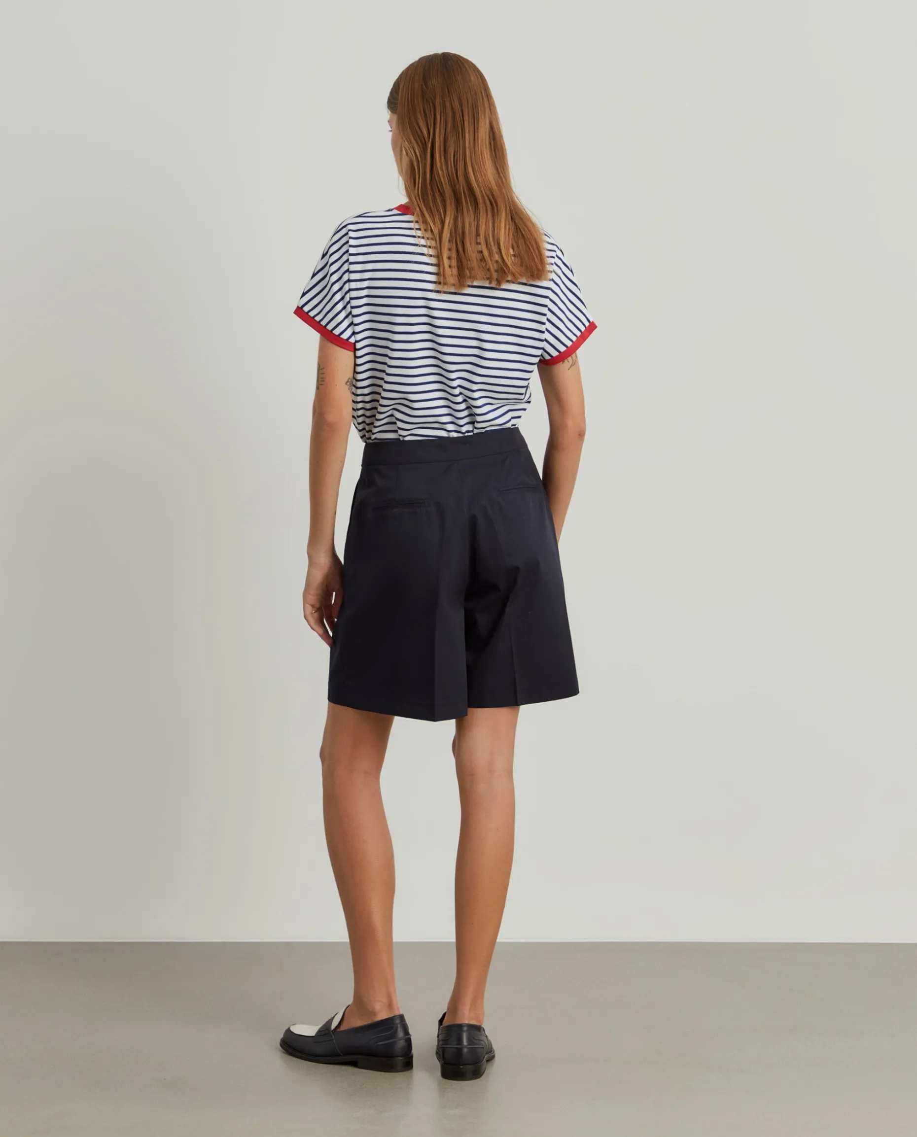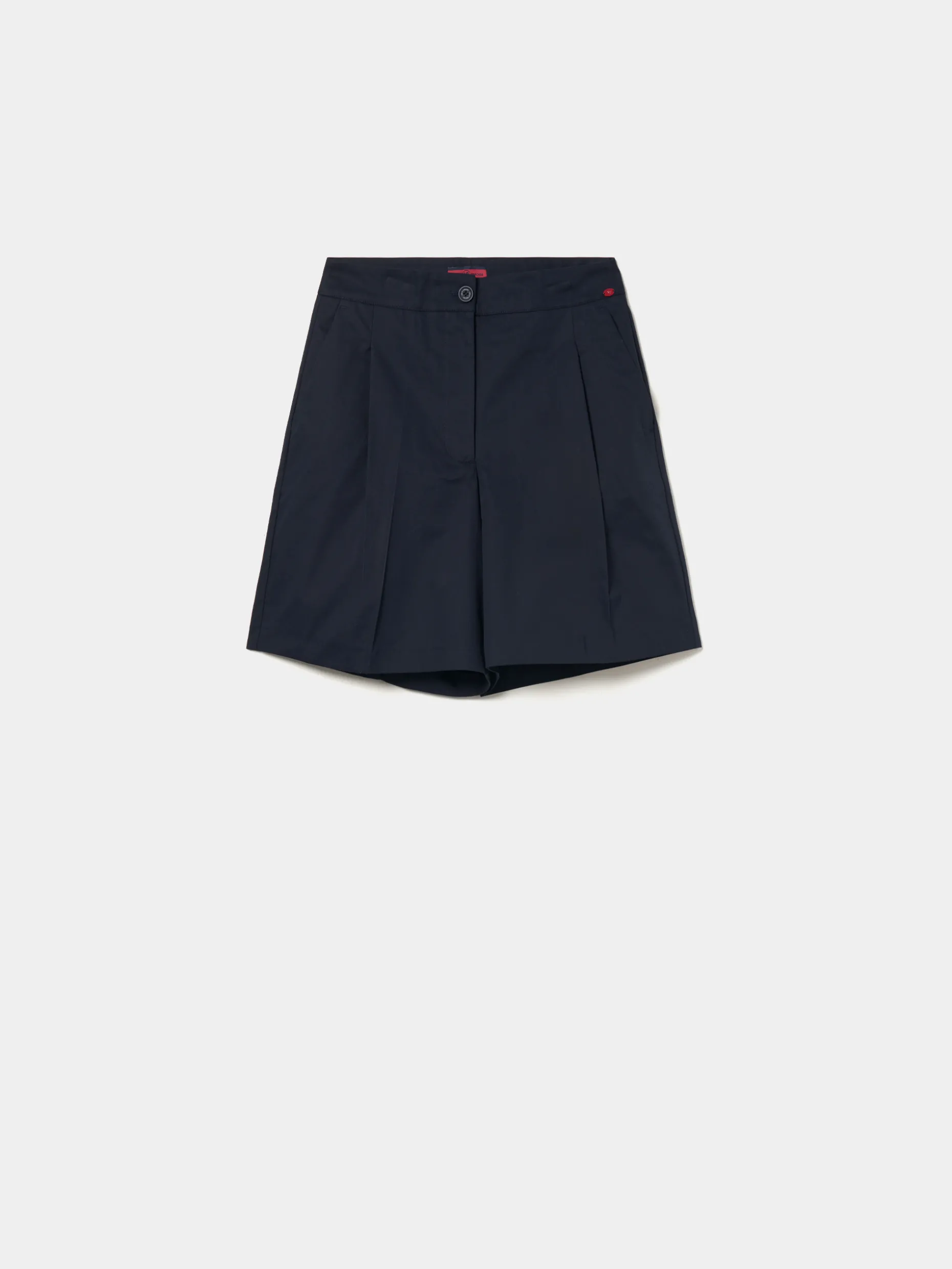 Calções chino com pregas. Com pregas e bolsos frontais e traseiros. Confecionados, na totalidade, em cupro, um material leve, macio, eco-friendly e sustentável.