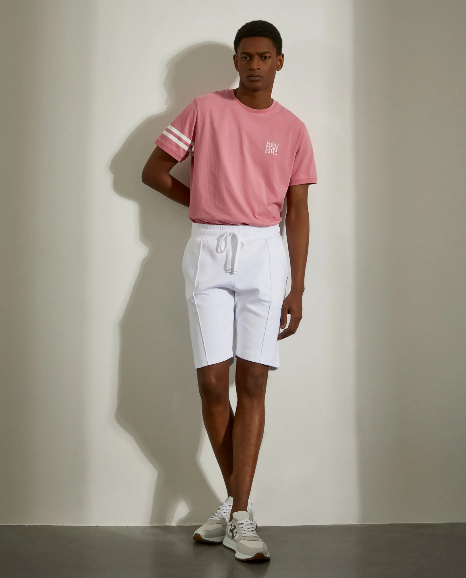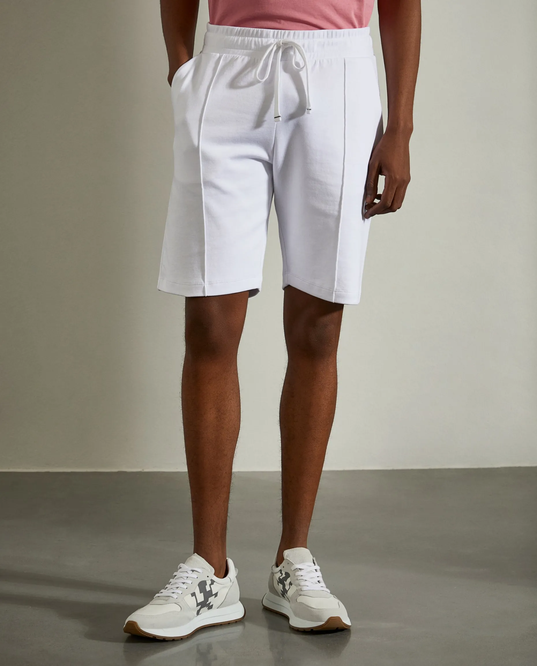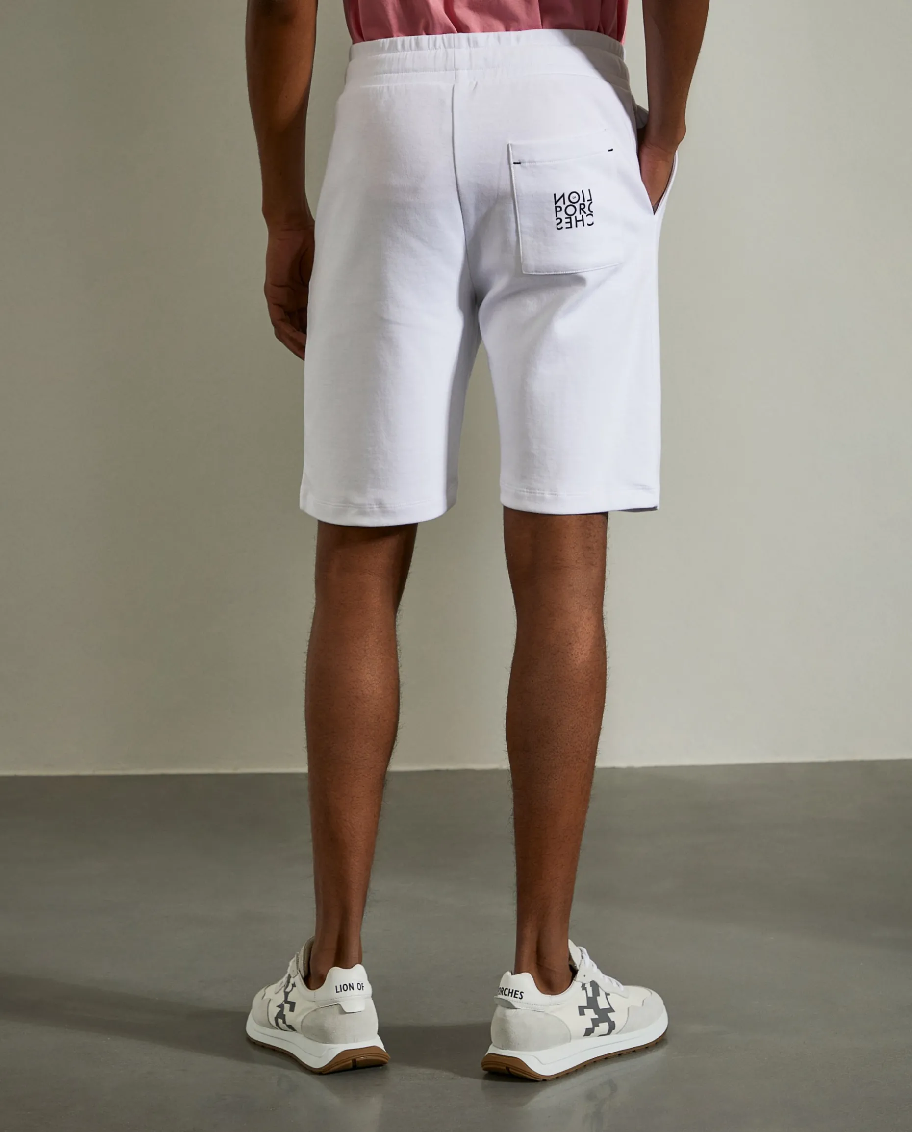 Calções em algodão com cordões à cor. Bolso traseiro com estampado Lion of Porches em contraste.