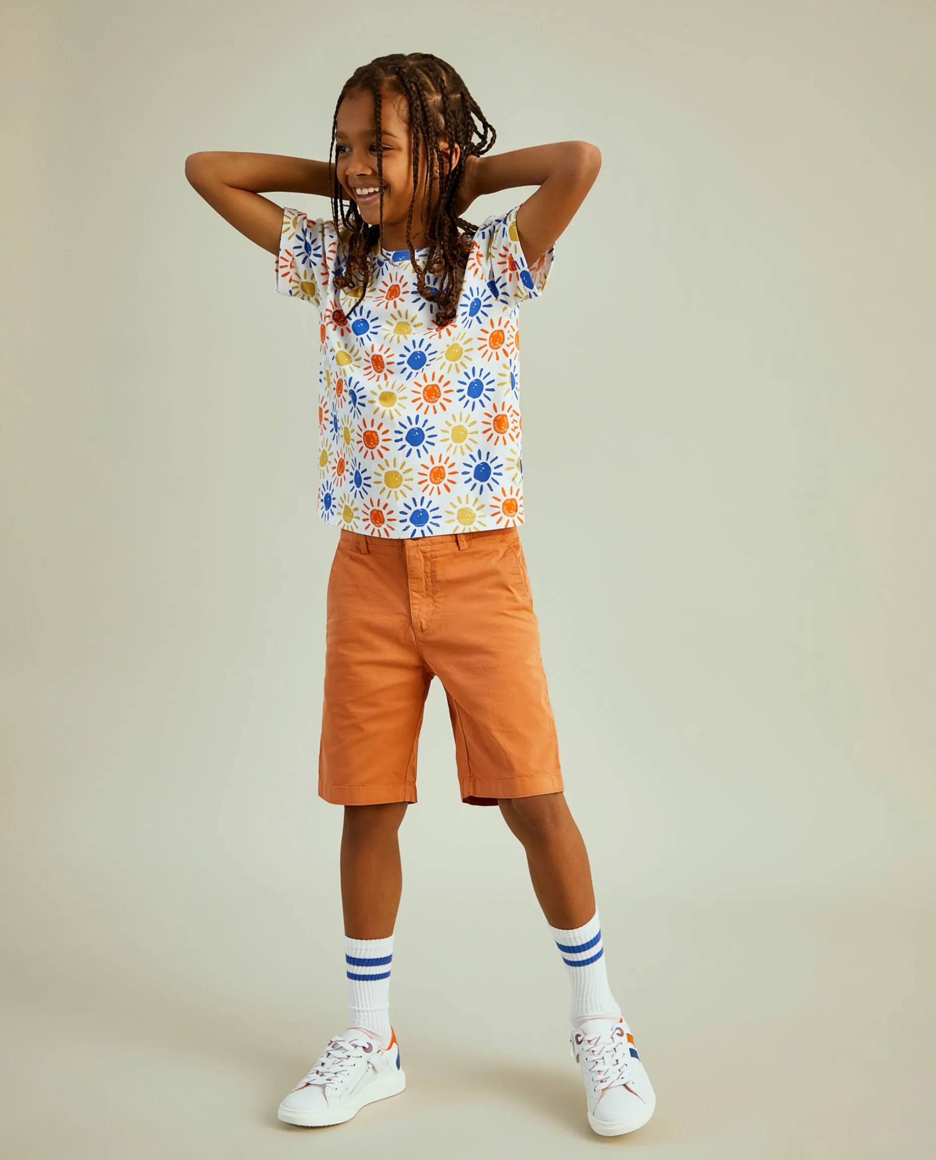 Calções em sarja para um look de primavera/verão cheio de estilo! Apertam com botão em contraste de cor e fecho de correr oculto por carcela. Finalizam com bolsos frontais e traseiros. São confecionados em algodão com uma pequena percentagem de elastano para maior conforto e facilidade de movimento.