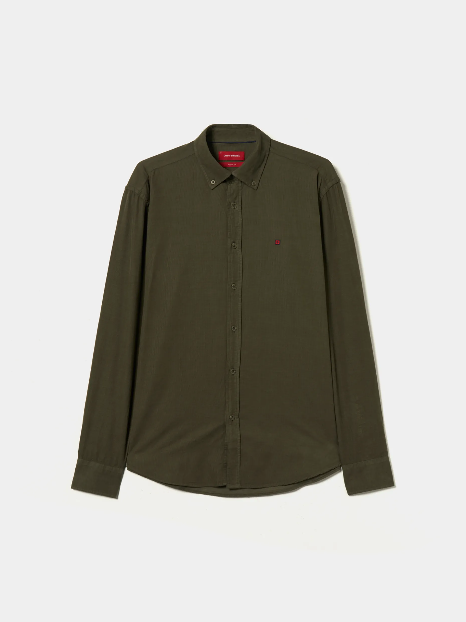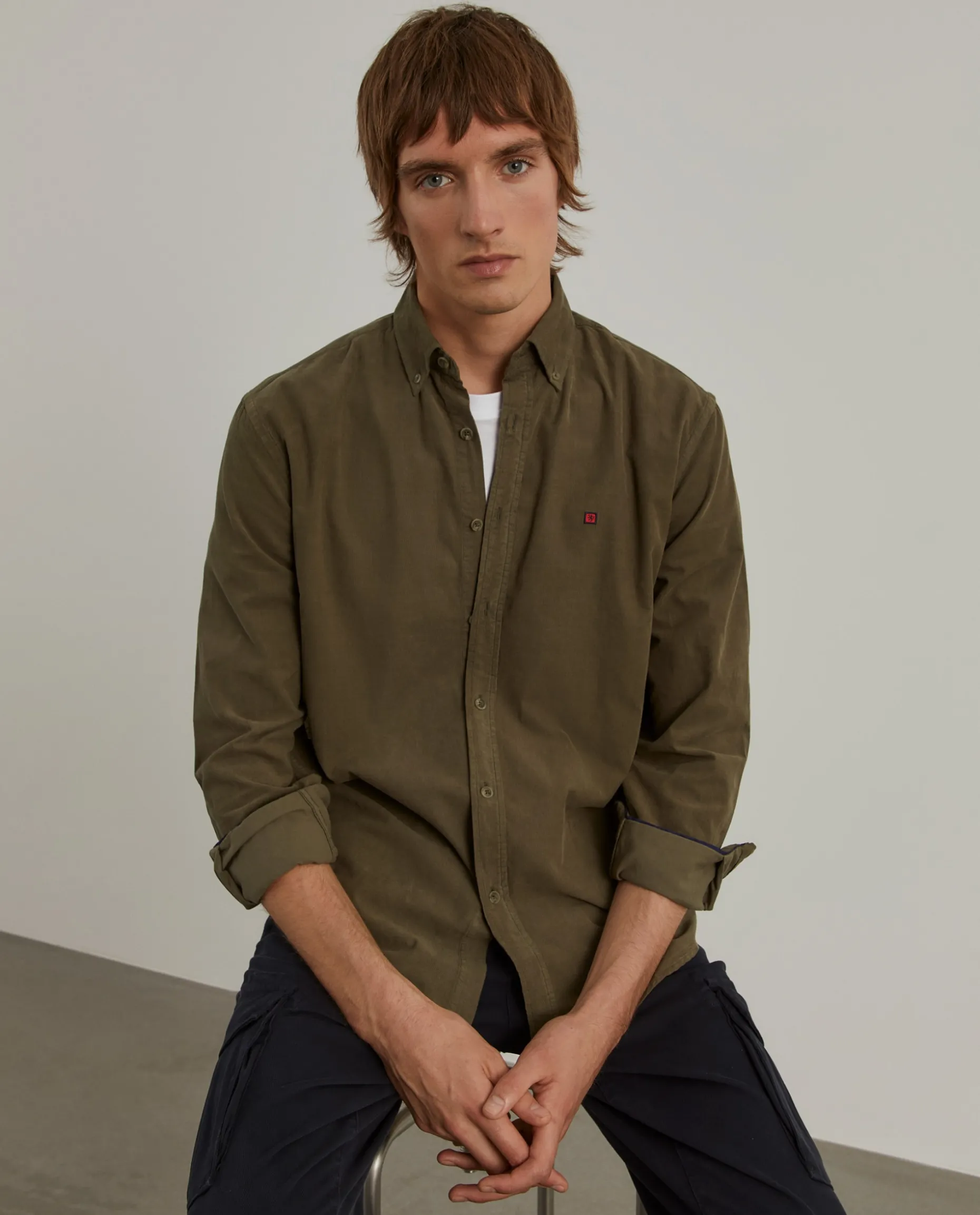 Perfeita para as estações mais frias, esta camisa de manga comprida tem fit regular e é confecionada em bombazine. O colarinho tem dois botões e conta ainda com o pequeno leão da marca bordado no peito em contraste de cor.