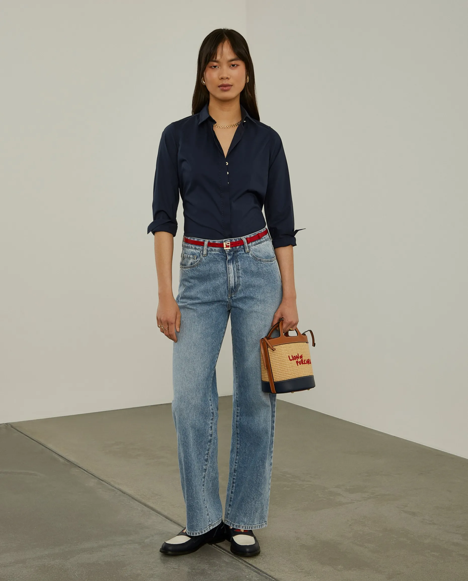 Camisa clássica, modelo regular fit, confecionada em algodão com uma pequena percentagem de elastano para maior conforto e suavidade. Aperta com botões ocultos por carcela na frente e ainda com botões dourados nos punhos.