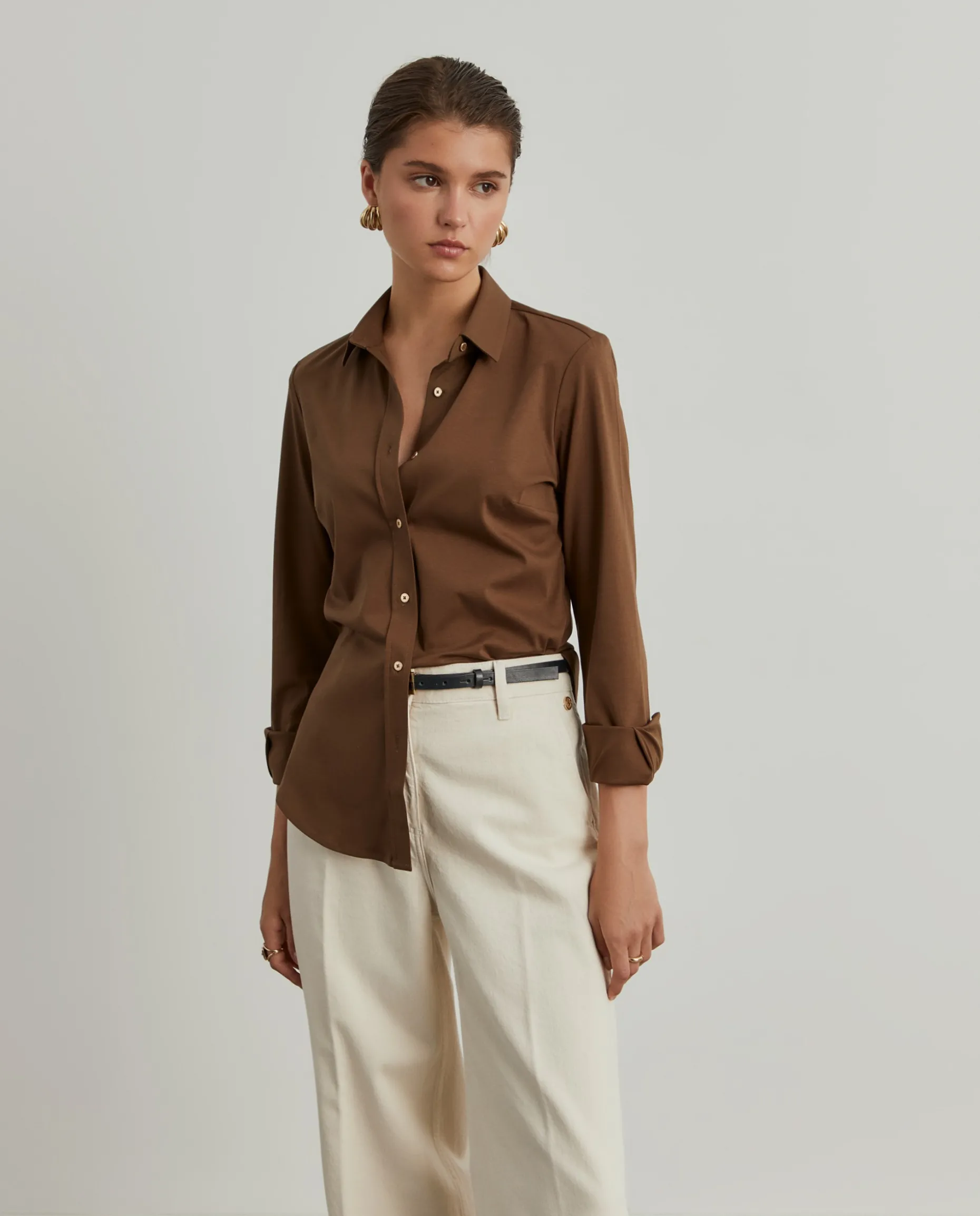Camisa regular fit confecionada em malha 100% algodão, uma escolha leve e confortável para o seu outfit. De colarinho clássico, aperta na frente com botões noutro tom, assim como nos punhos. Disponível em várias cores.