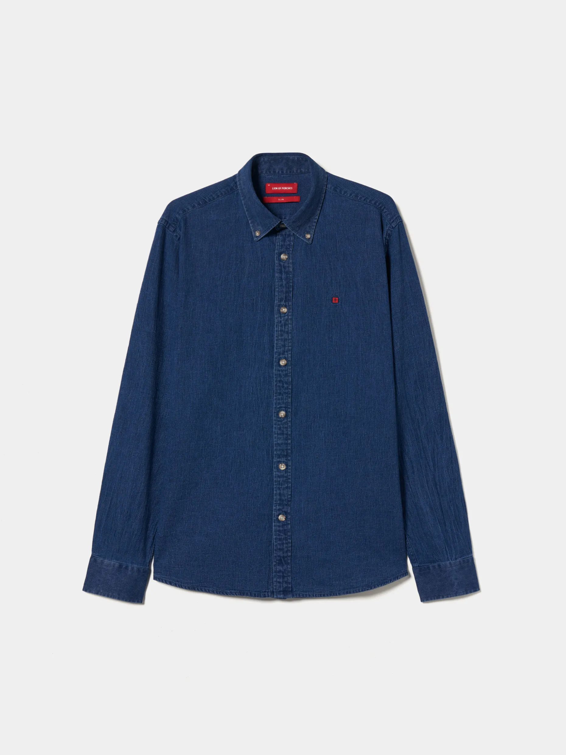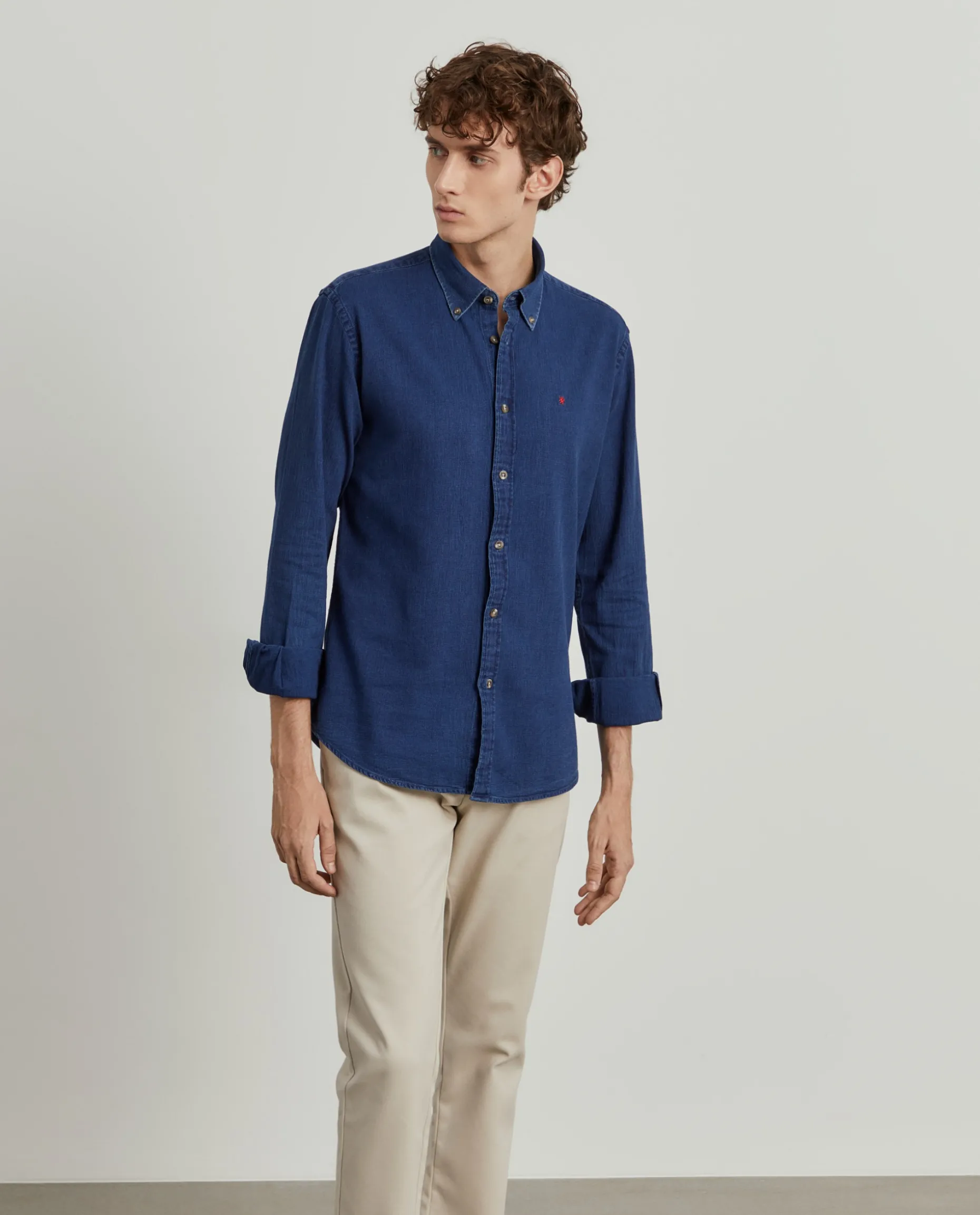 Obtenha um look casual e descontraído com esta camisa denim slim fit, de manga comprida. Com botões no colarinho.
