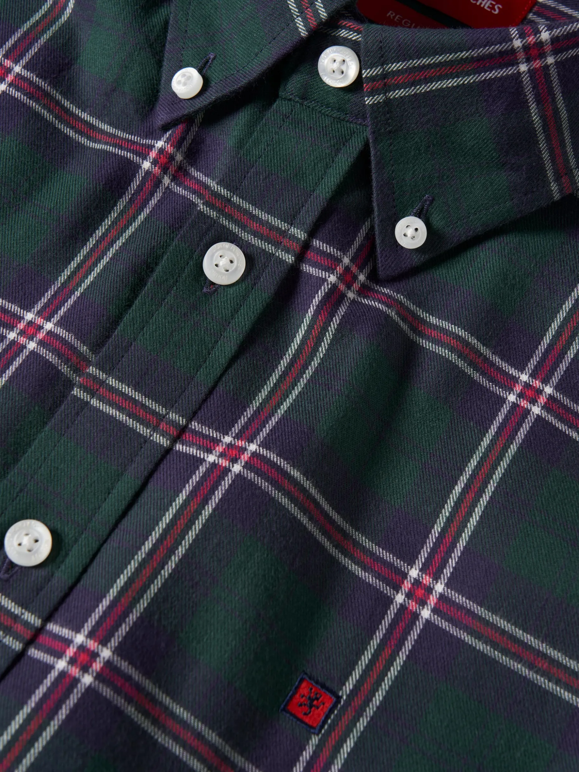 Camisa Regular Fit em tecido com padrão de xadrez. Colarinho com dois botões. Bordado personalizado no peito. Botões personalizados.
