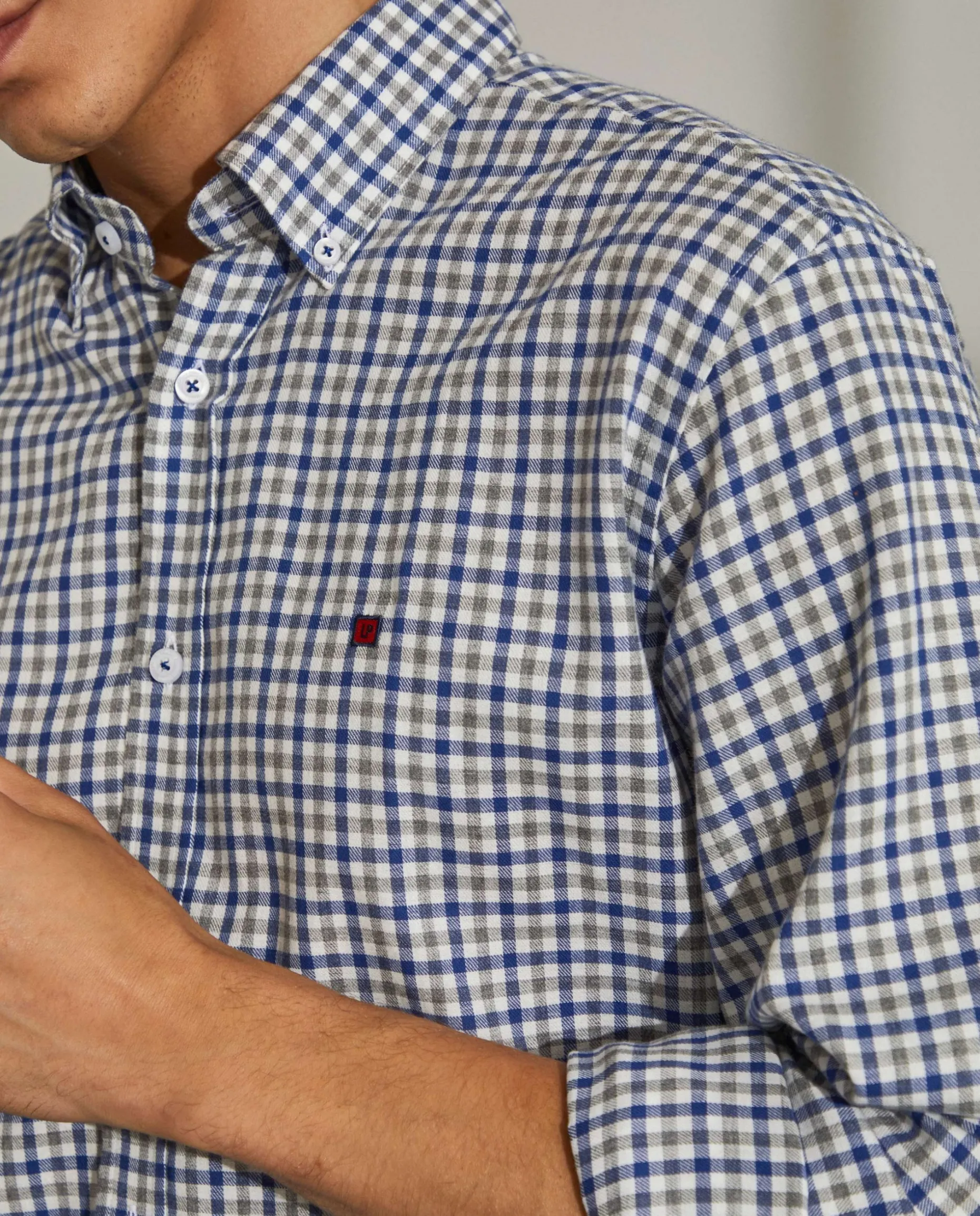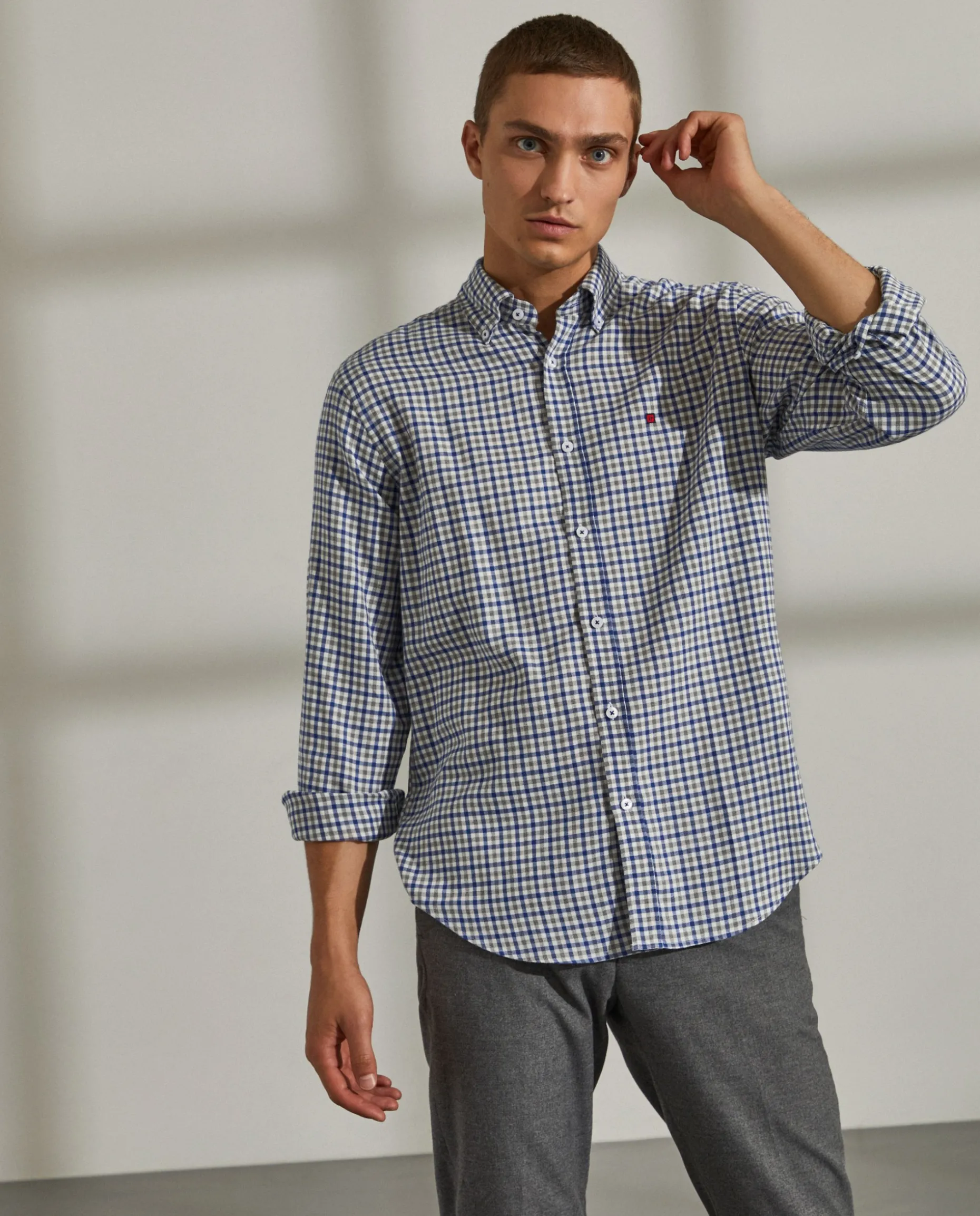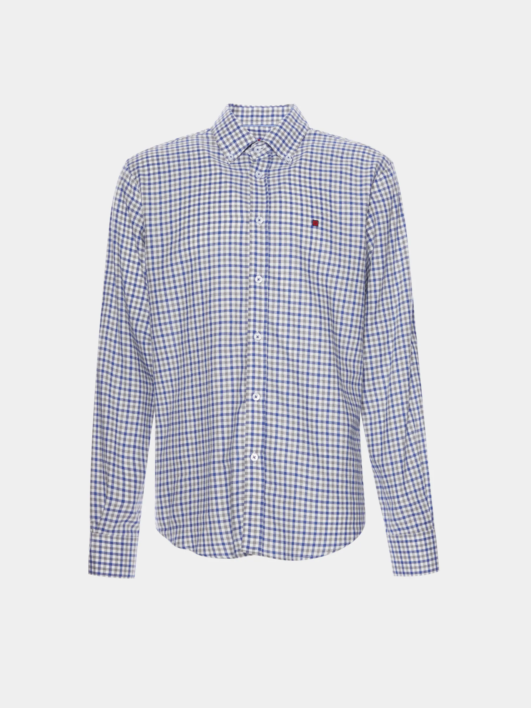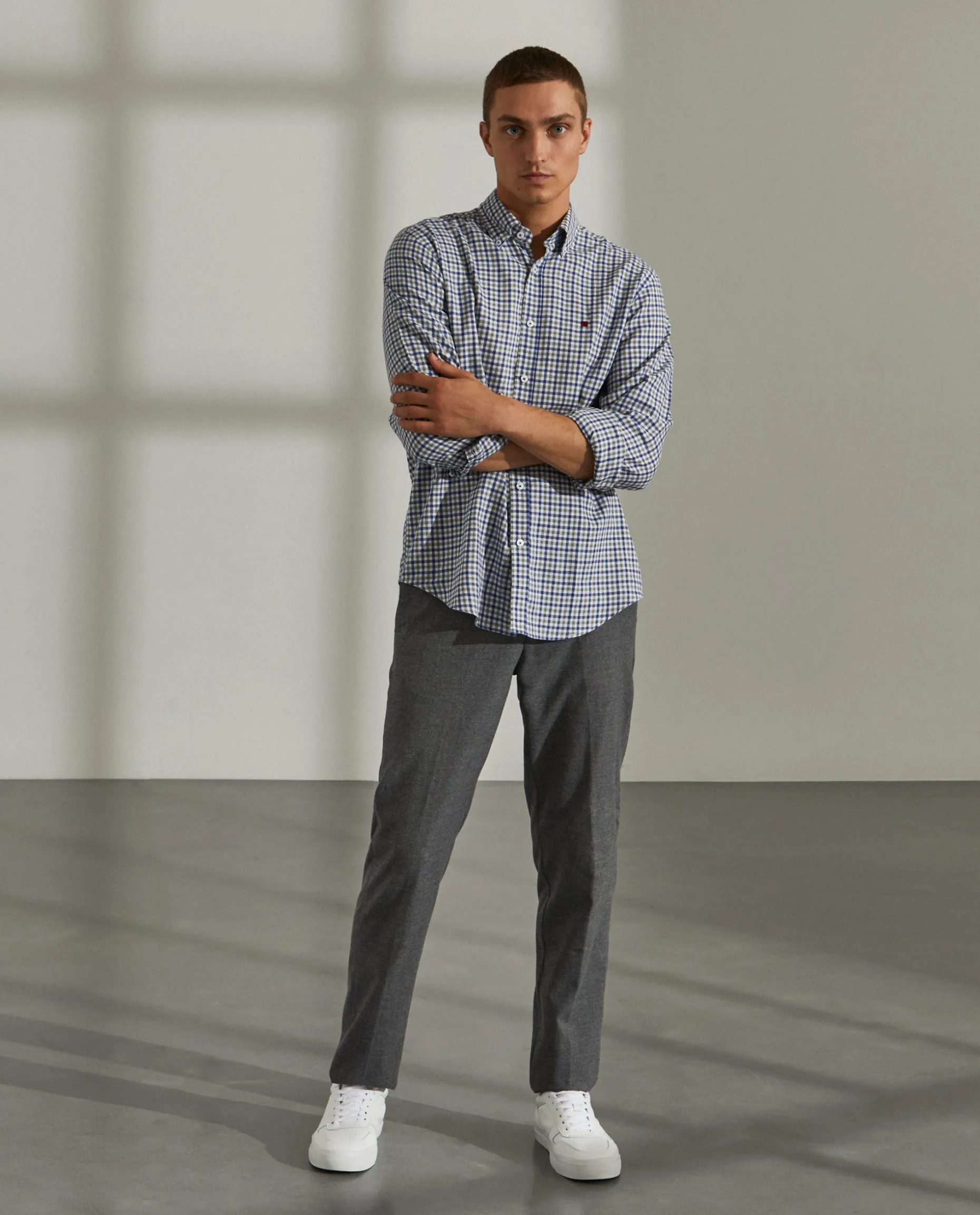 Com uma composição em 100% de algodão, esta camisa regular fit tem um padrão de quadrados. Apresenta um colarinho com dois botões e um bordado personalizado no peito.