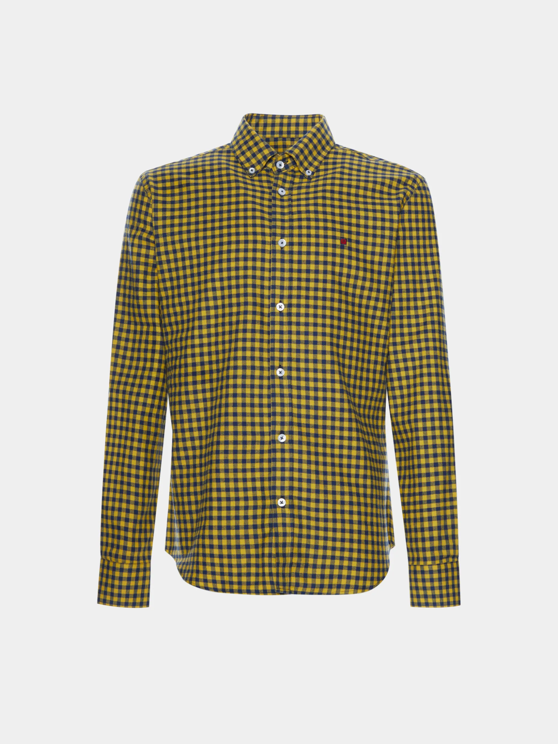 Combine esta camisa slim fit com padrão de xadrez com umas calças de ganga e esteja preparado para tudo. Com um colarinho com dois botões, apresenta um bordado personalizado no peito.