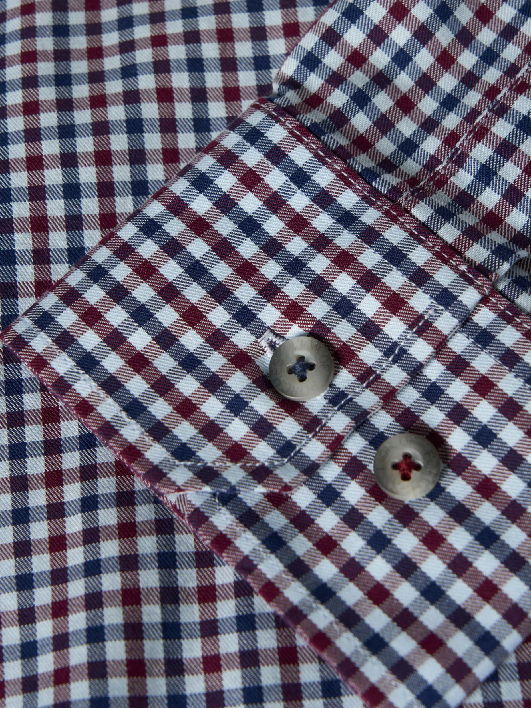 Um clássico, esta camisa slim fit de padrão axadrezada é confecionada em 100% de algodão. Tem um colarinho com dois botões e um bordado personalizado no peito.