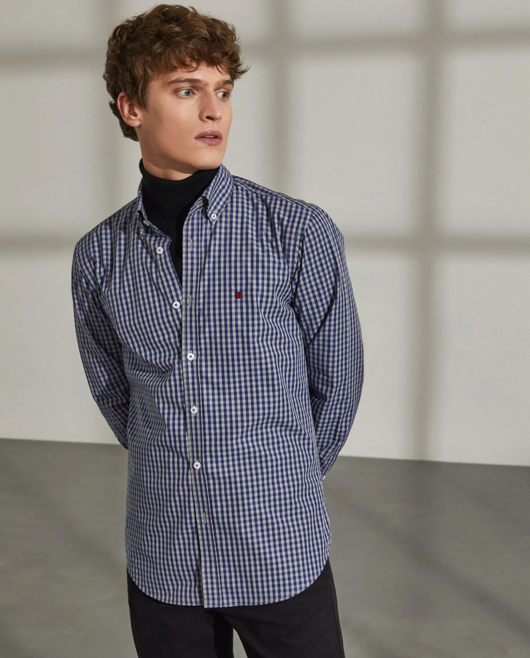 Um clássico que não pode faltar no seu guarda-roupa, esta camisa slim fit com padrão de xadrez é confecionada em 100% de algodão. Conta com um colarinho com dois botões e um bordado personalizado no peito.