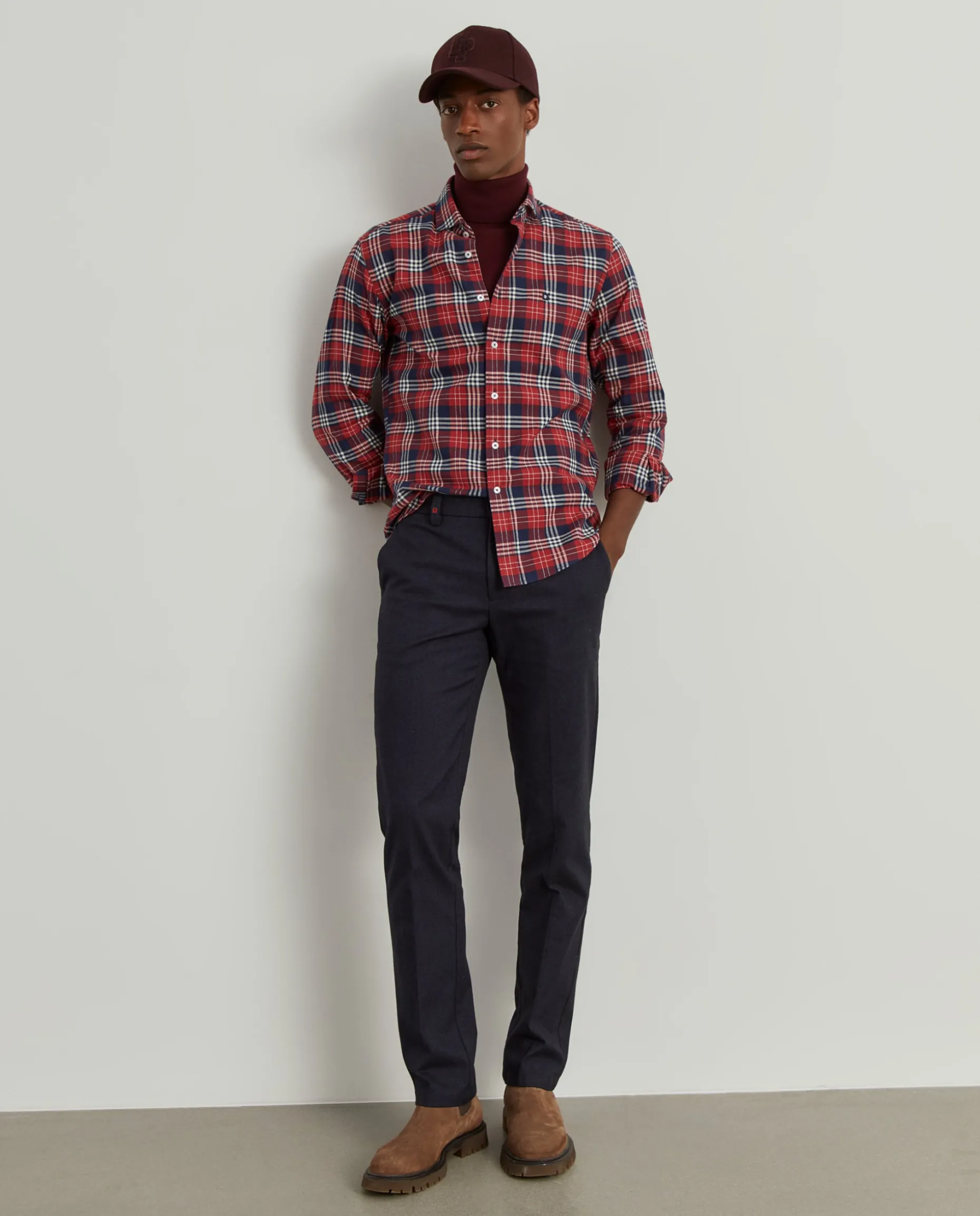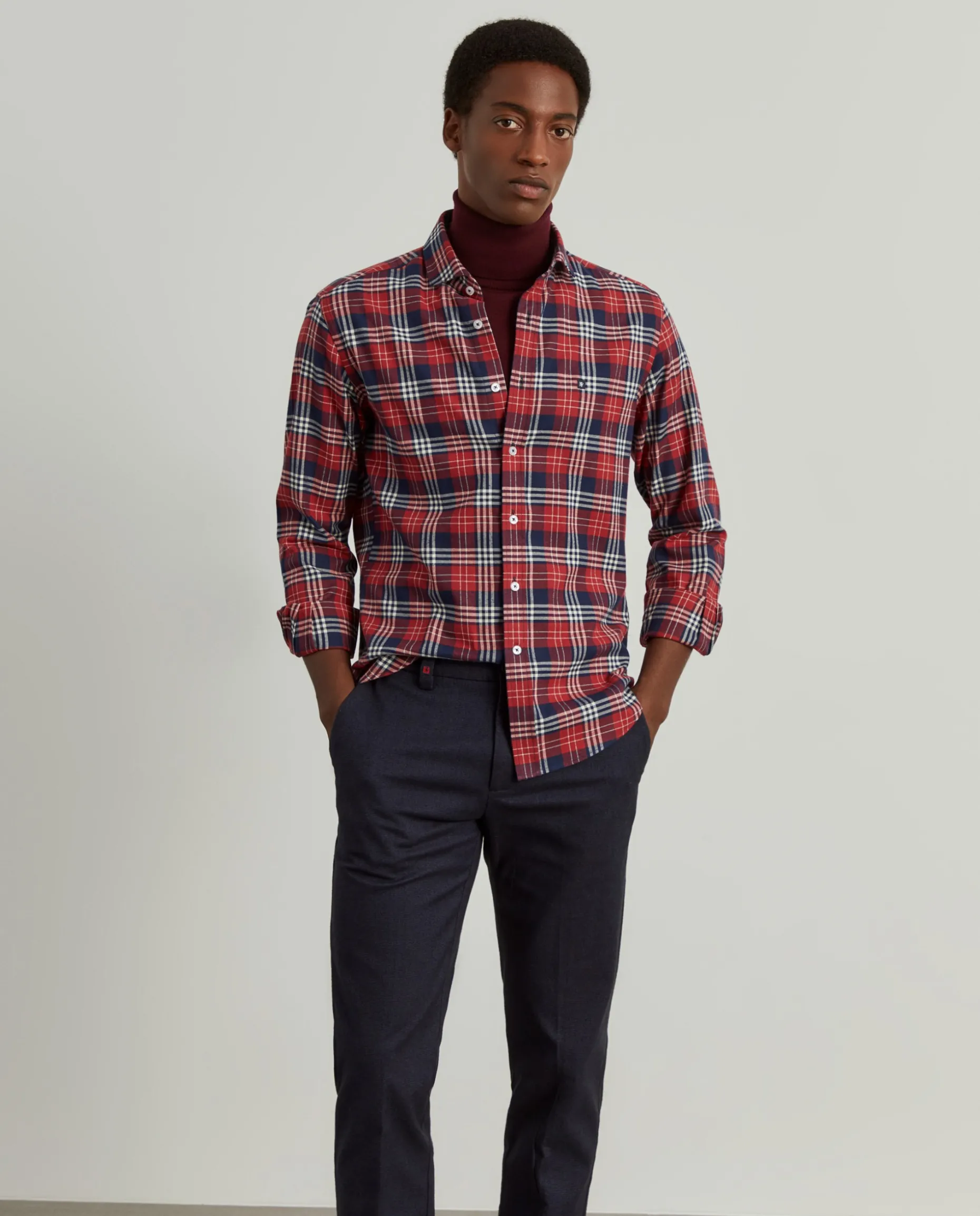 Obtenha um look casual e descontraído com esta camisa slim fit em tecido com padrão xadrez. De manga comprida, com colarinho “cutaway”. Confecionada, na totalidade, em algodão para maior conforto e suavidade.
