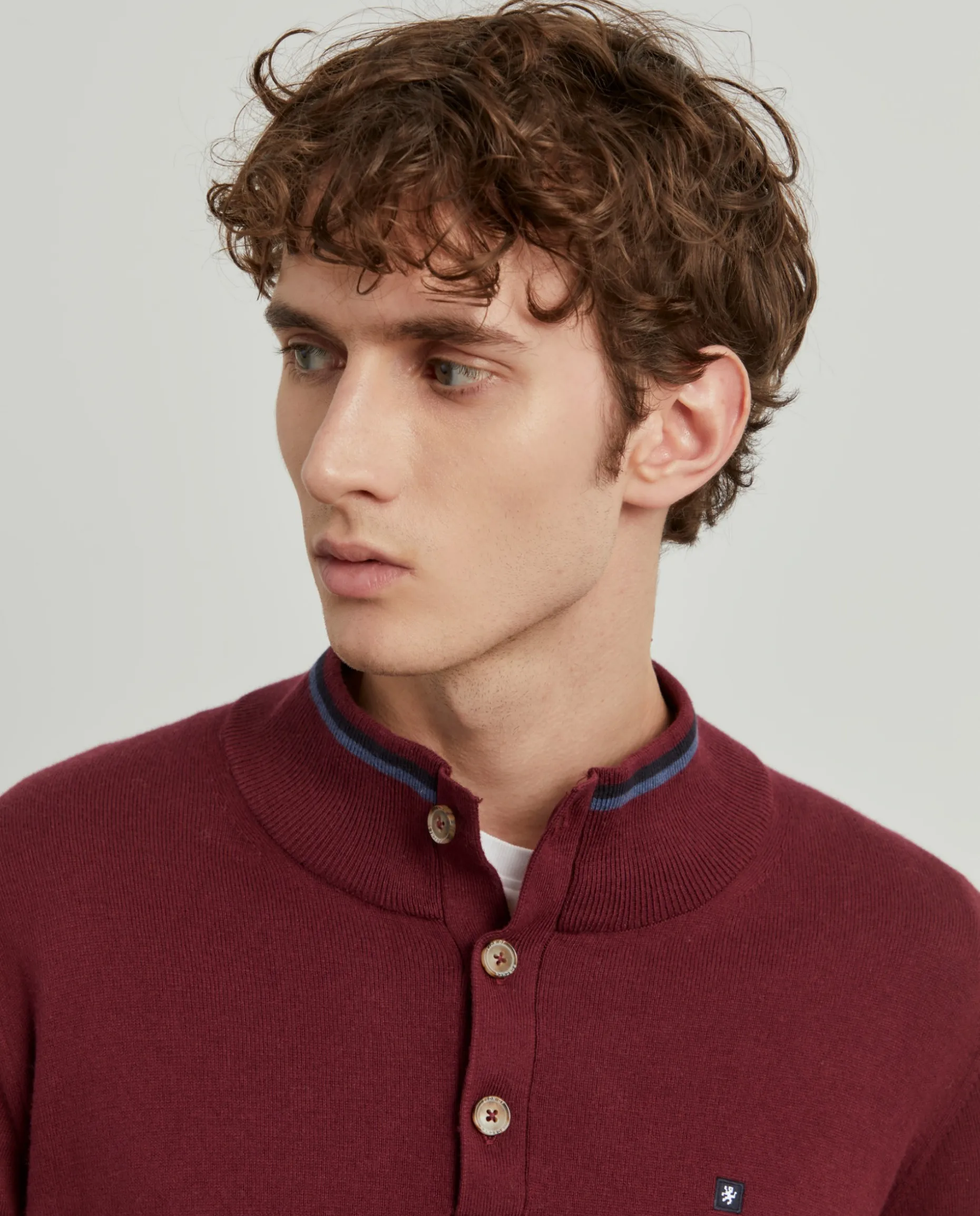 Para um look casual e confortável, opte por esta camisola de manga comprida com botões em contraste na gola alta. Com pormenor de dupla risca em contraste na gola e punhos. Finaliza com etiqueta da marca no peito. A gola, base e punhos são em malha canelada. Está disponível em várias cores e é confecionada com uma mistura de algodão e caxemira que confere à peça maior conforto e suavidade.