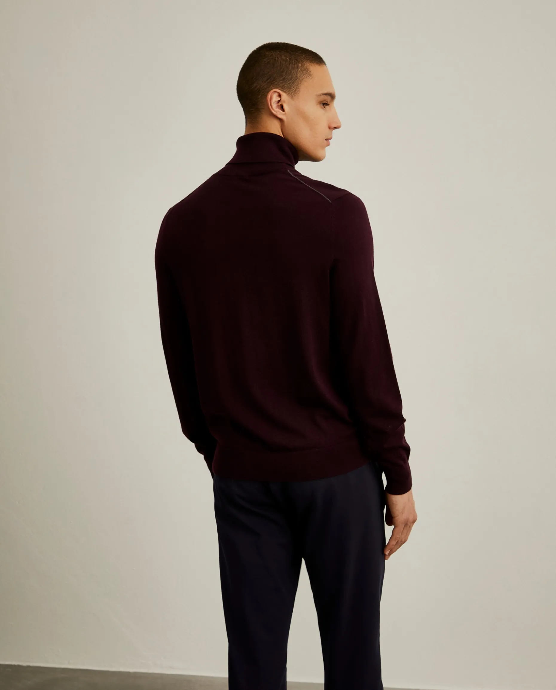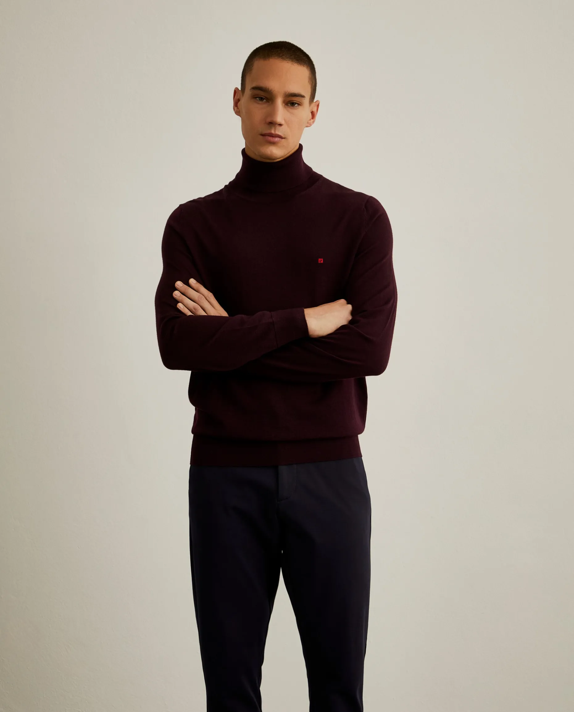 Camisola de gola alta e manga comprida, para complementar o guarda-roupa masculino de inverno. Confecionada em 100% lã, finaliza com bordado LP no peito em contraste de cor. Destaque também para o pormenor de risca no ombro, na parte de trás. Disponível em várias cores.