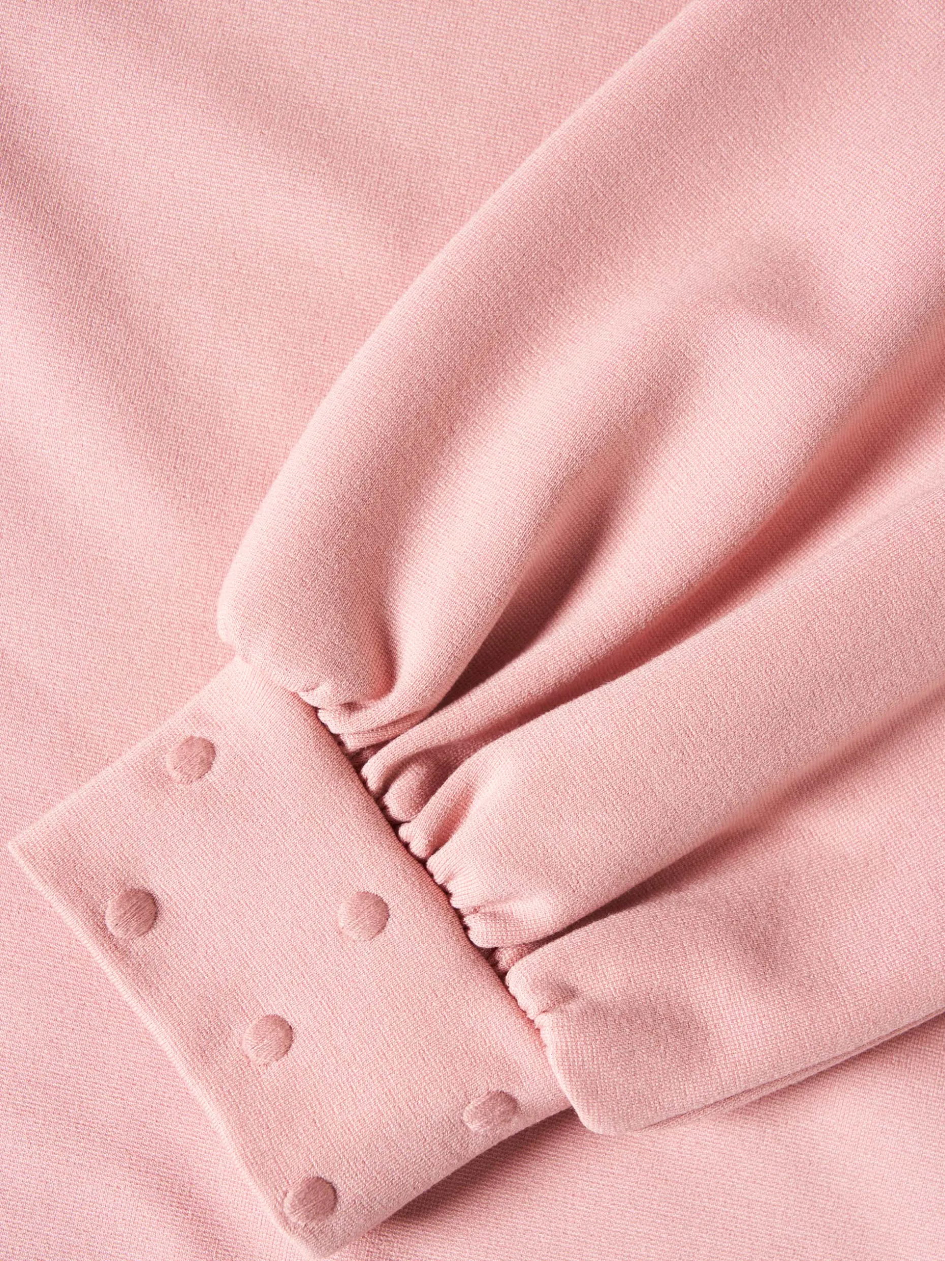 Camisola de malha com decote em V e mangas abalonadas. Pormenor romântico de bolinhas bordadas nos punhos.