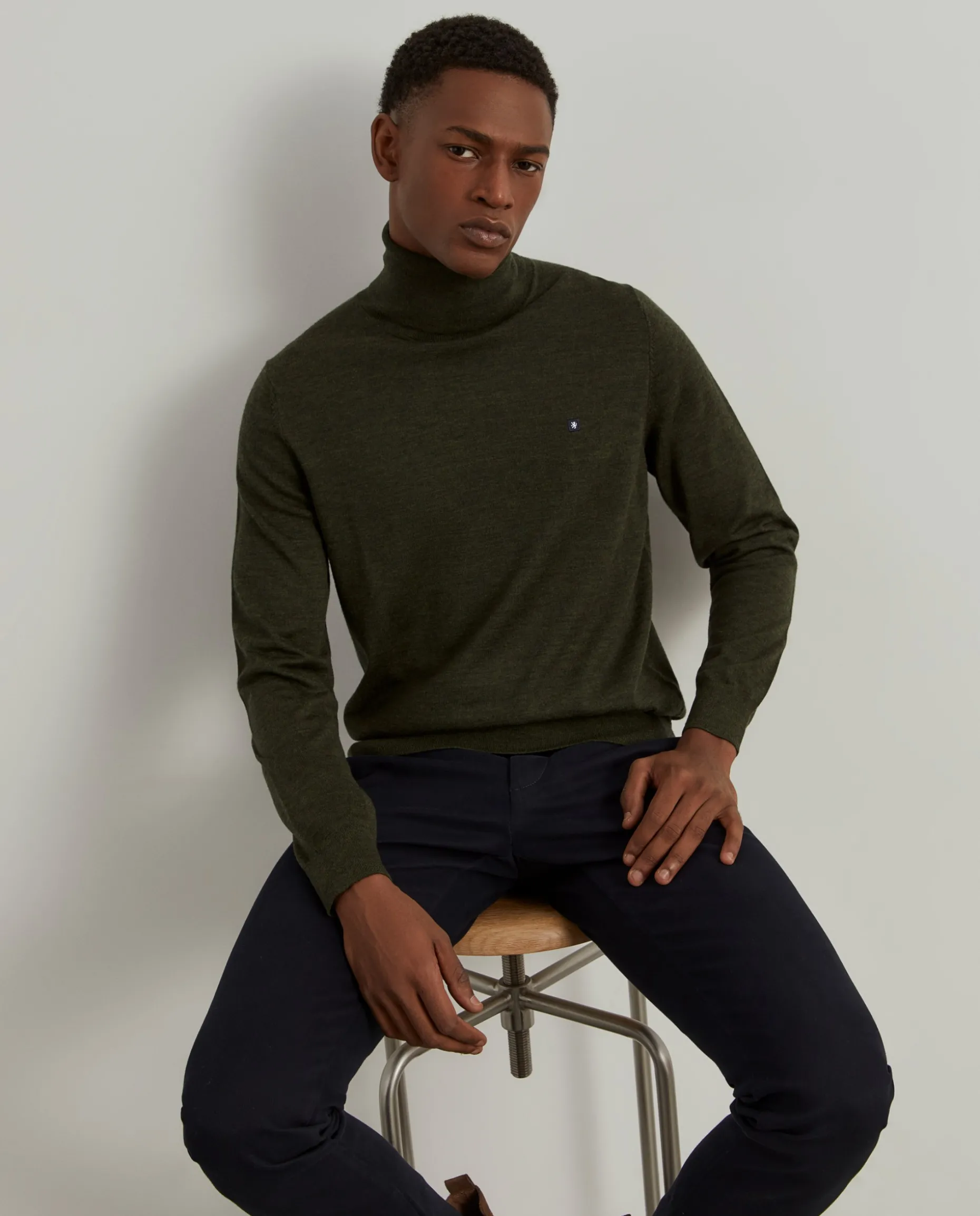 Esta camisola de gola alta é um verdadeiro essencial de inverno. Confecionada em lã merino, tem um toque muito suave e aveludado. A gola, punhos e cintura são canelados. Disponível em várias cores.