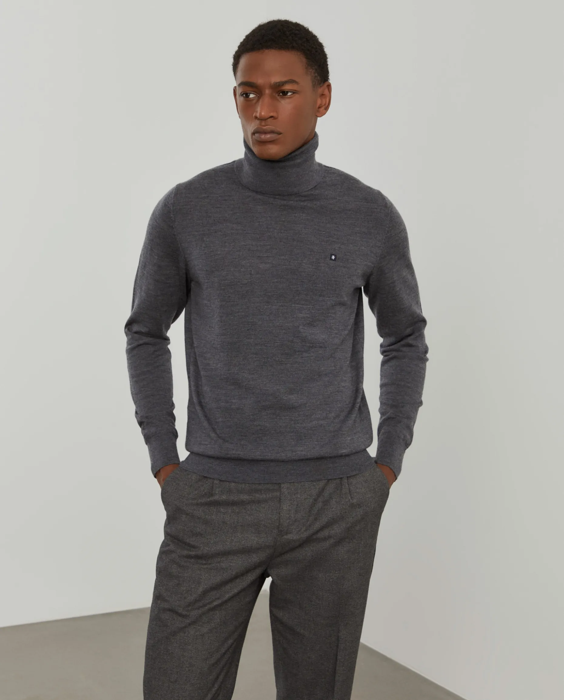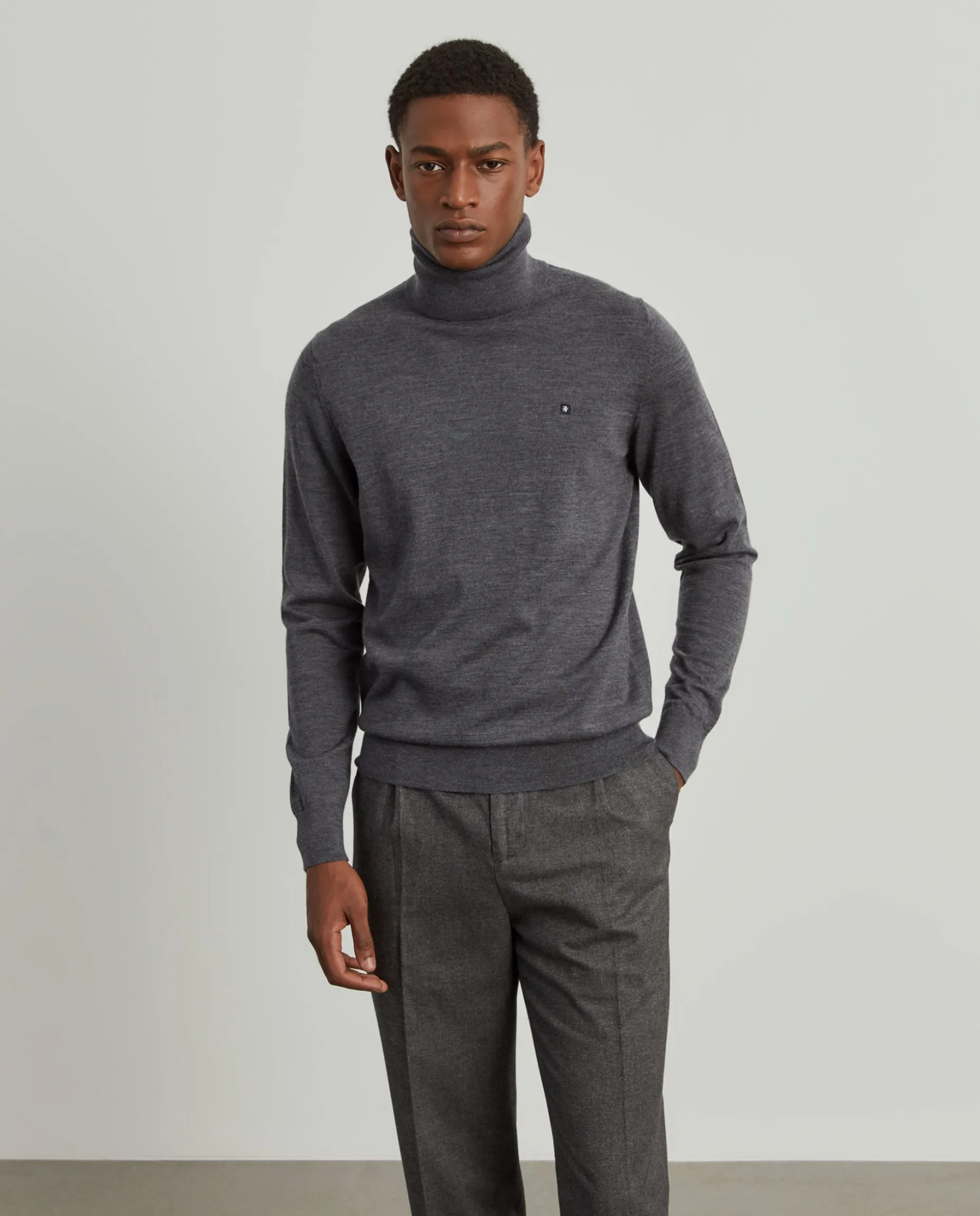 Esta camisola de gola alta é um verdadeiro essencial de inverno. Confecionada em lã merino, tem um toque muito suave e aveludado. A gola, punhos e cintura são canelados. Disponível em várias cores.